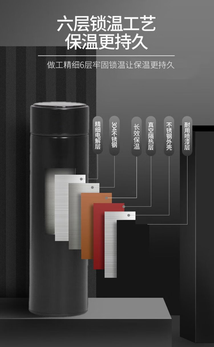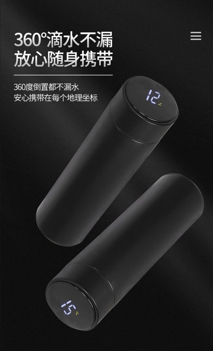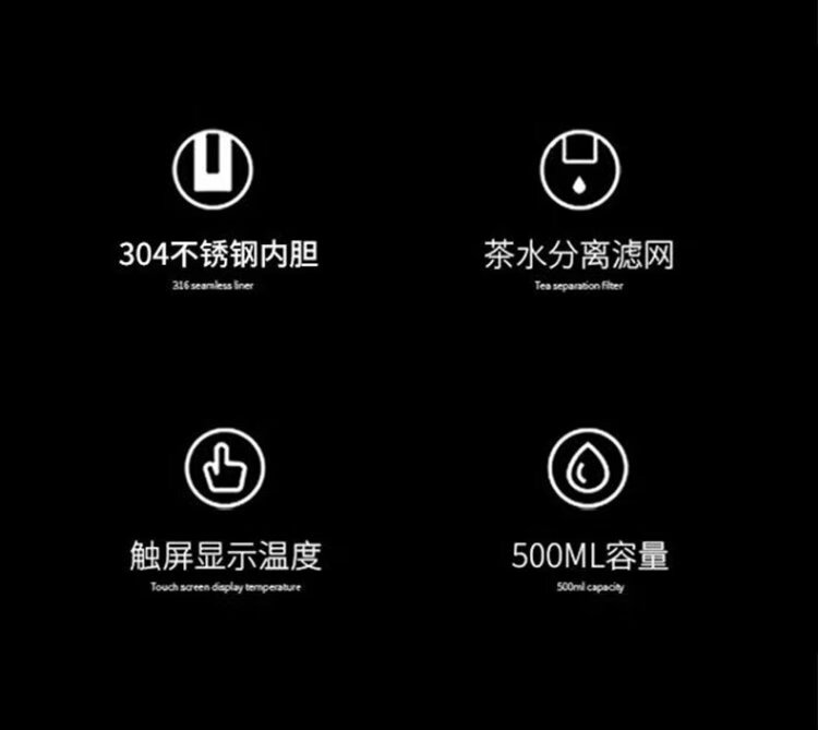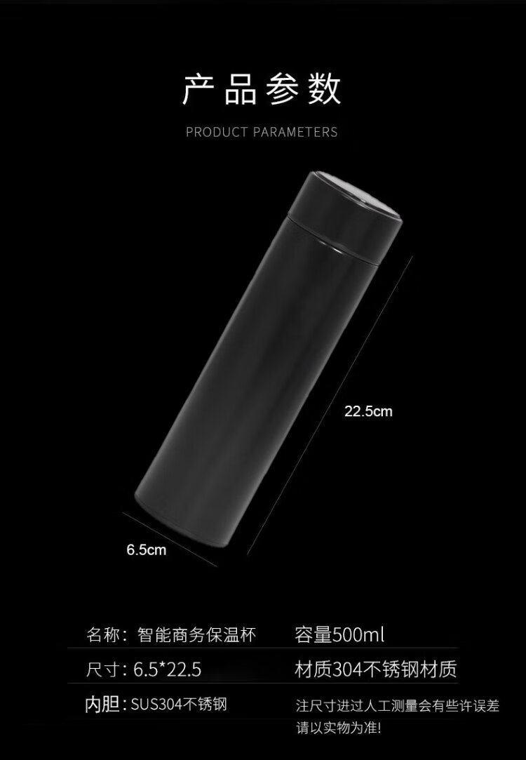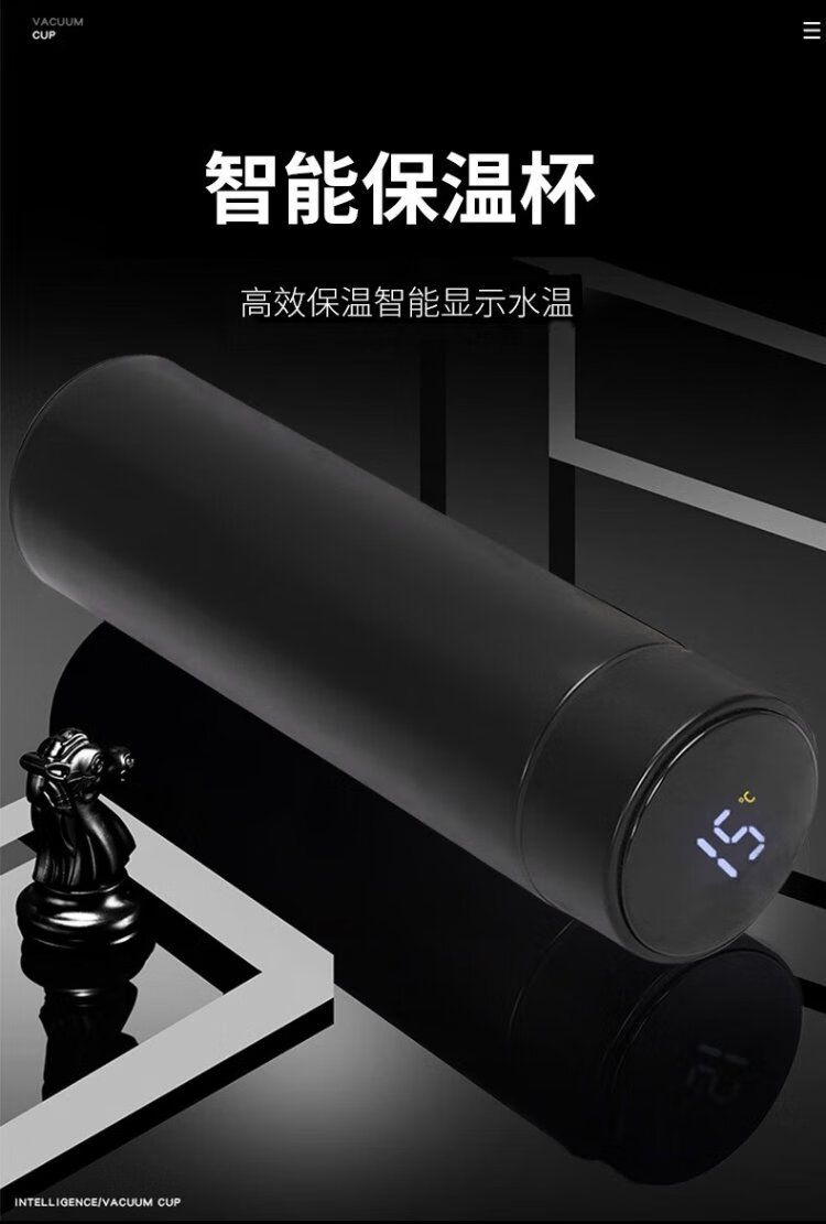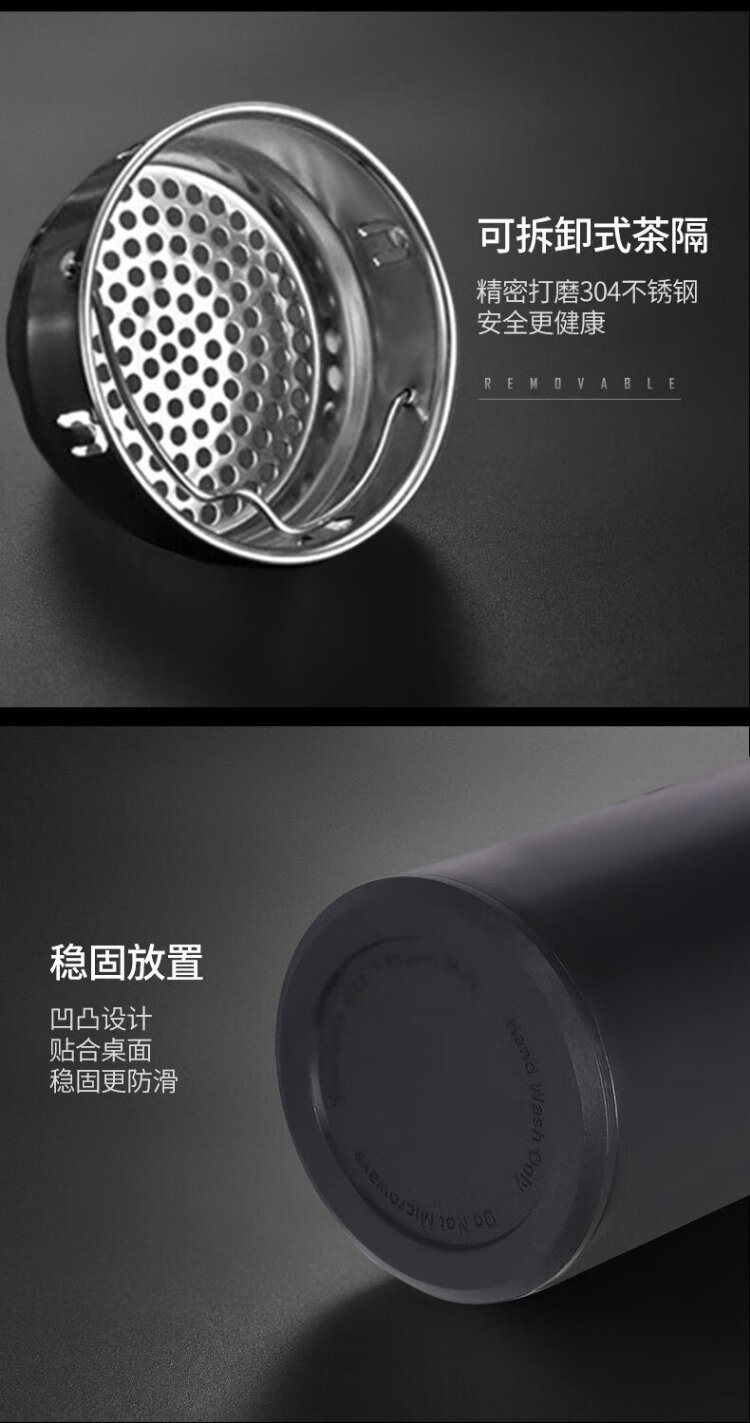 Home Easy Smart Temperature Display Thermos Cup 304 Stainless Steel Office Men and Women Large Capacity Business Tea and Water Separating Water Cup Black