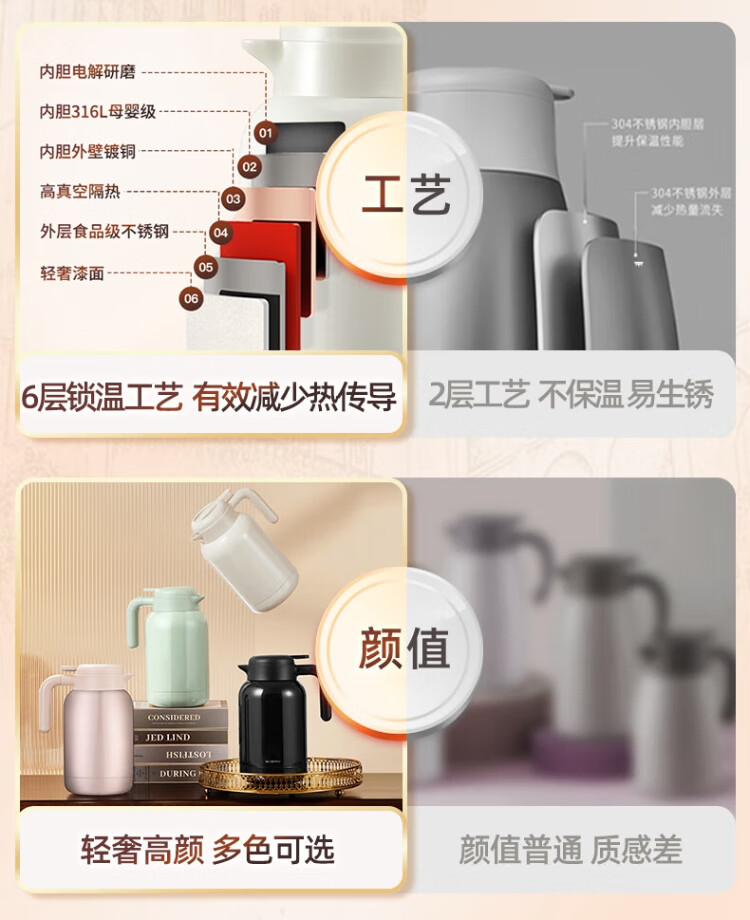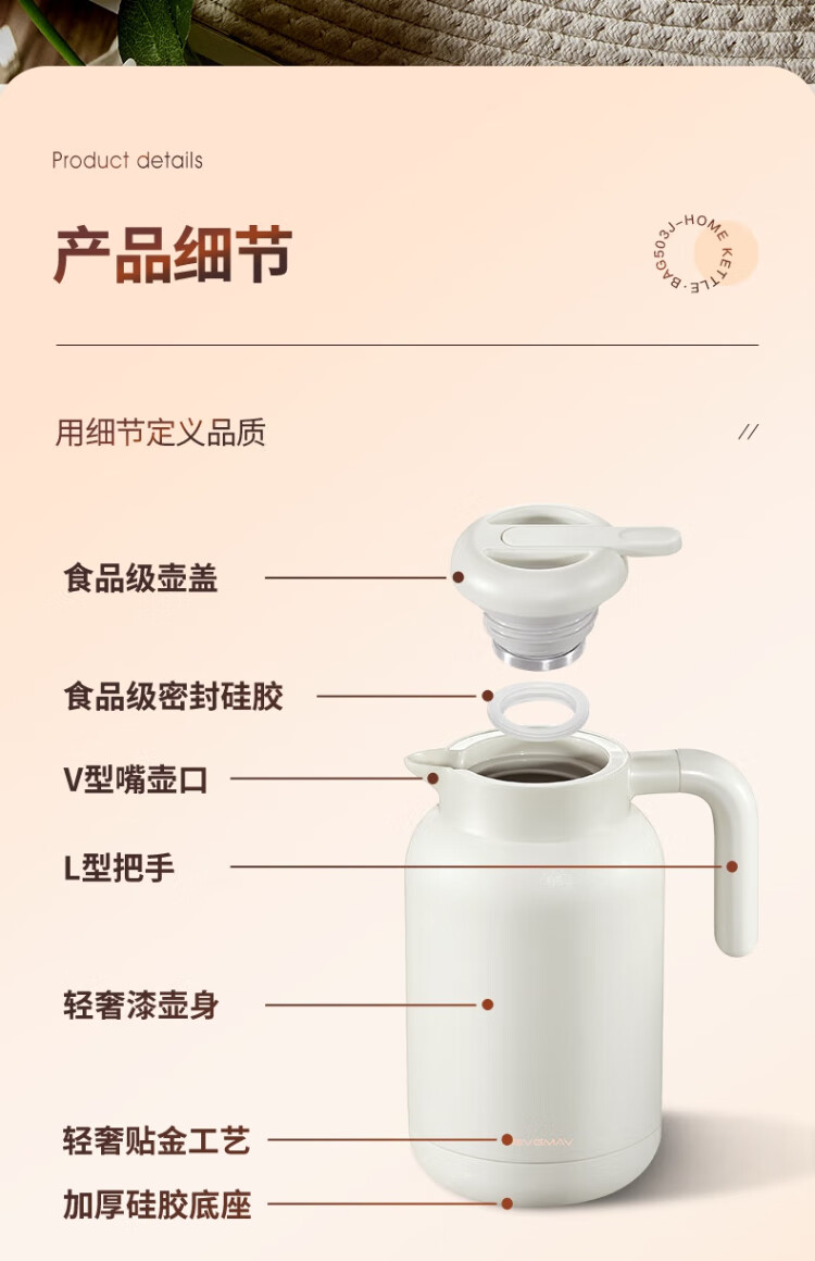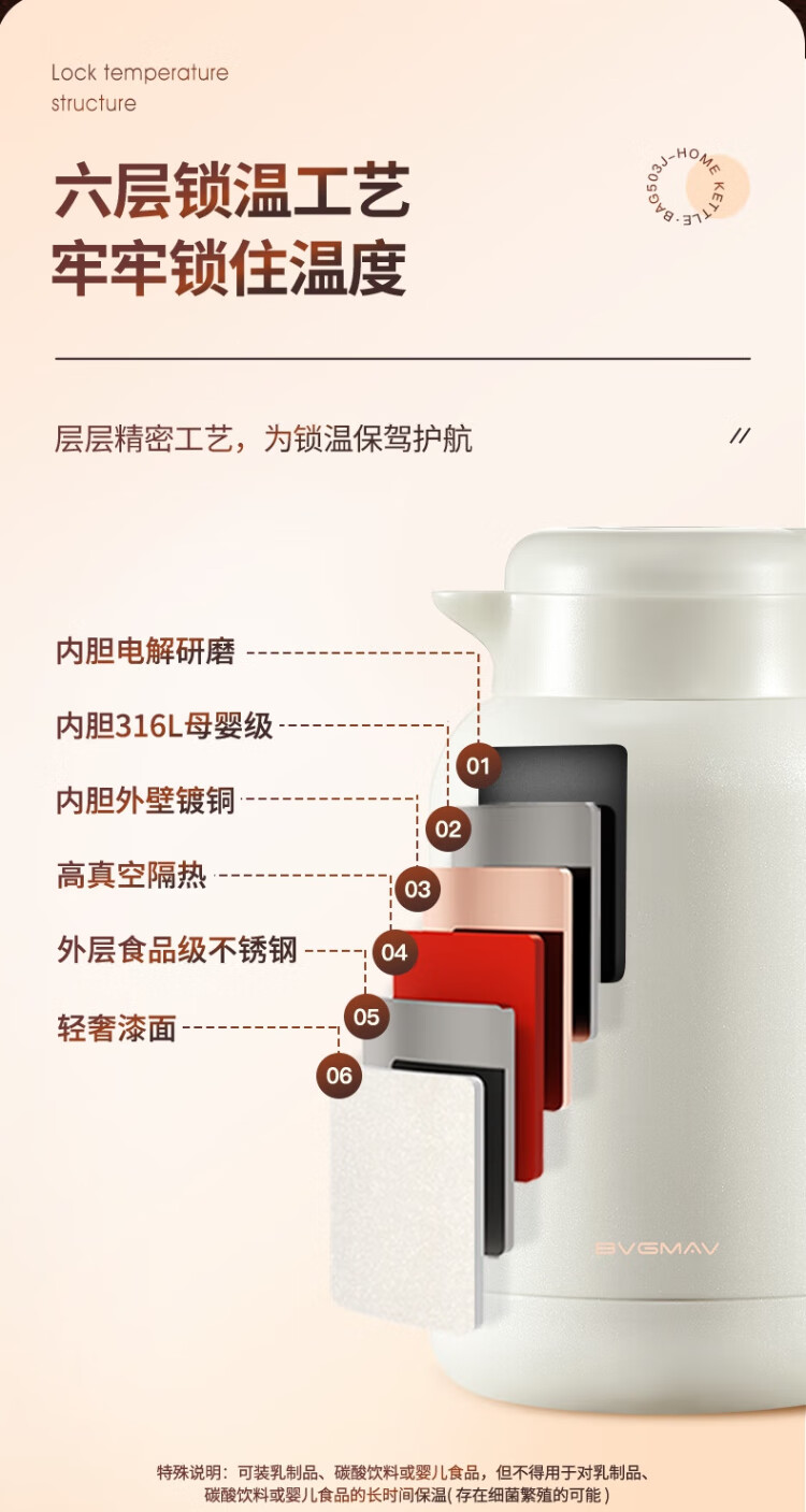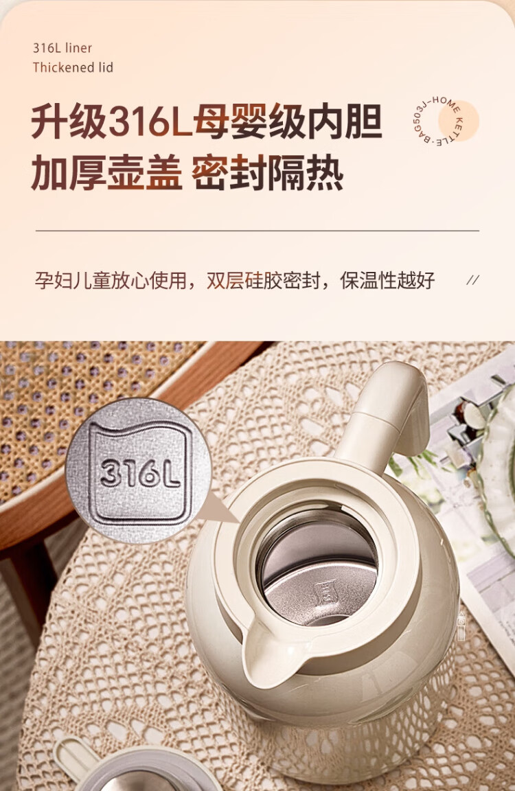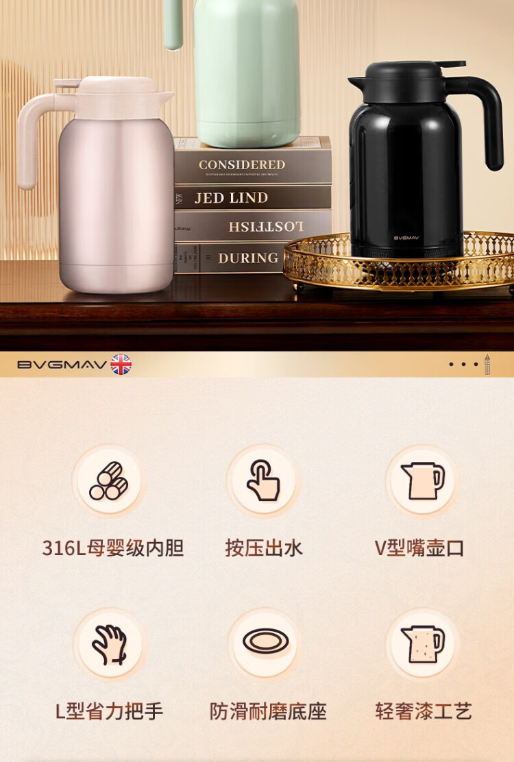BVGMAV thermos kettle home office 316L stainless steel thermos kettle large capacity thermos bottle home high-end gift 2L