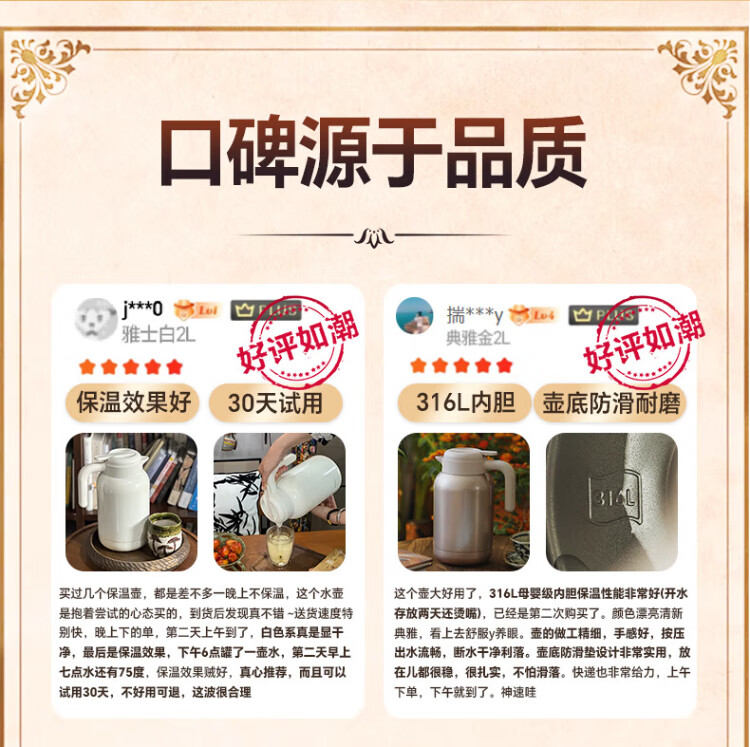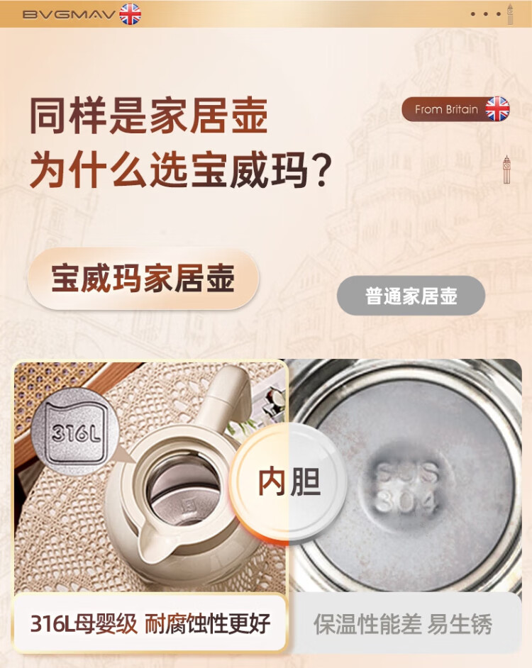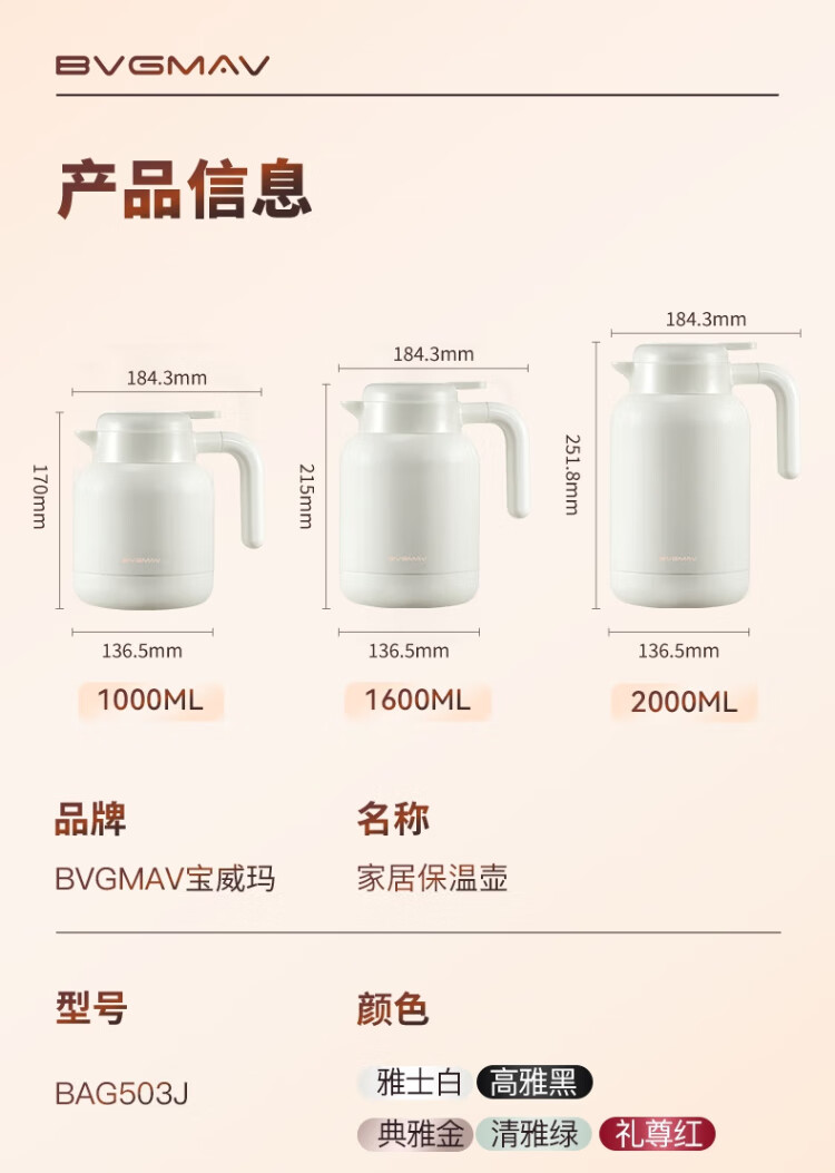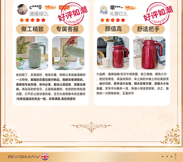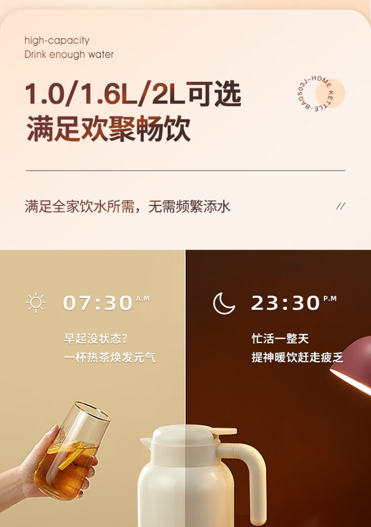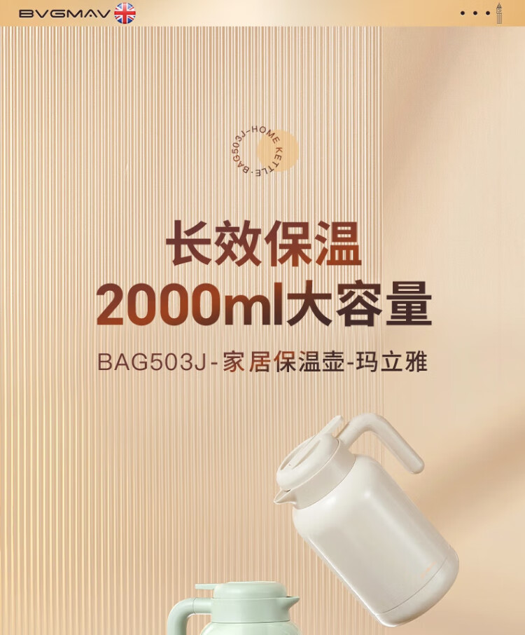 BVGMAV thermos kettle home office 316L stainless steel thermos kettle large capacity thermos bottle home high-end gift 2L