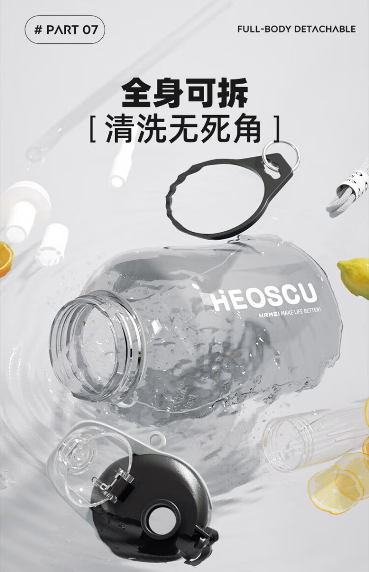 NRMEi Sports Water Cup Extra Large Capacity Summer Men's Fitness Tea Water Separator Ton Barrel High Temperature Resistant Portable 2000ml Kettle