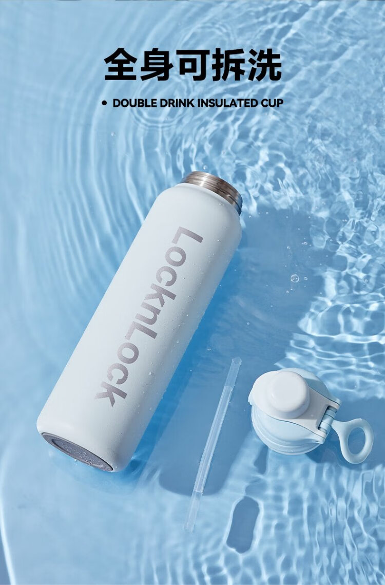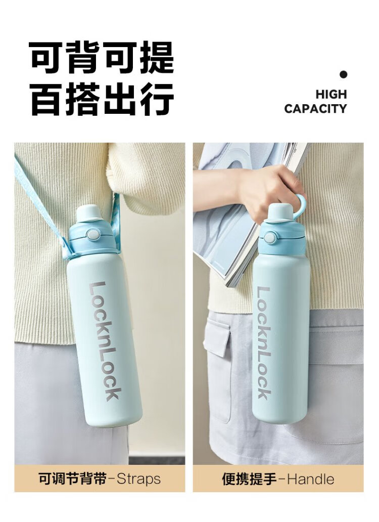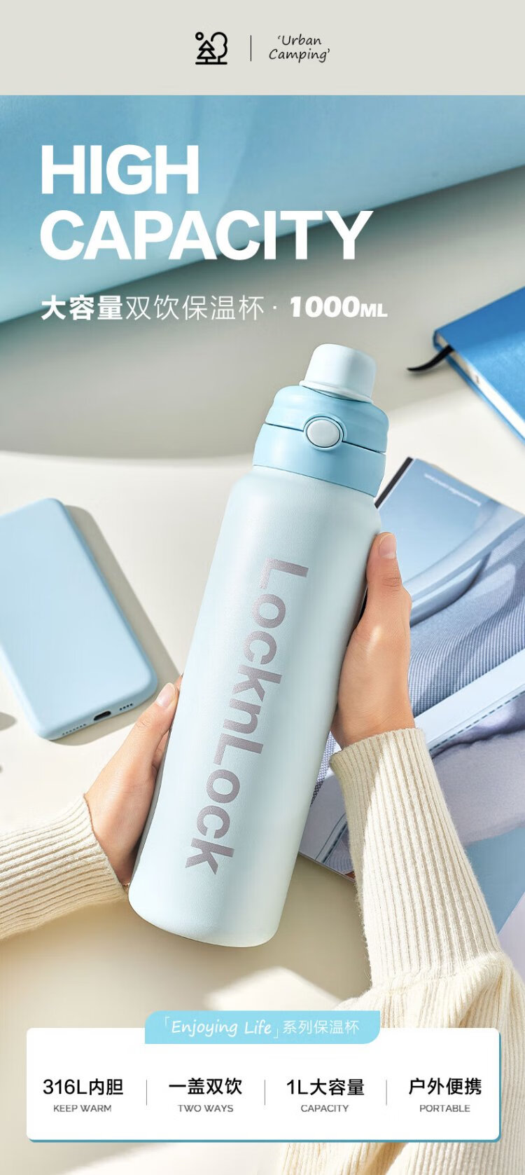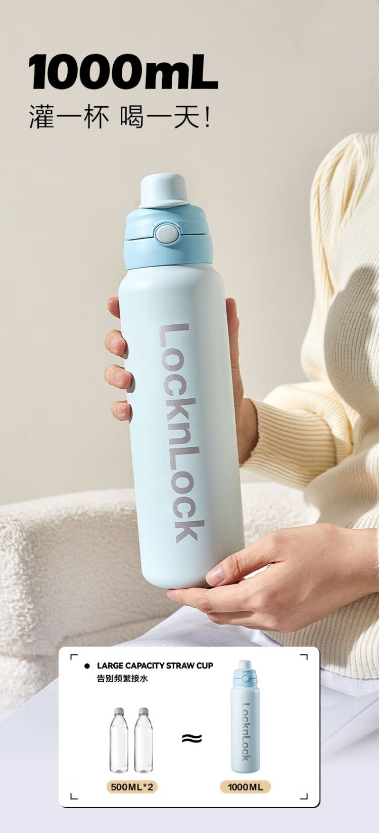Lock and Lock Straw Thermos Cup Adult Large Capacity 1000ml Water Cup Direct Drinking Cup 316 Stainless Steel Double Drinking Cup Thermos