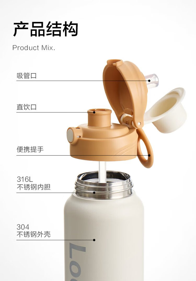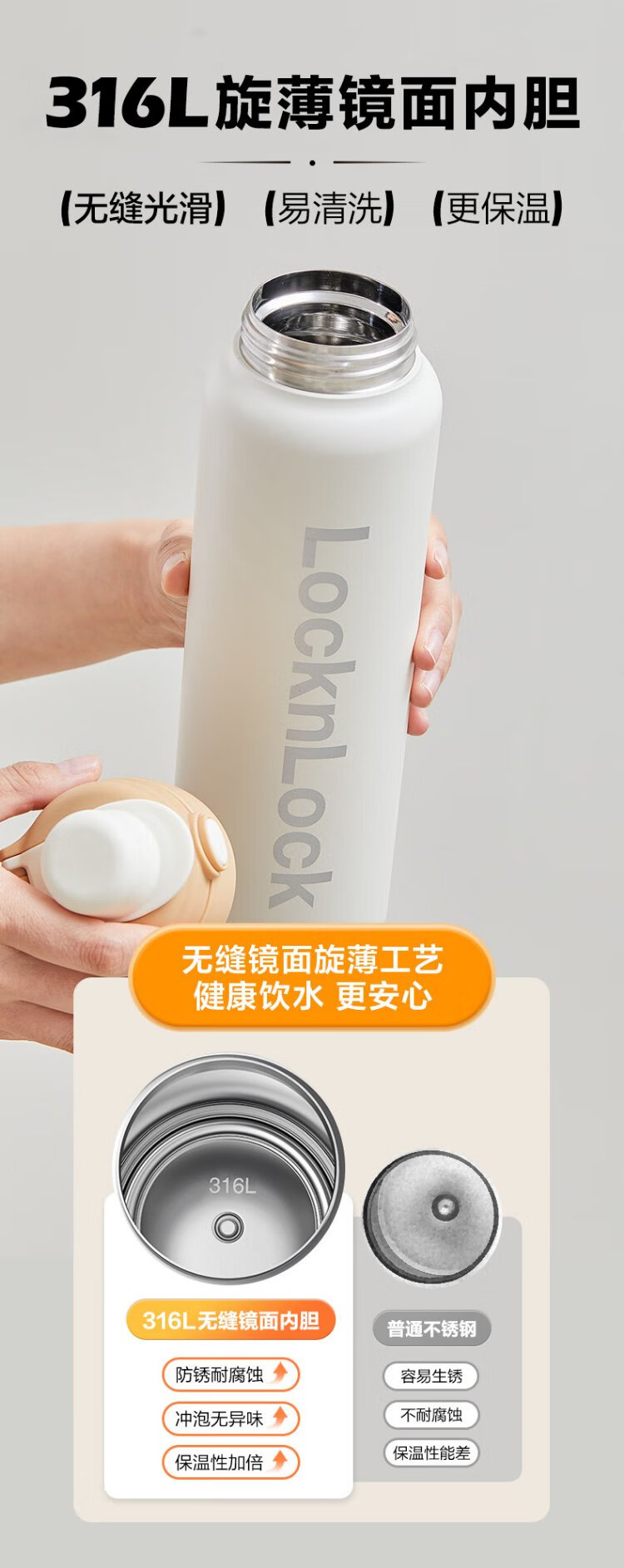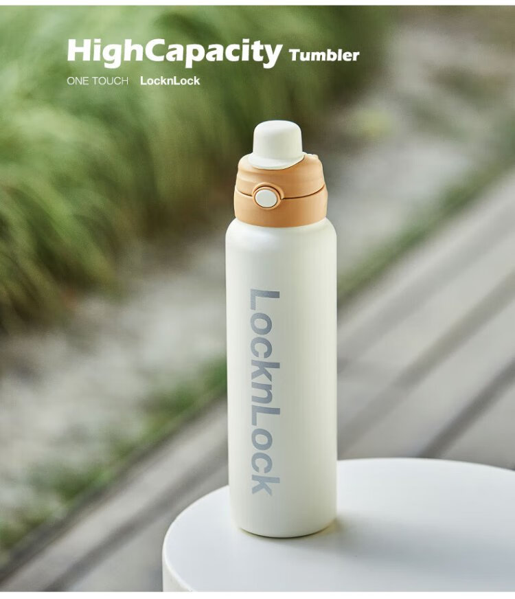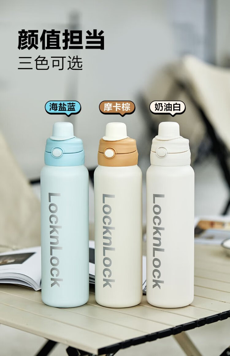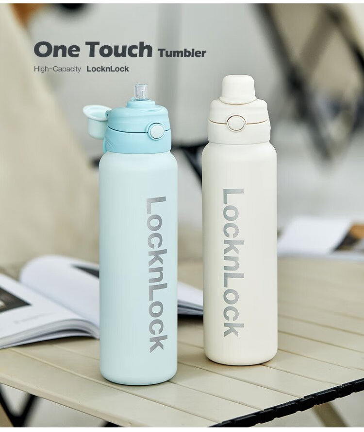Lock and Lock Straw Thermos Cup Adult Large Capacity 1000ml Water Cup Direct Drinking Cup 316 Stainless Steel Double Drinking Cup Thermos