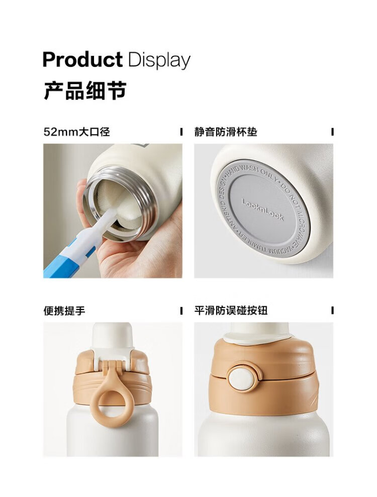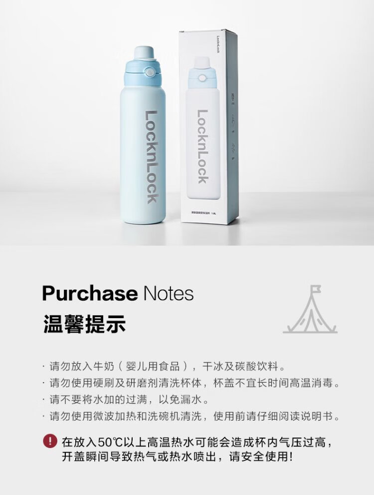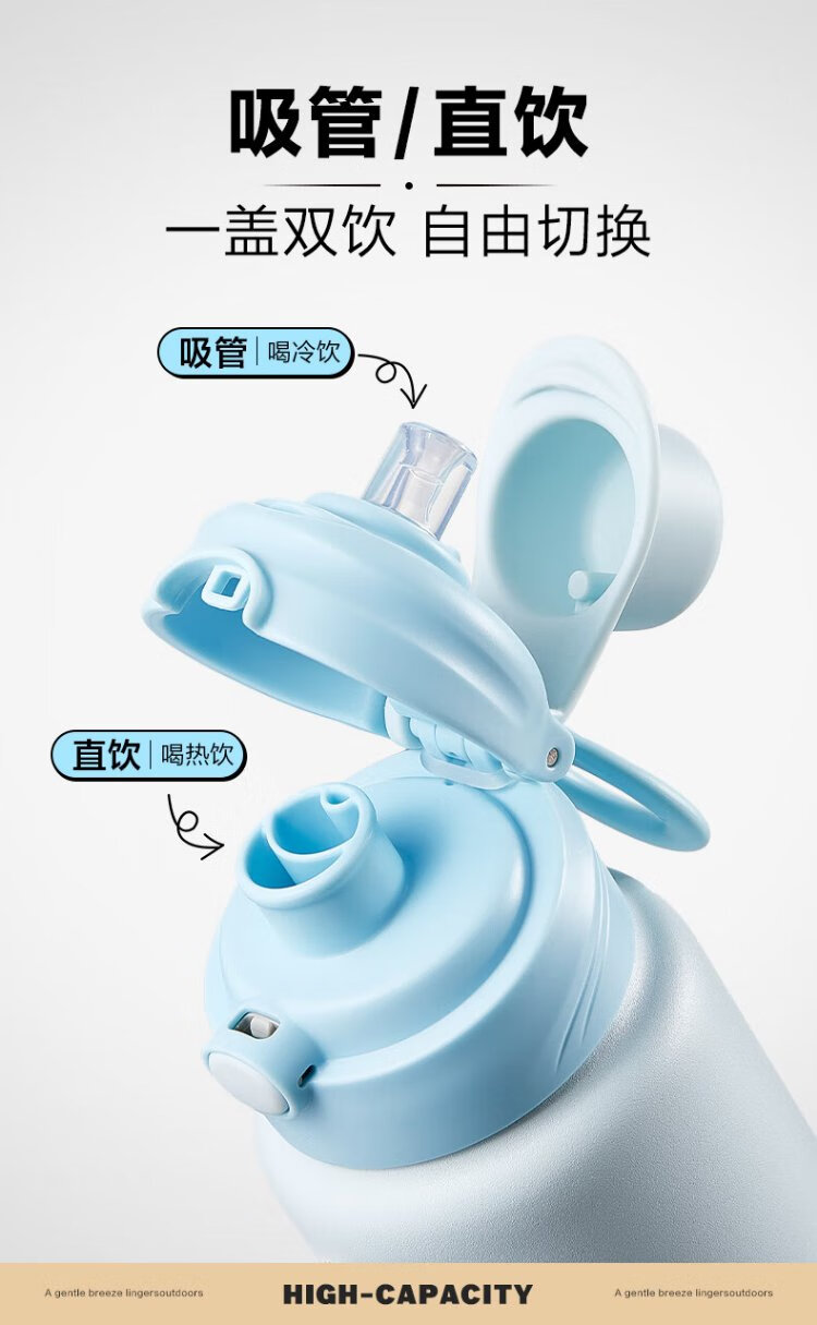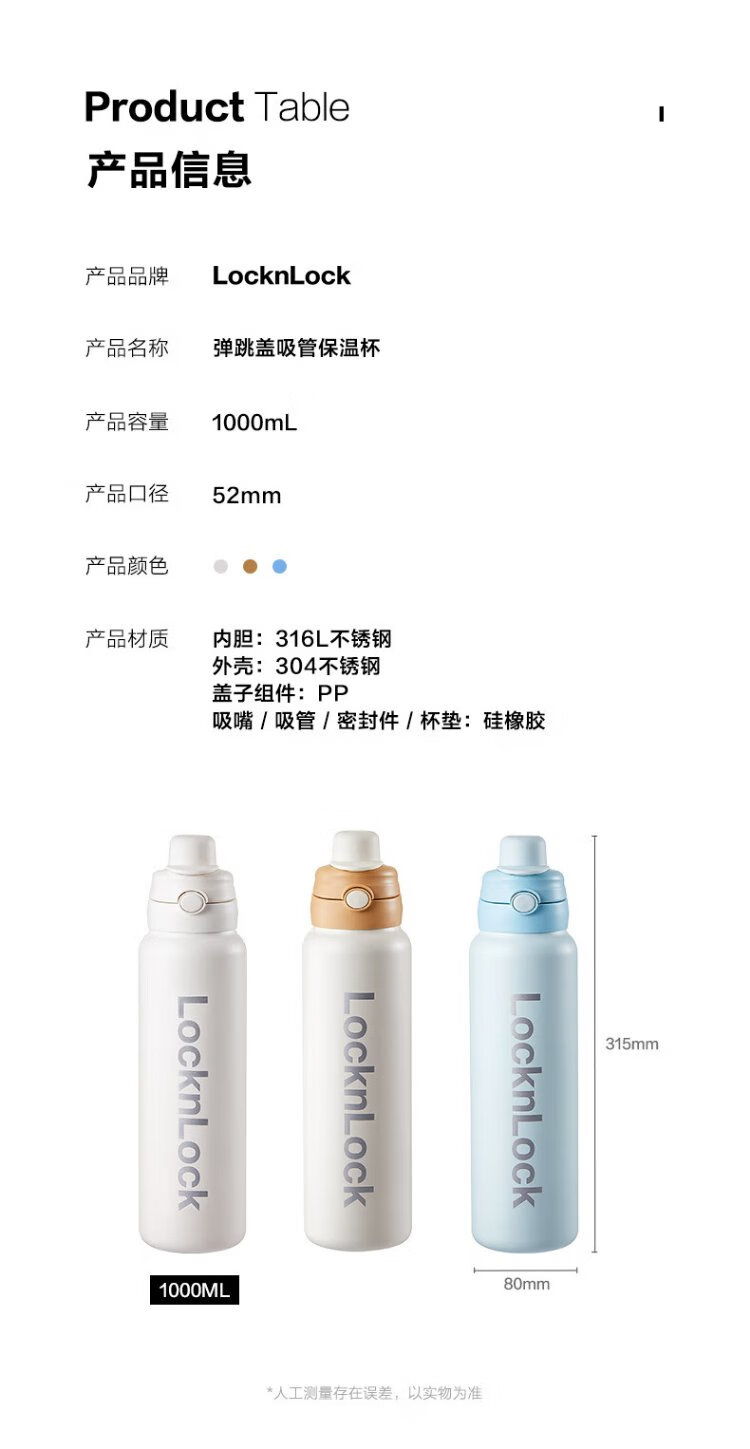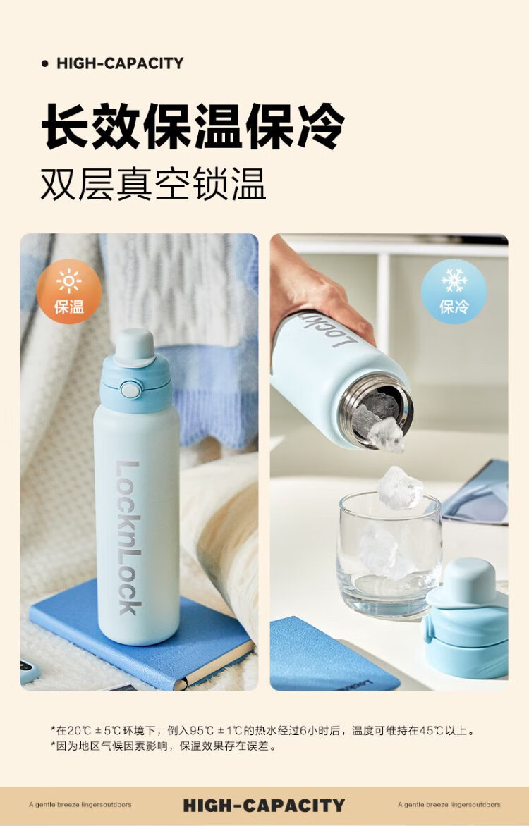Lock and Lock Straw Thermos Cup Adult Large Capacity 1000ml Water Cup Direct Drinking Cup 316 Stainless Steel Double Drinking Cup Thermos