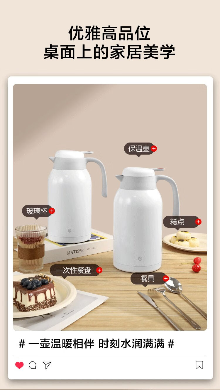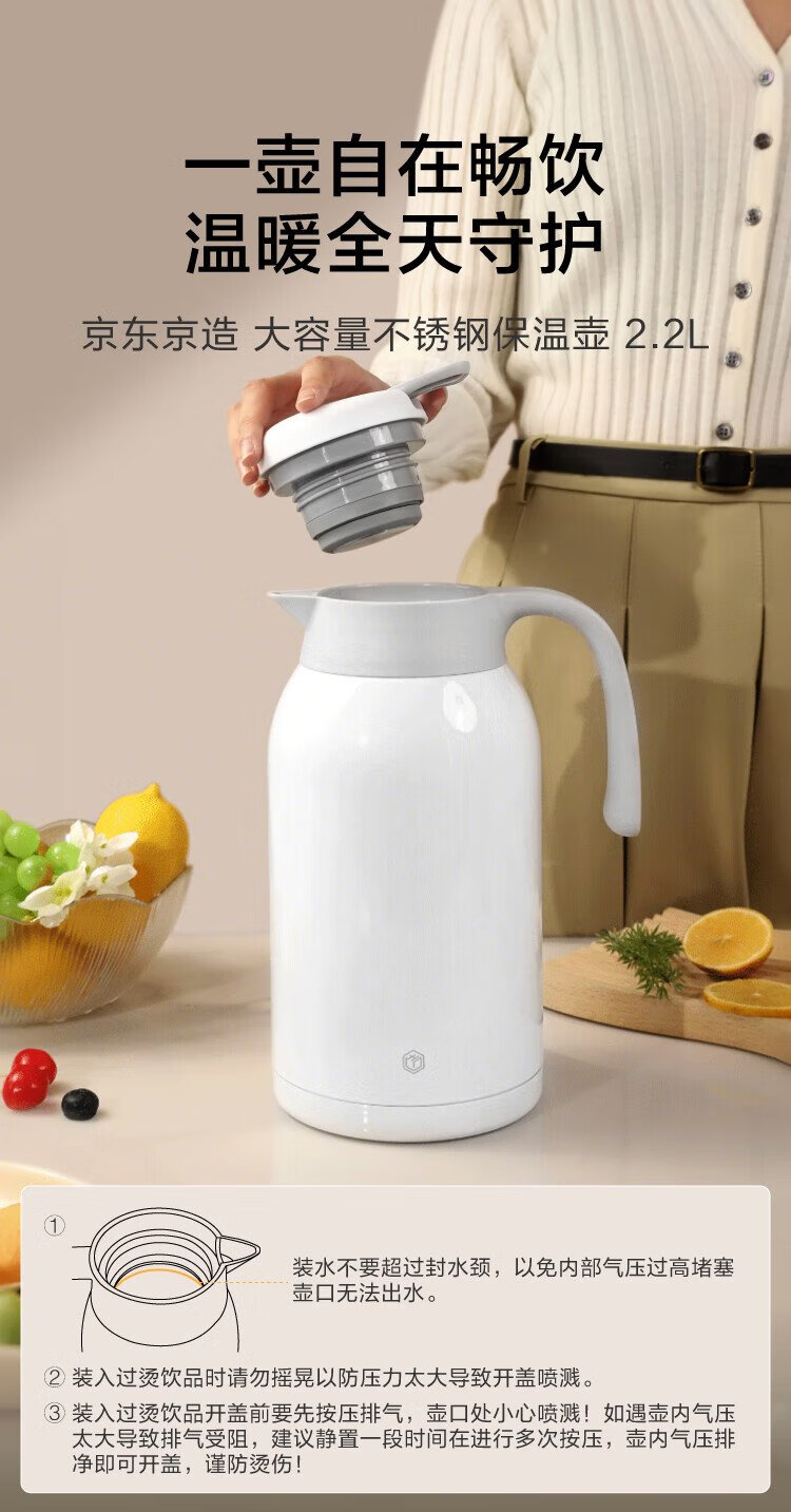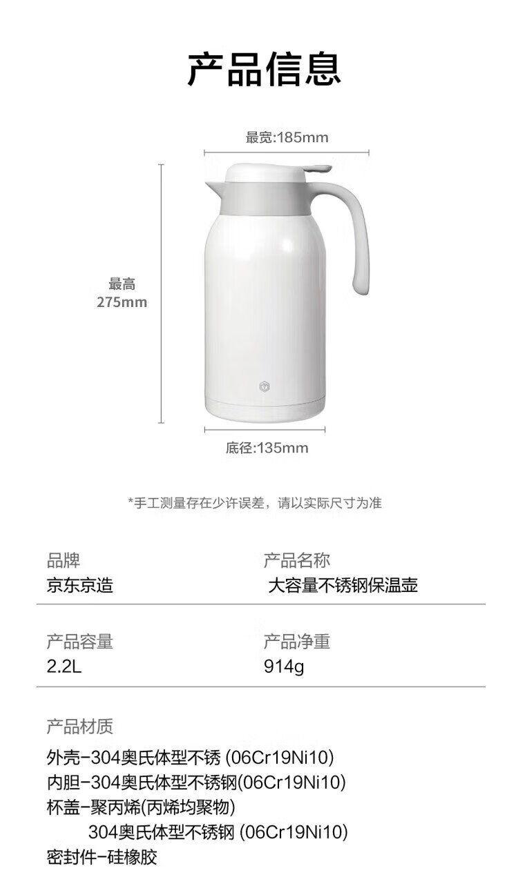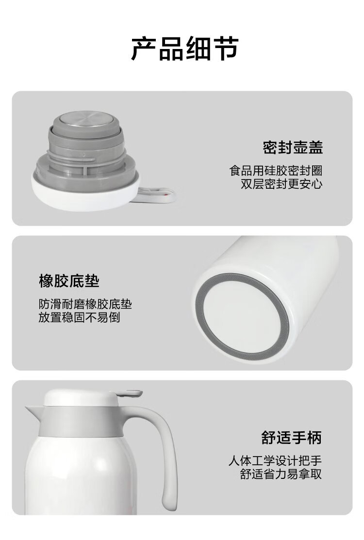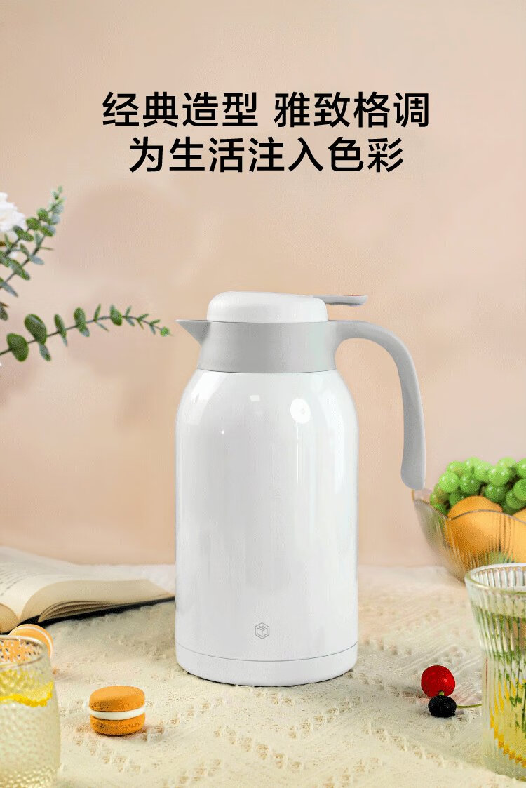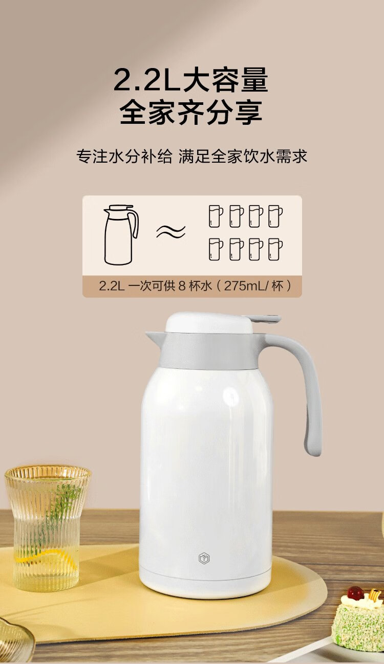 Thermos kettle made in Tokyo, household large-capacity thermos, outdoor thermos kettle, 304 stainless steel white 2.2L