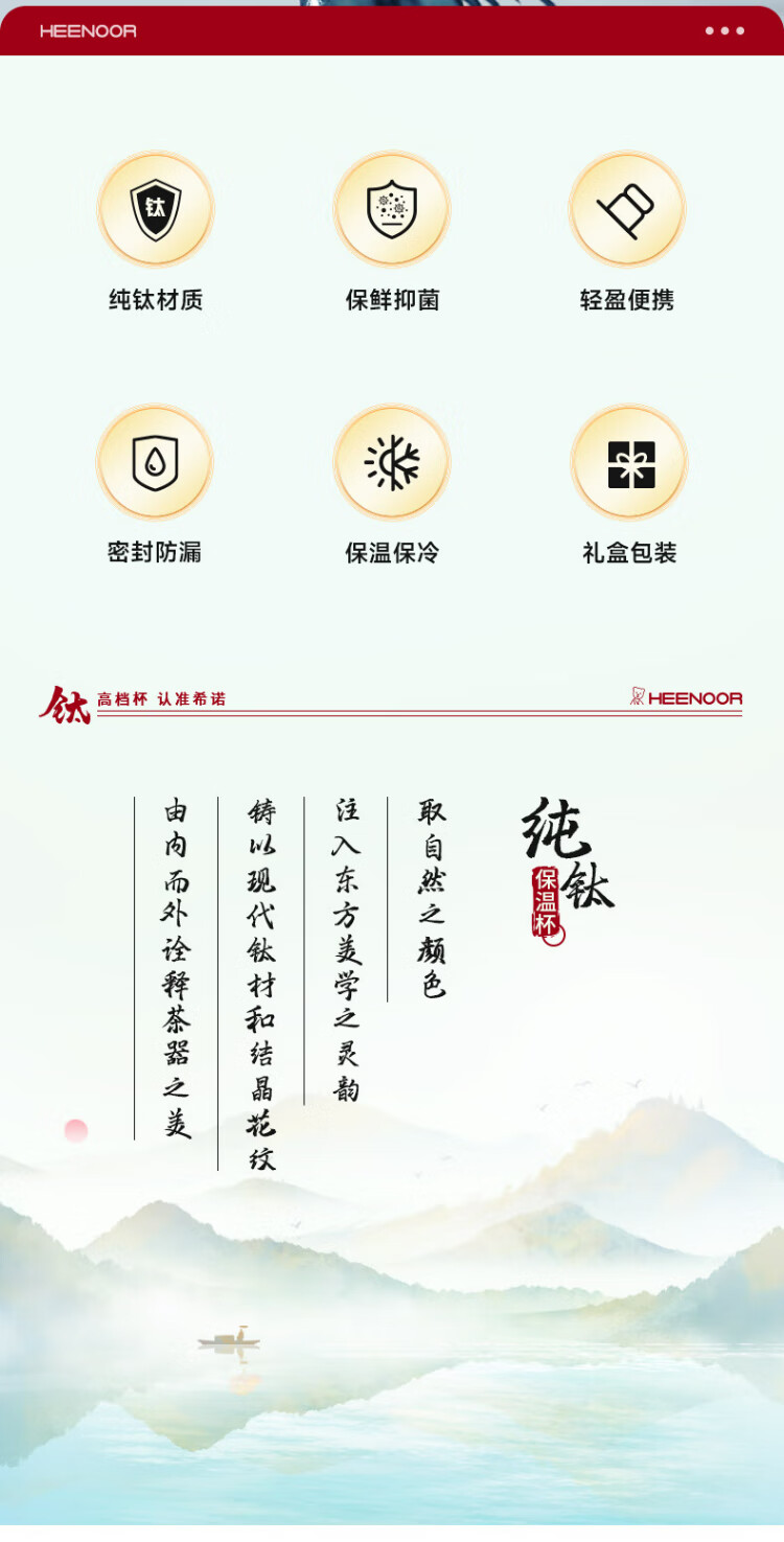 HEENOOR thermos cup titanium cup high-end business car water cup men's filtered tea cup XN-T313 Qinxue Silver 560mL