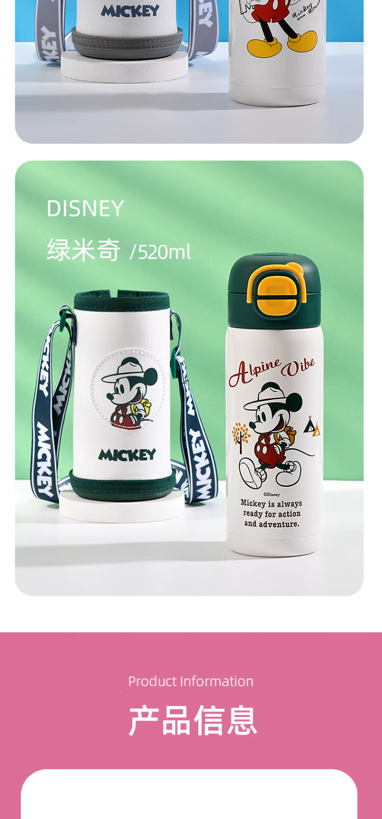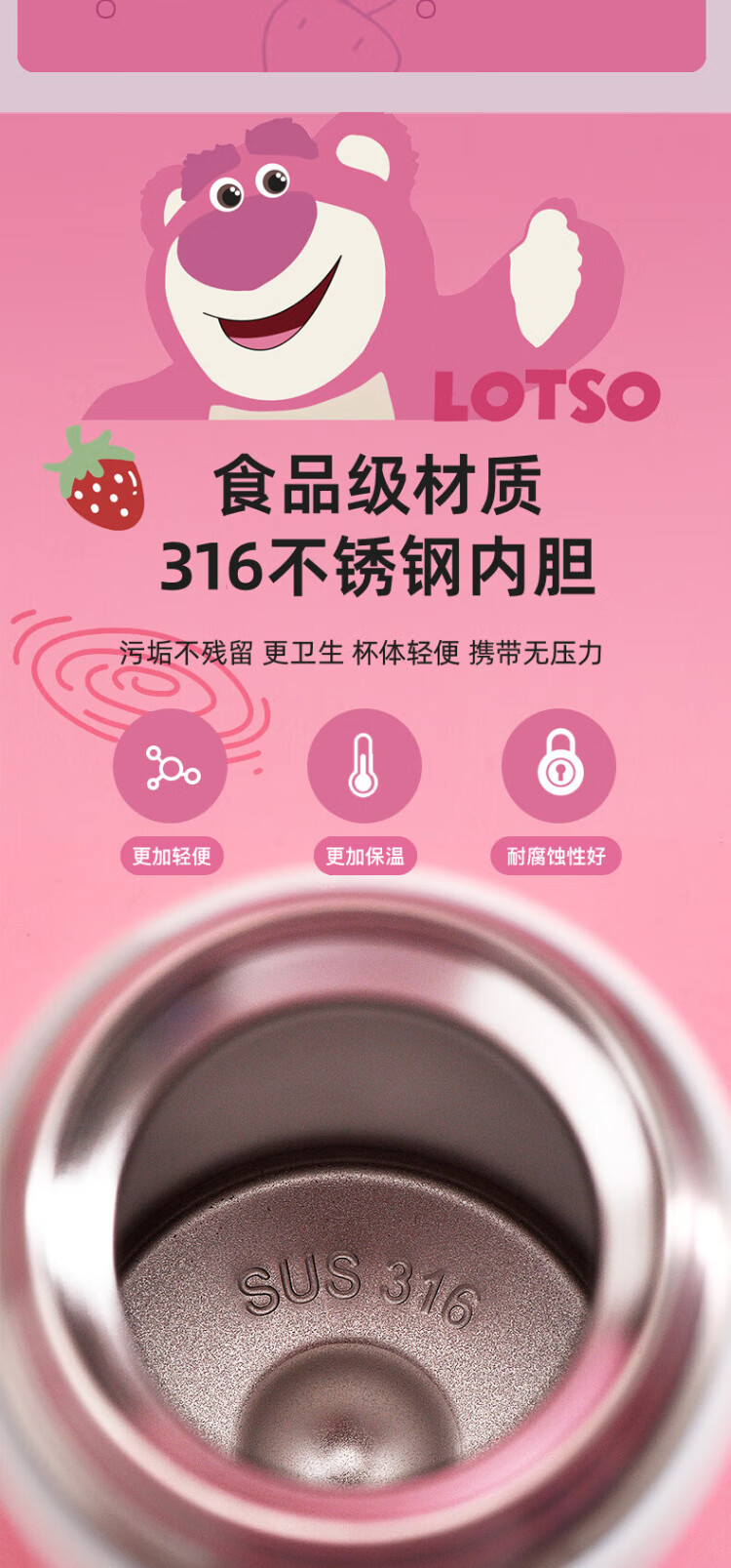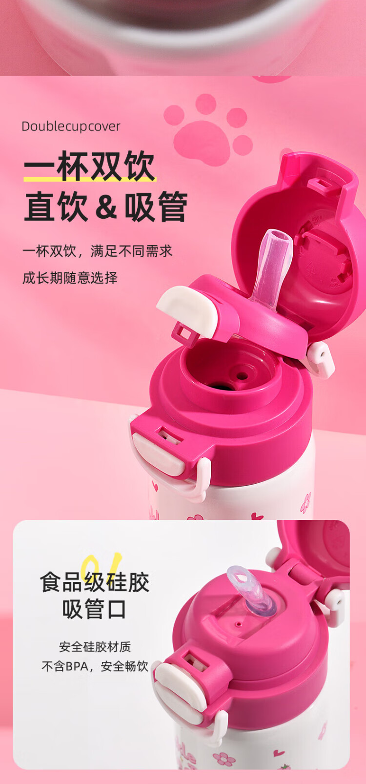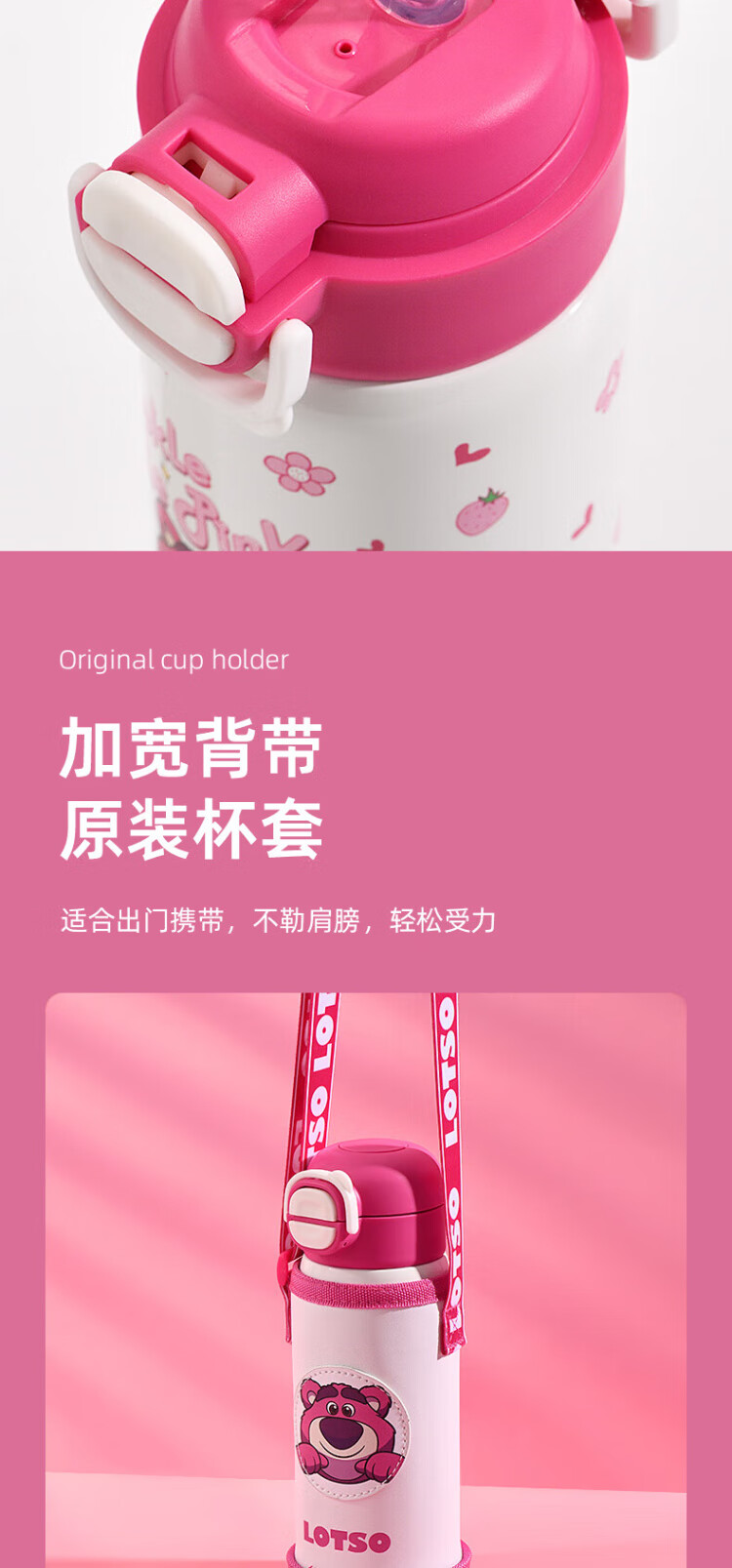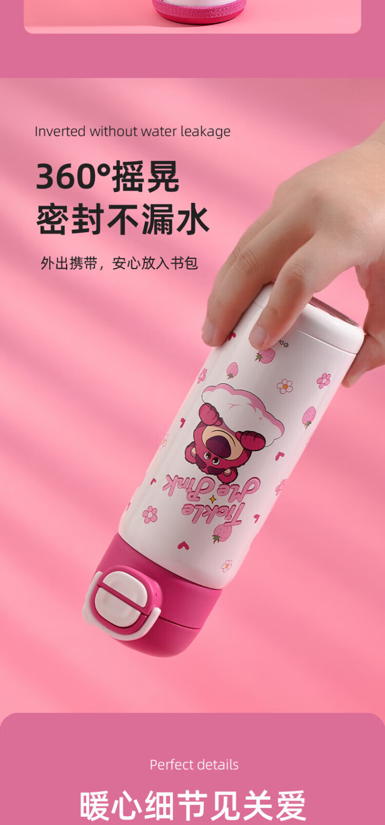 Disney Insulated Cup Children's Double Drinking Cup with Straw 316 Stainless Steel Male and Female Elementary School Large Capacity 6296 Strawberry Bear