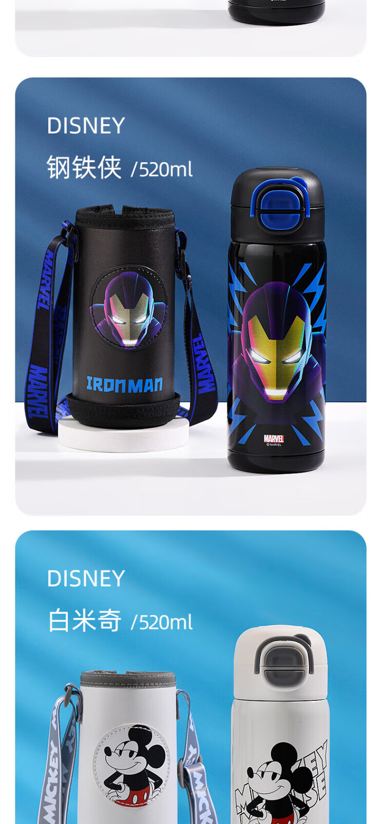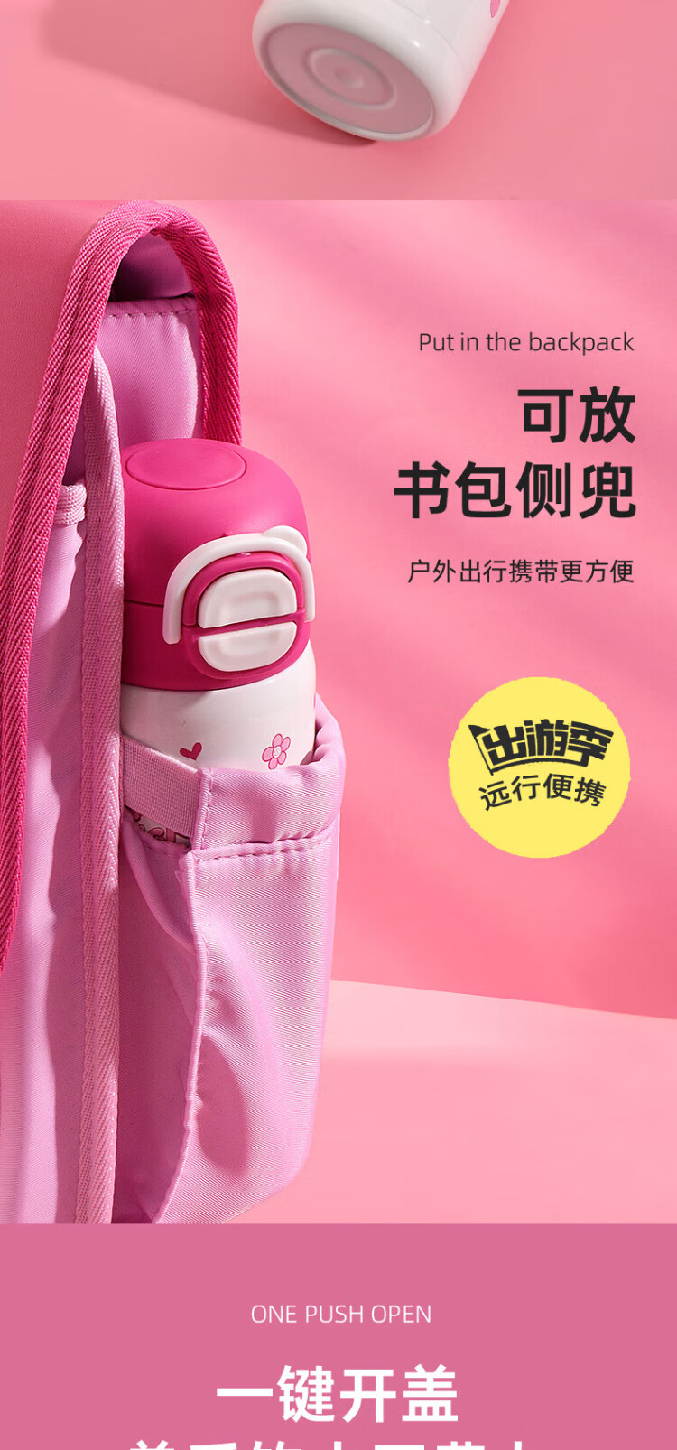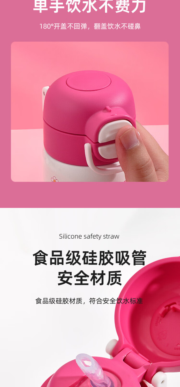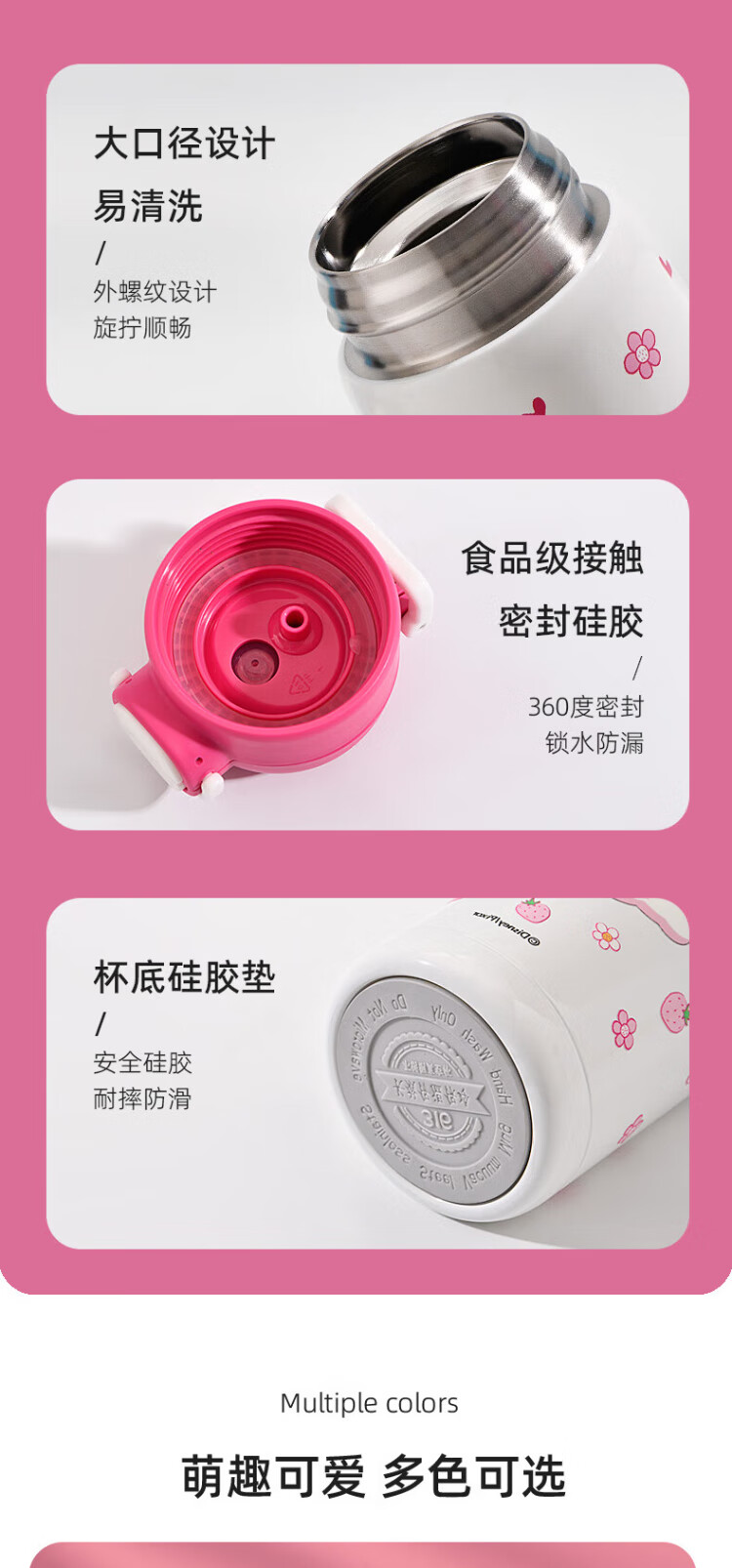 Disney Insulated Cup Children's Double Drinking Cup with Straw 316 Stainless Steel Male and Female Elementary School Large Capacity 6296 Strawberry Bear