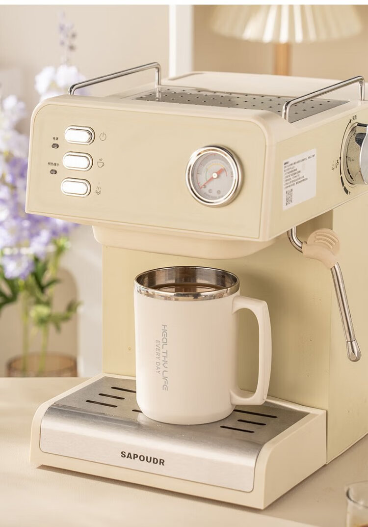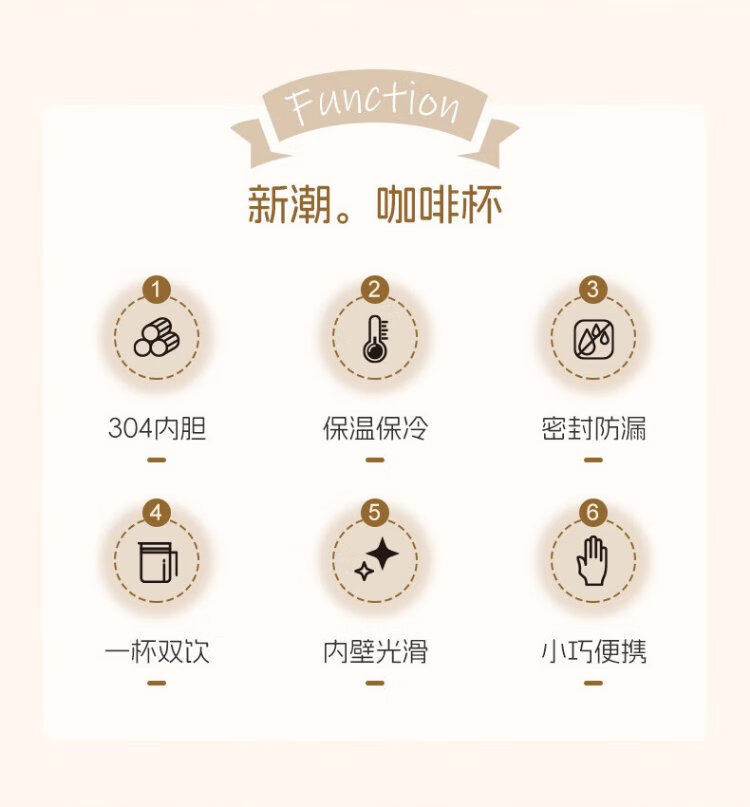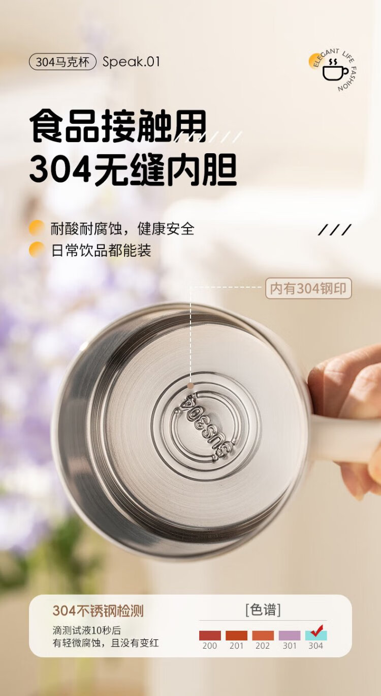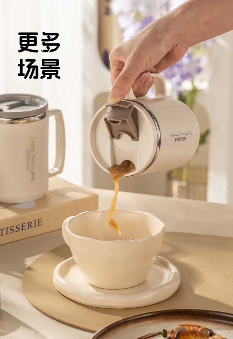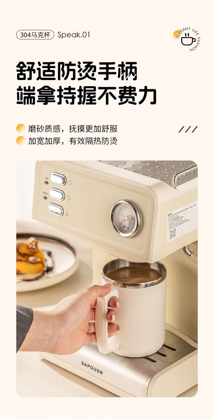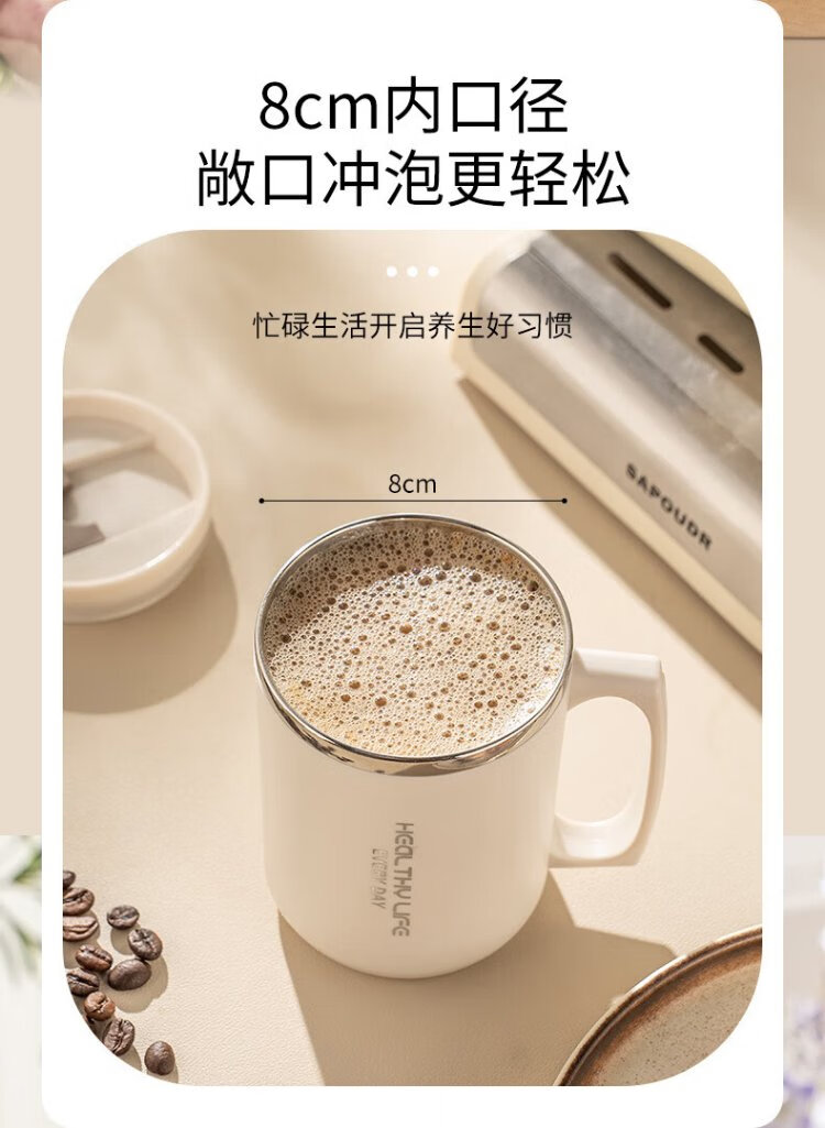 CAIZHI 304 stainless steel water cup, mug, coffee cup with lid, household double-layer anti-scald drinking cup, coffee white CZ6228