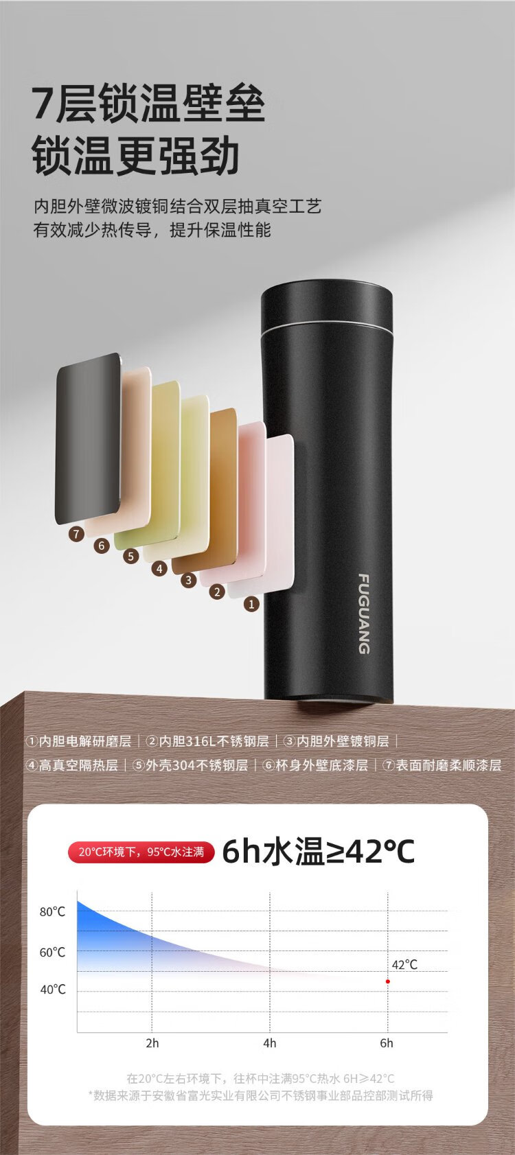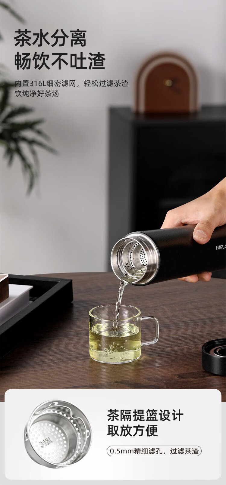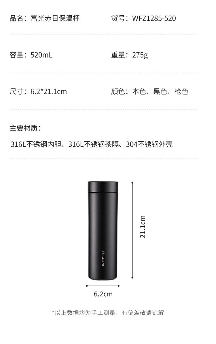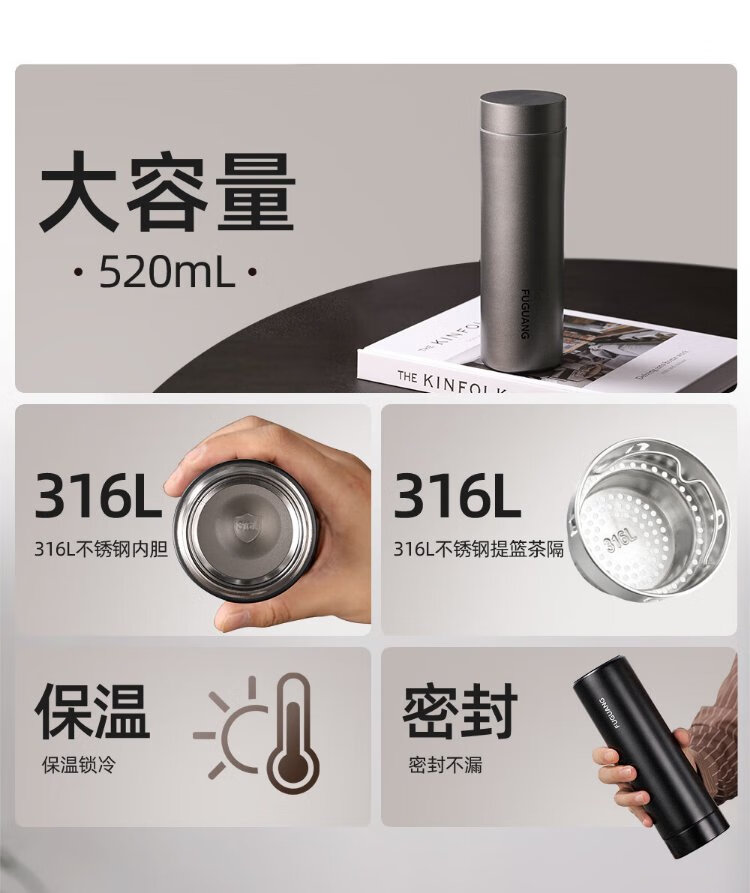 Fuguang thermos cup 316L stainless steel water cup for men and women, tea cup, cold cup, business tea and water separation, Jingdong limited