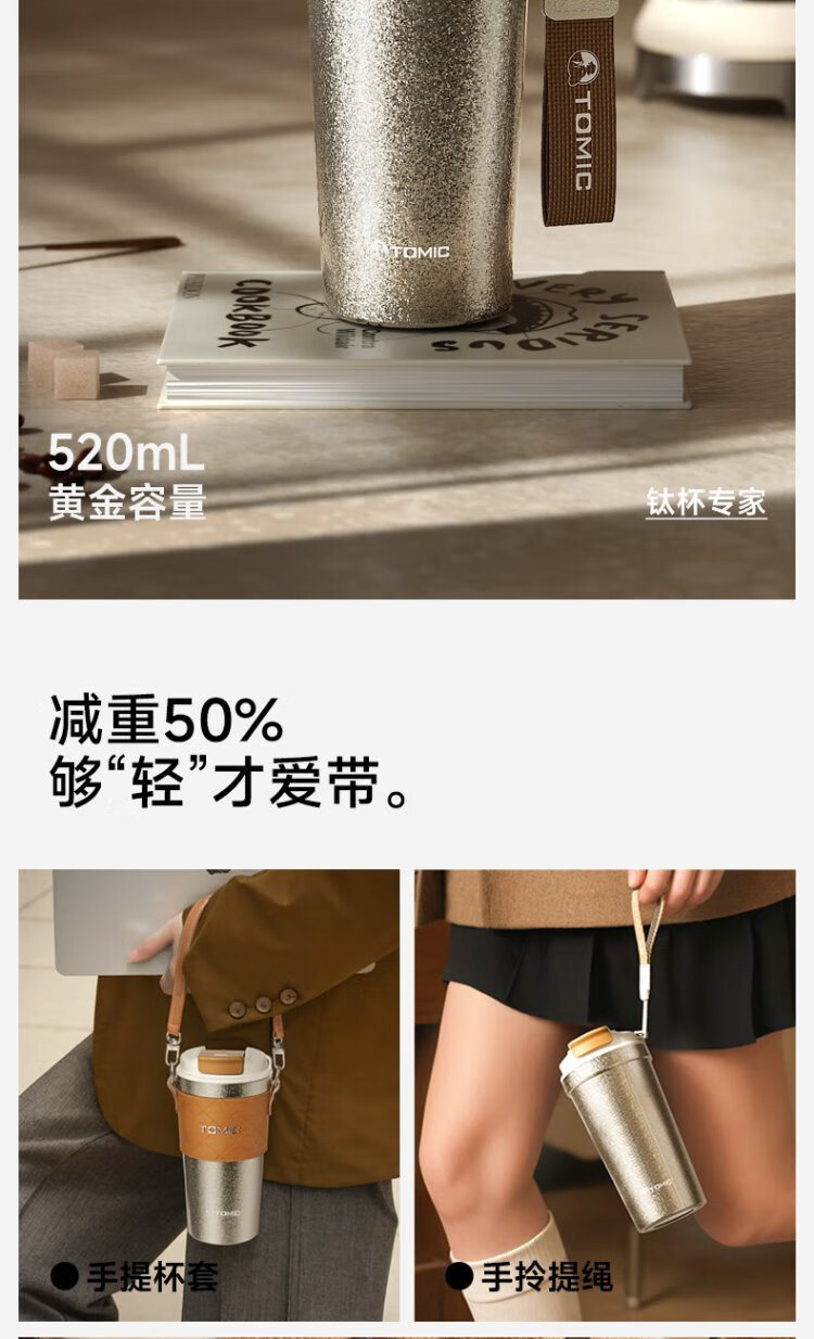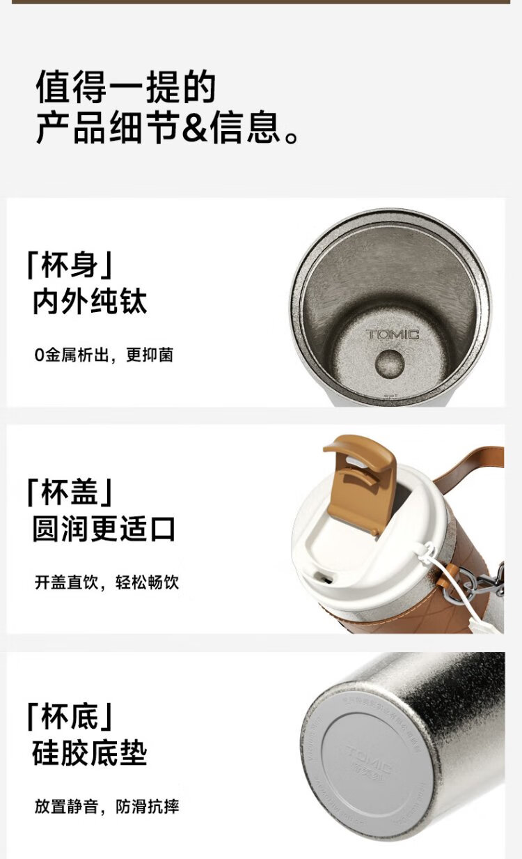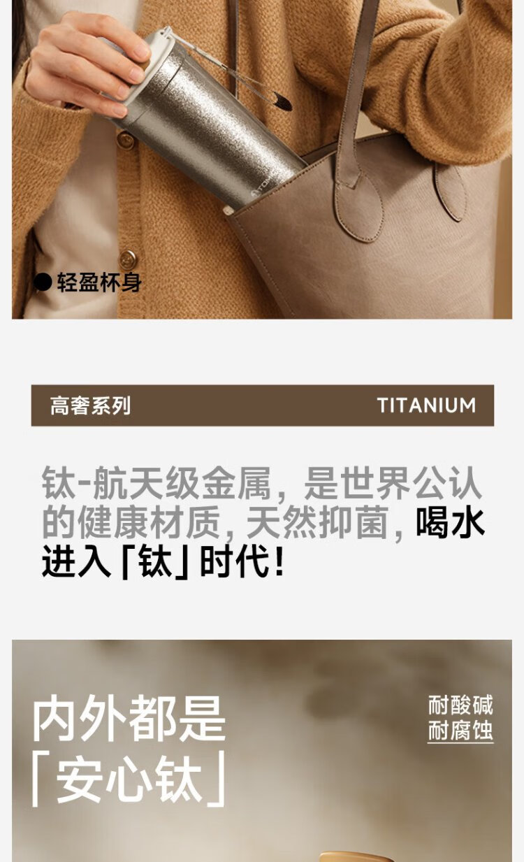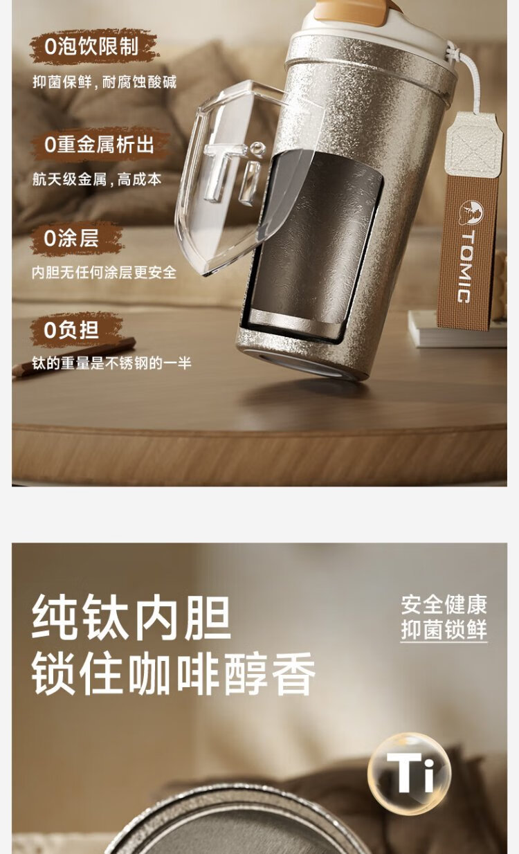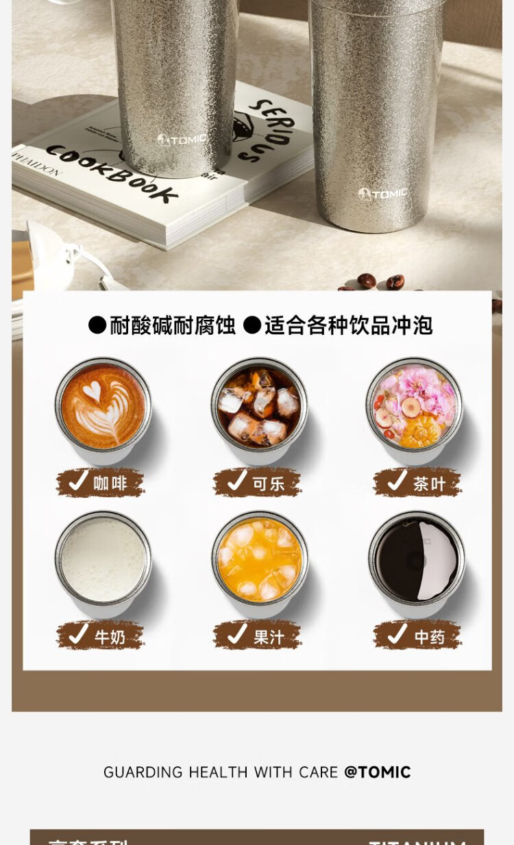 TOMIC Pure Titanium Cup Women's Insulated Coffee Cup Portable Large Capacity Water Cup with Lid Holiday Practical Double Eleven Gift