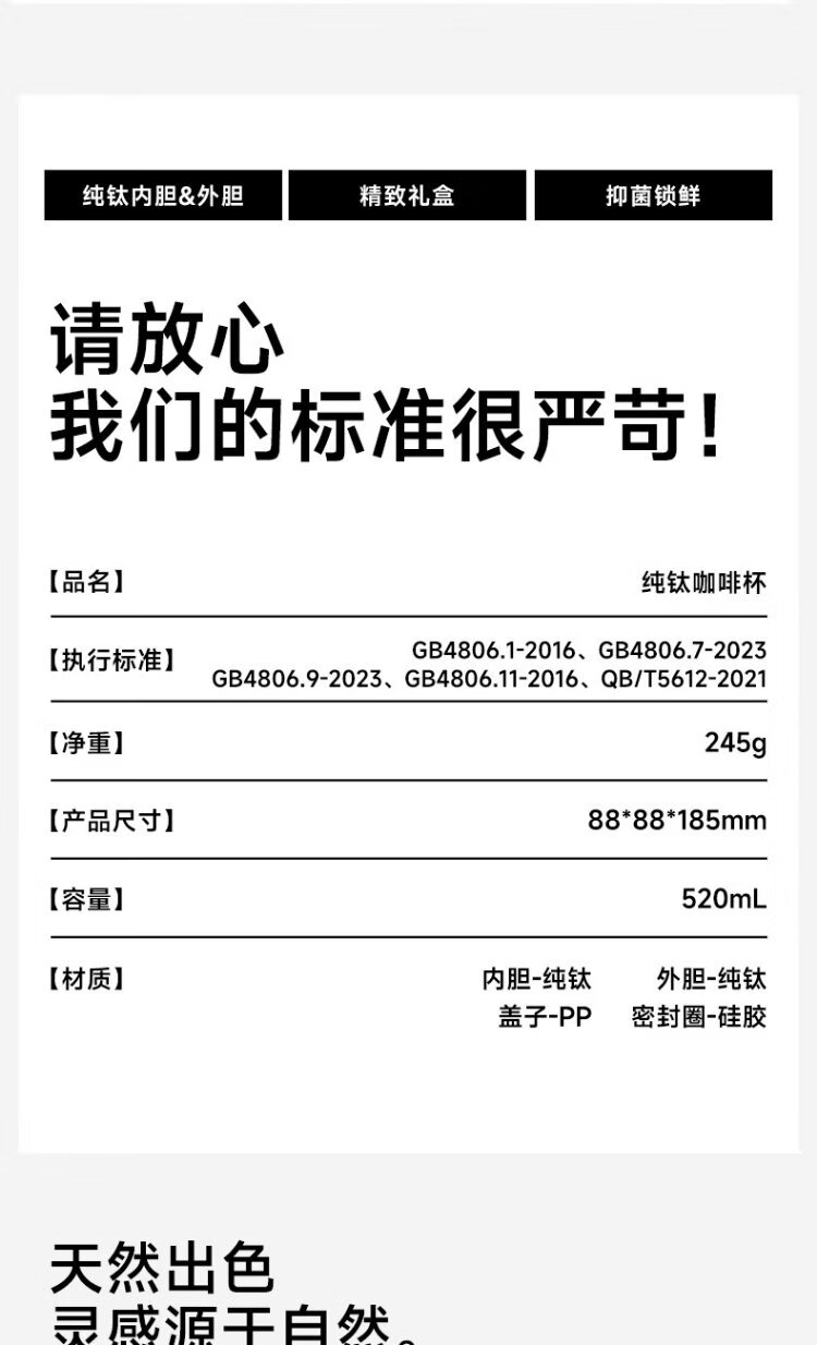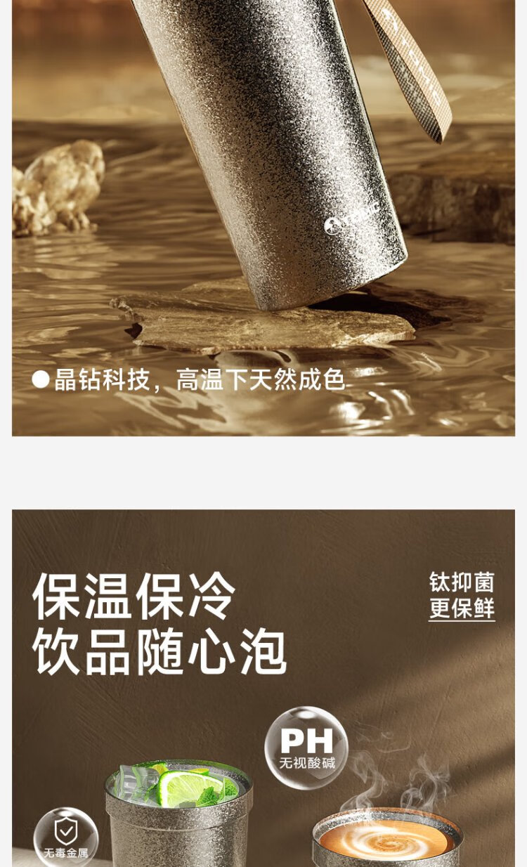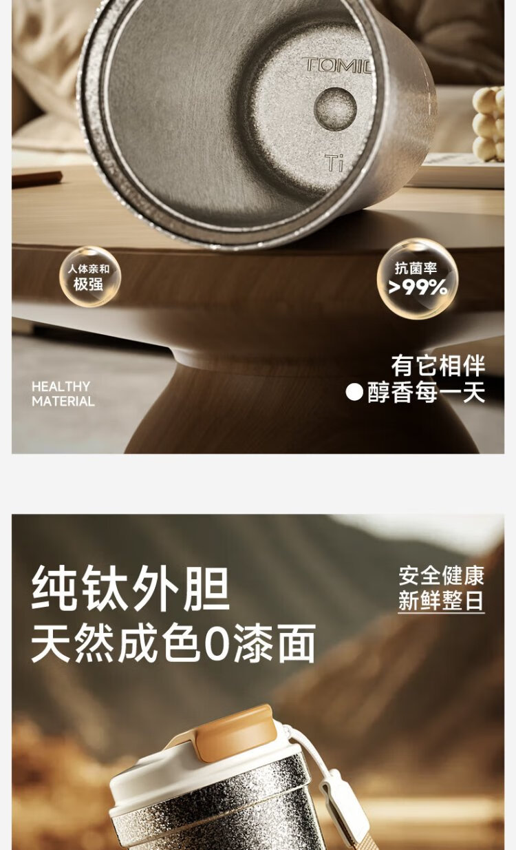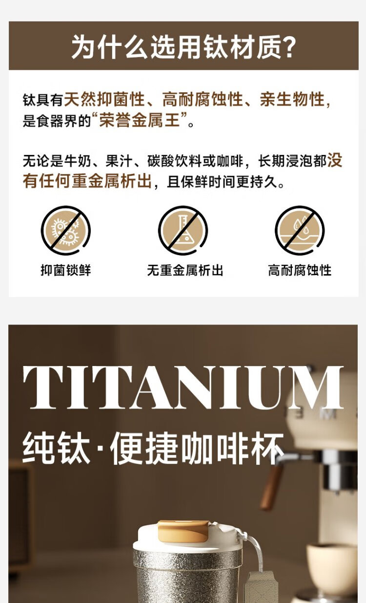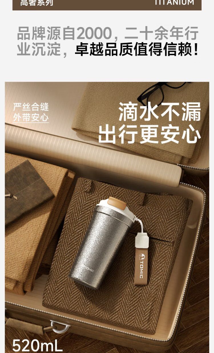 TOMIC Pure Titanium Cup Women's Insulated Coffee Cup Portable Large Capacity Water Cup with Lid Holiday Practical Double Eleven Gift