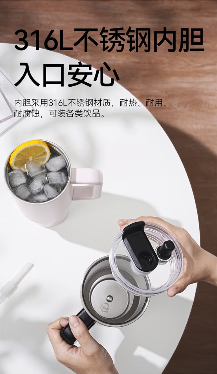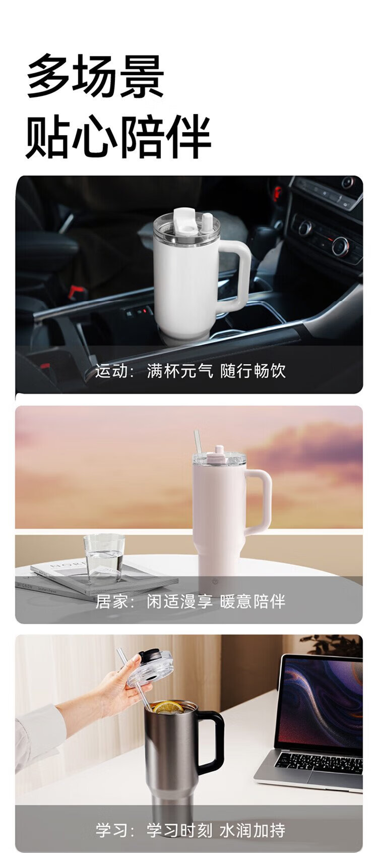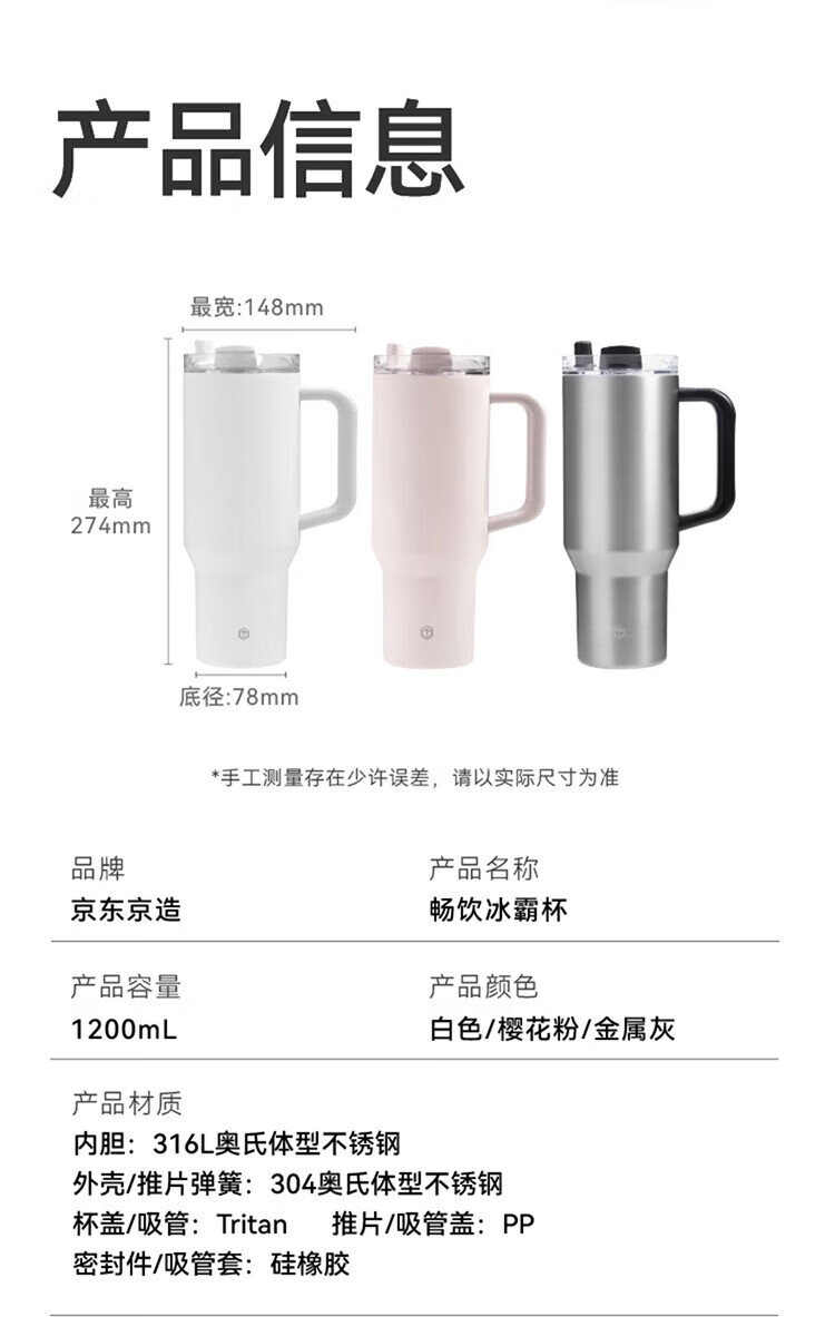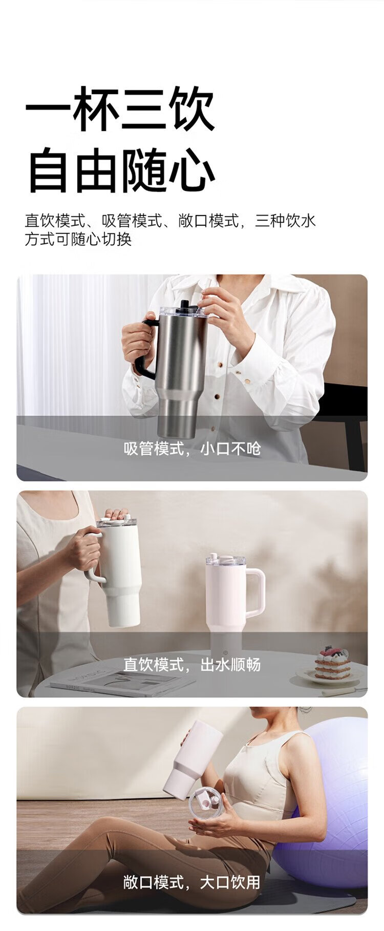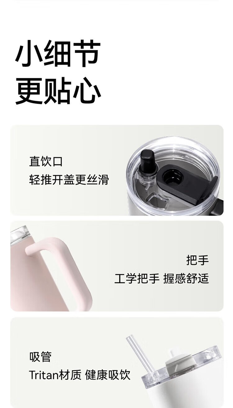 Jingdong large-capacity straw thermos cup 316L stainless steel boys and girls gift desktop office water cup 1.2L white