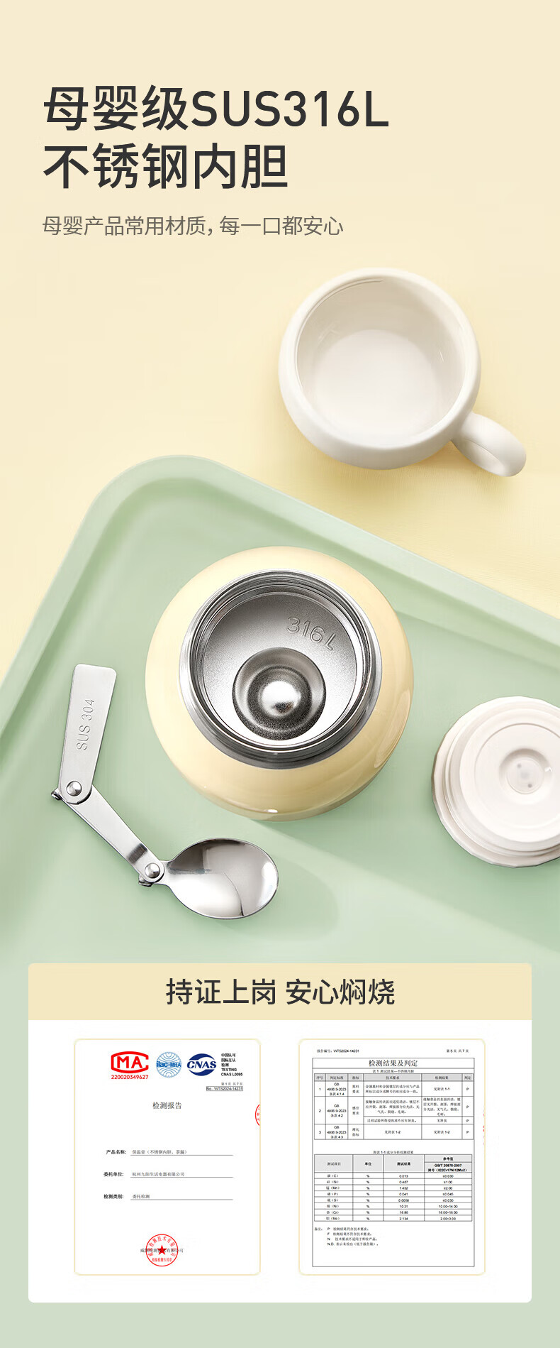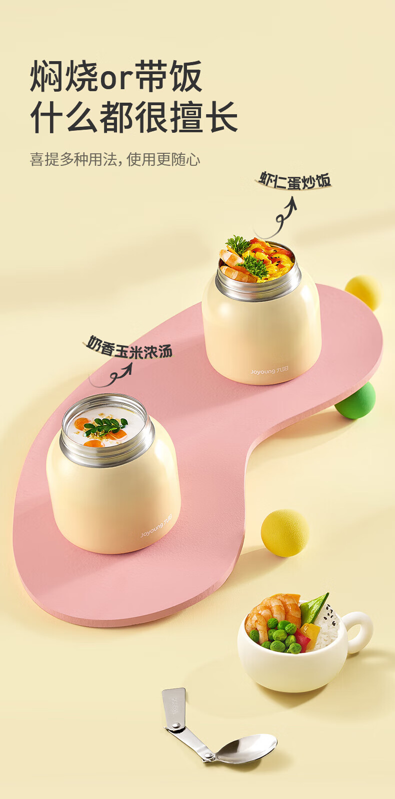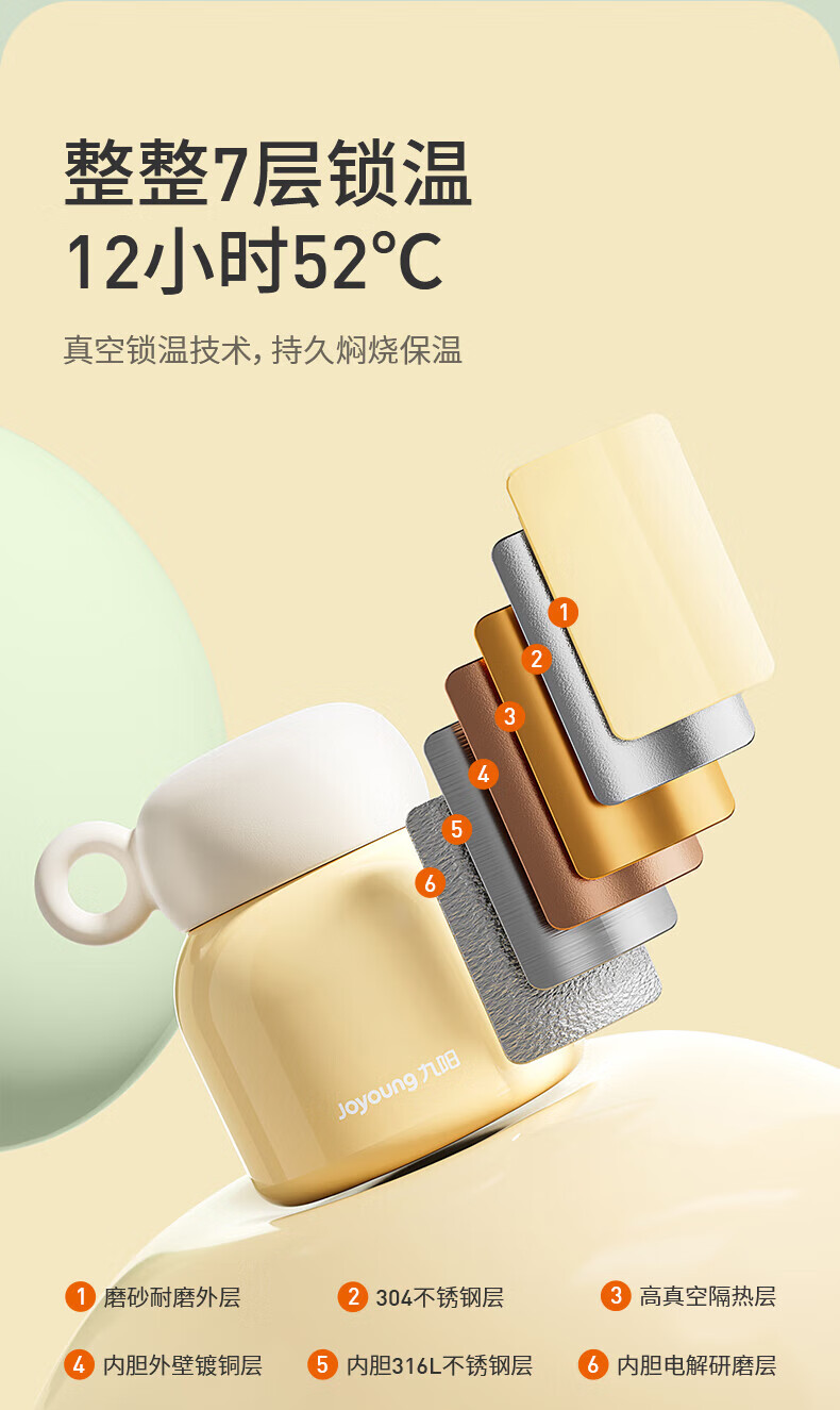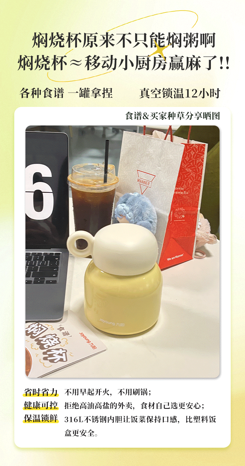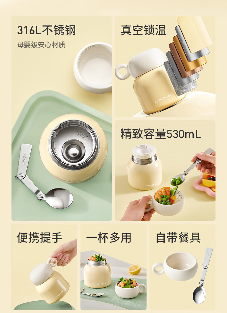 Joyoung stew beaker 316L stainless steel insulated lunch box for men and women students vacuum insulated cup simmering pot 530ml