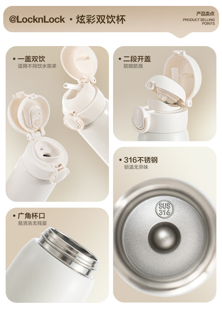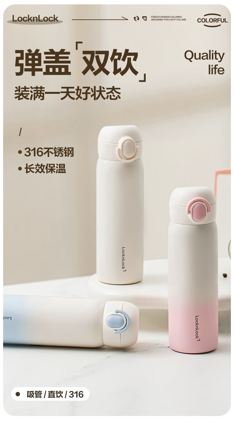 LOCK&LOCK thermos cup for women with good looks 316 straw cup for students portable large capacity water cup coffee cup for men 2025 gift
