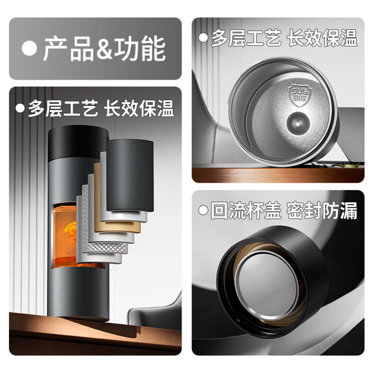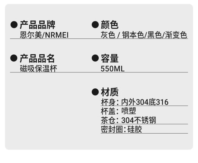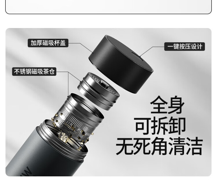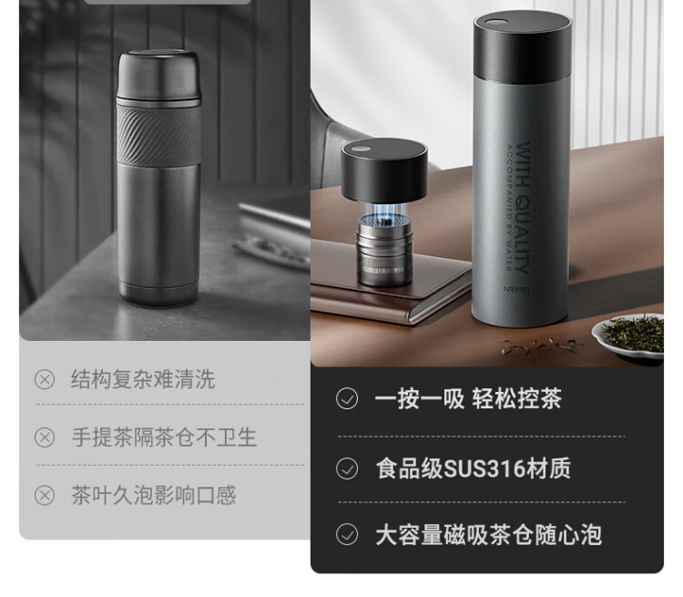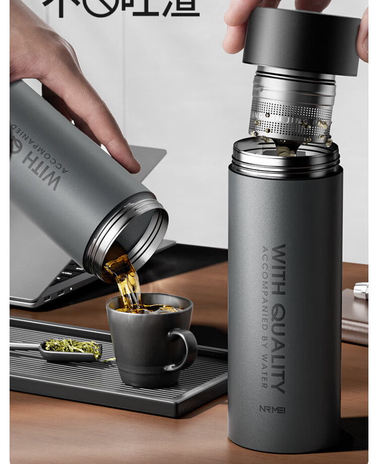 NRMEi insulated cup for men, tea and water separation magnetic elastic tea cup 316 stainless steel portable car magnetic water-absorbing cup