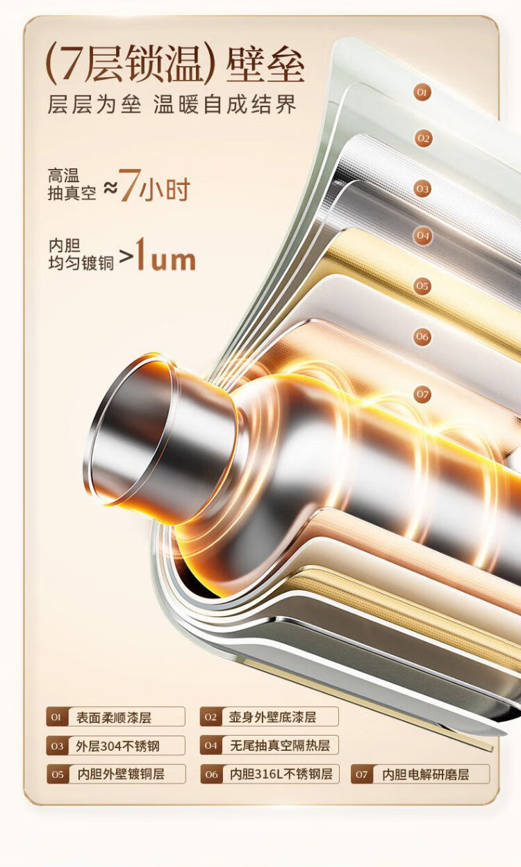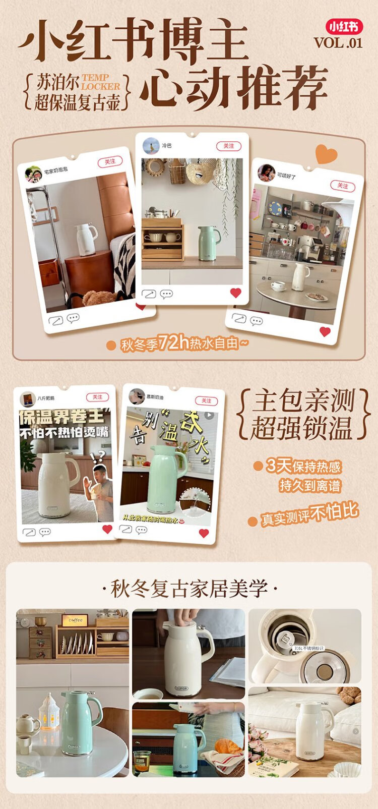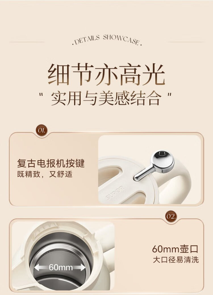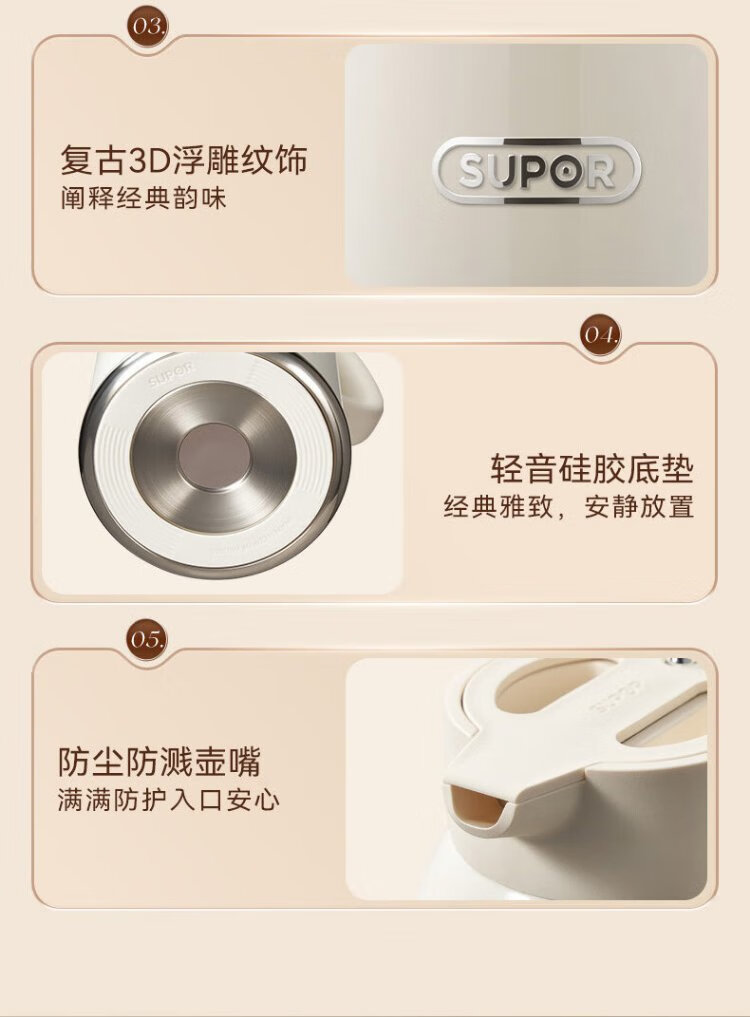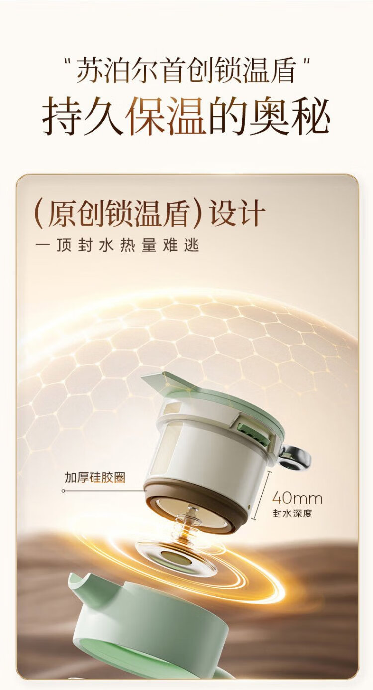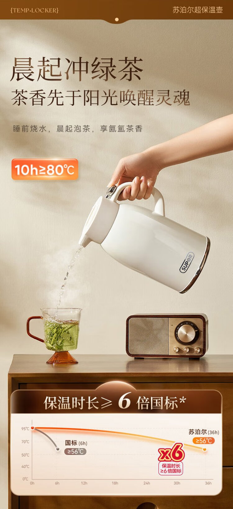 SUPOR thermos kettle 316L stainless steel large capacity household hot water kettle office thermos thermos 2L cream white