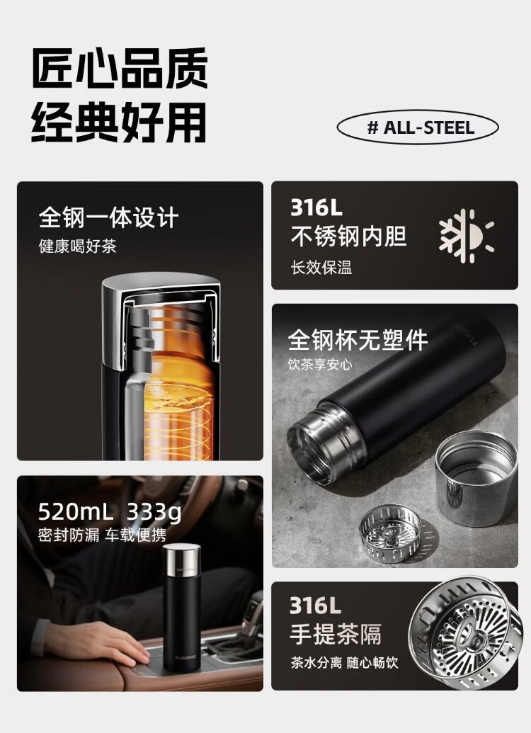 Fuguang Insulated Water Cup Large Capacity Men's and Women's Souvenirs Students Going to School Insulated Stainless Steel Water Cups Teacup Gifts