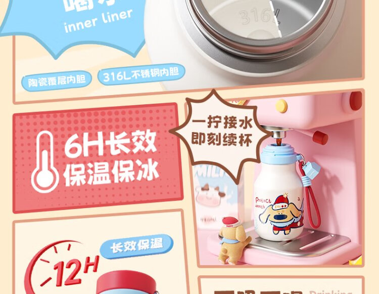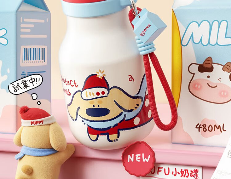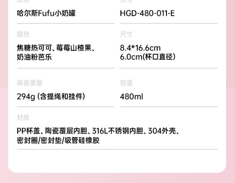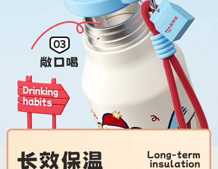 Hals (HAERS) thermos cup student high-looking straw cup accompanying female student portable cup gift new style red 480ML