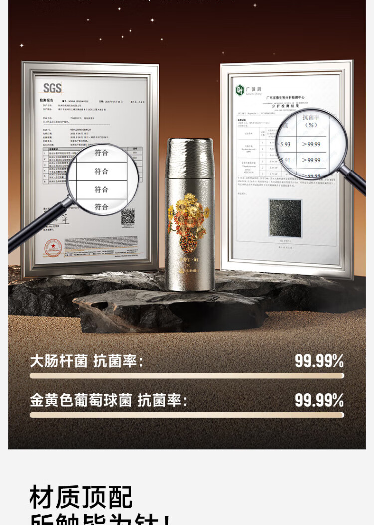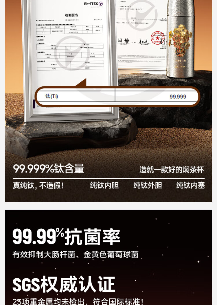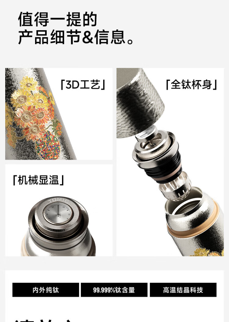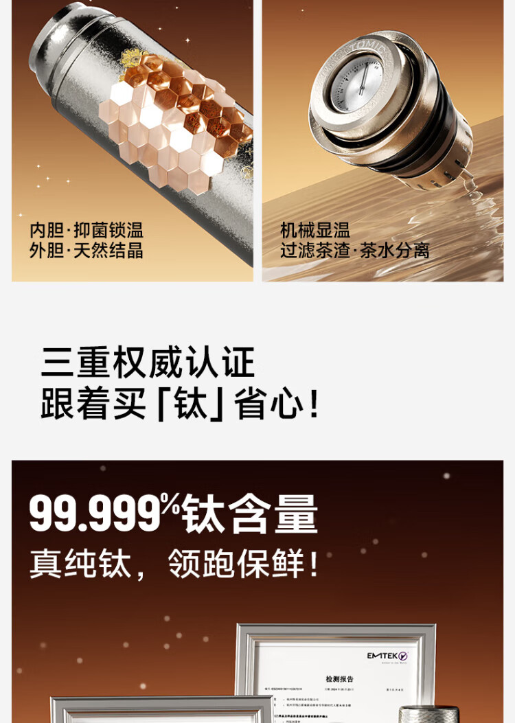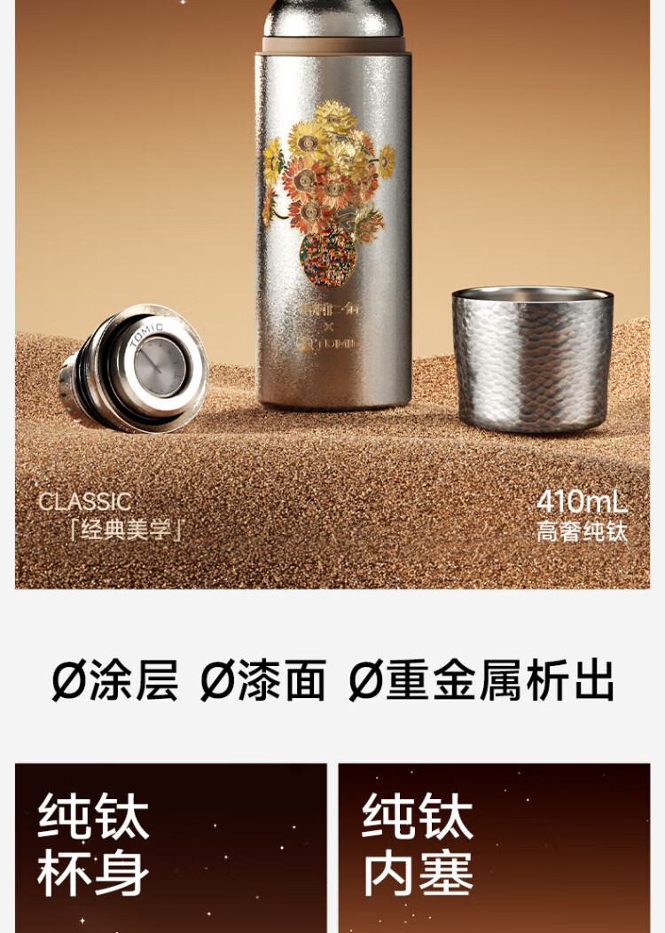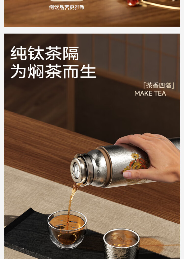 TOMIC Double-layer Pure Titanium Insulated Cup Zhu Bingren Copper Joint Tea Water Separator Tea Cup Water Cup Double Eleven Gift