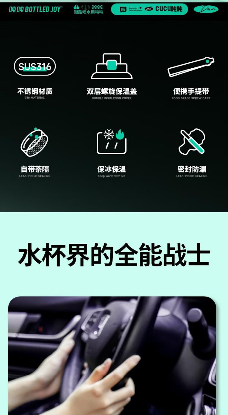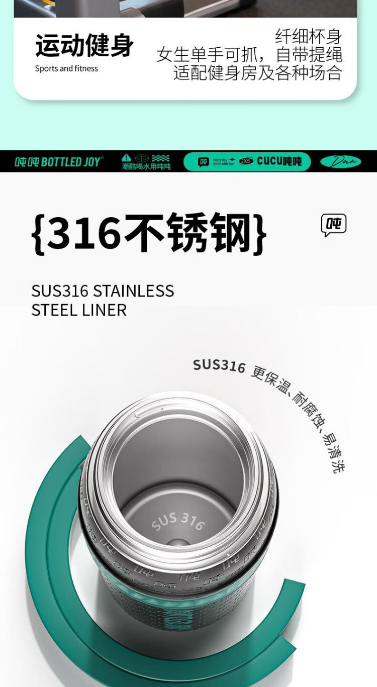Ton-ton thermos cup portable children's large-capacity water cup 316 stainless steel food-grade student tea and water separation men's cup