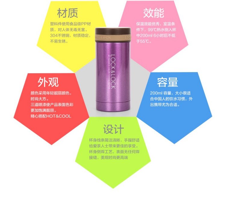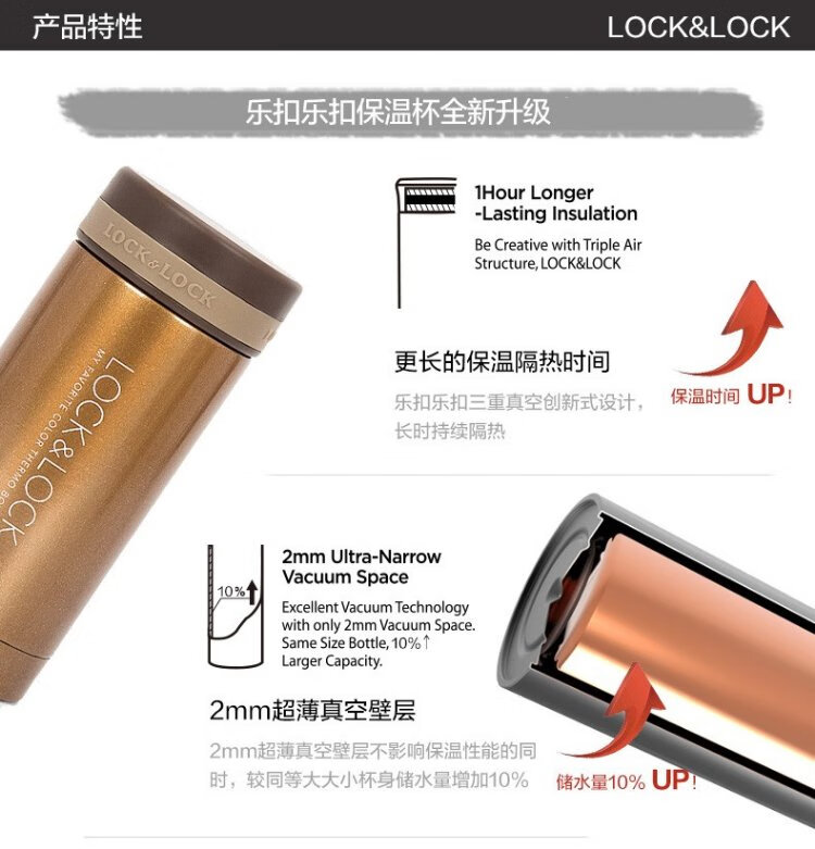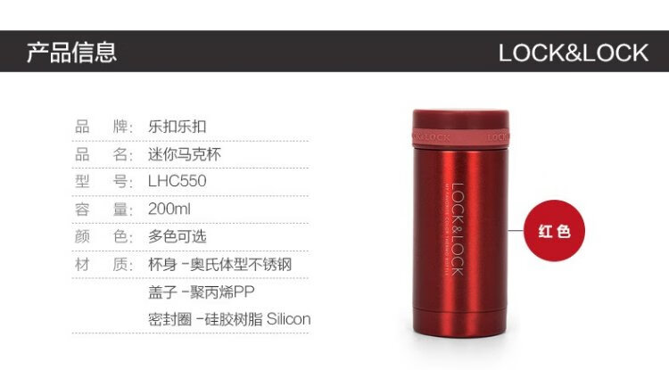 LOCK&LOCK stainless steel slim portable thermos cup tea cup car business cup LHC560 (300ml) red