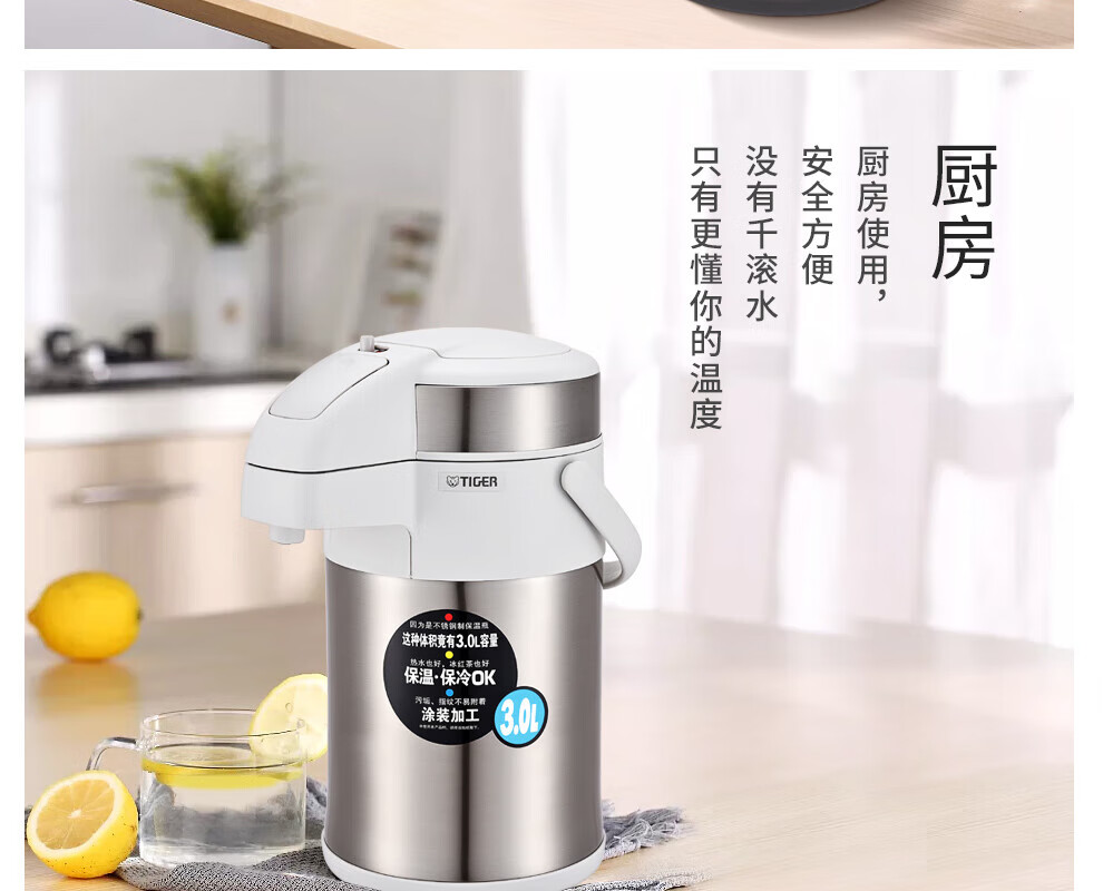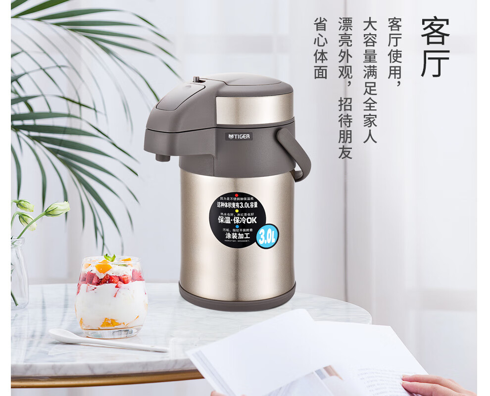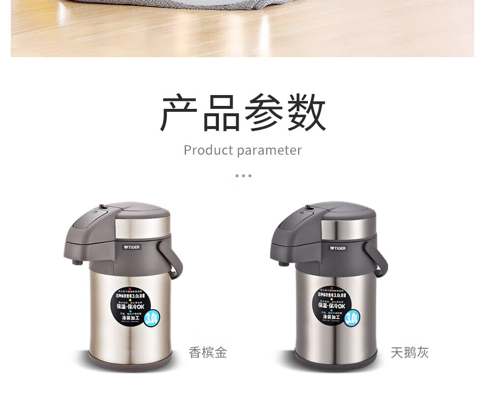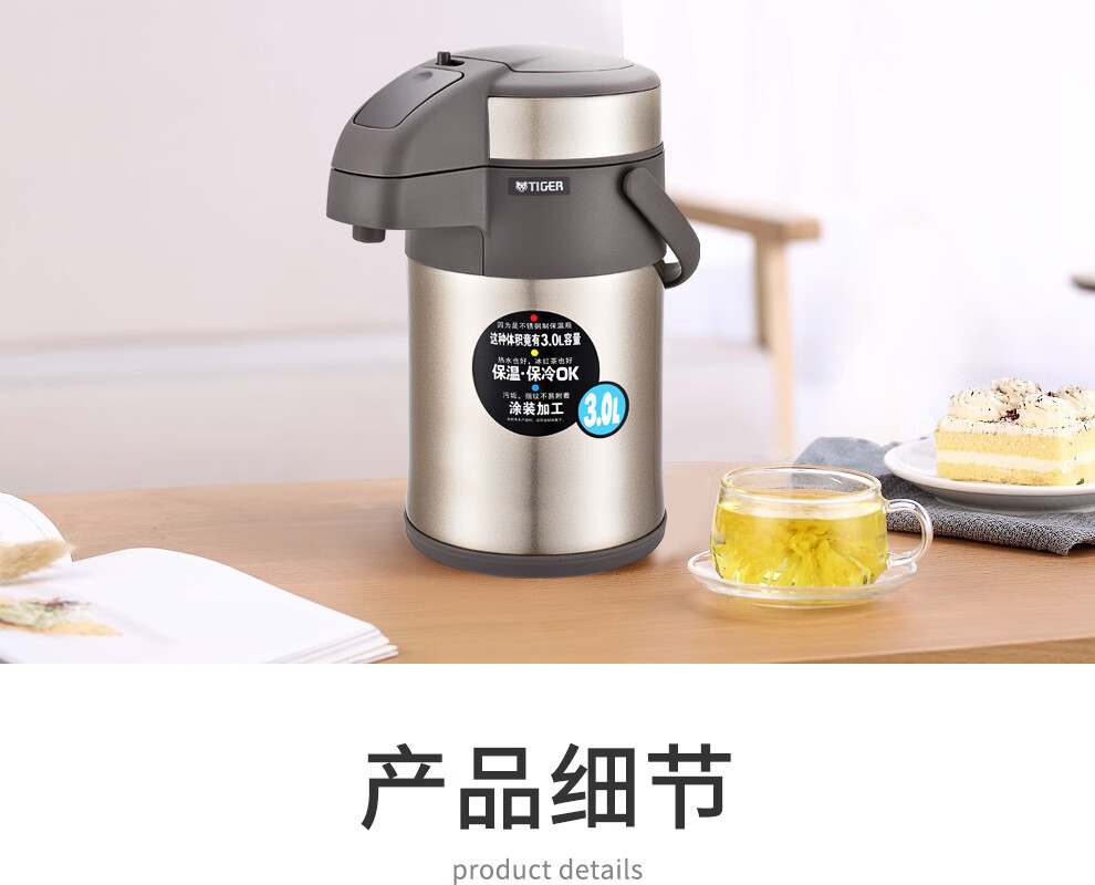 TIGER stainless steel thermos kettle air pressure thermos MAA-A30C-N champagne gold 3 liters