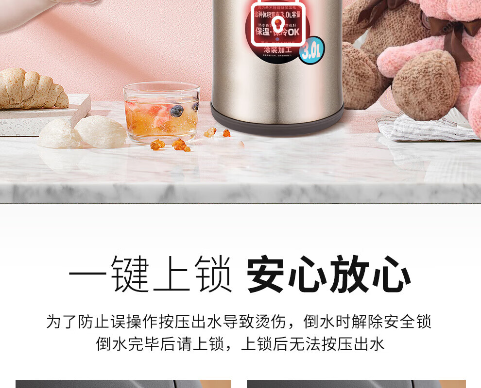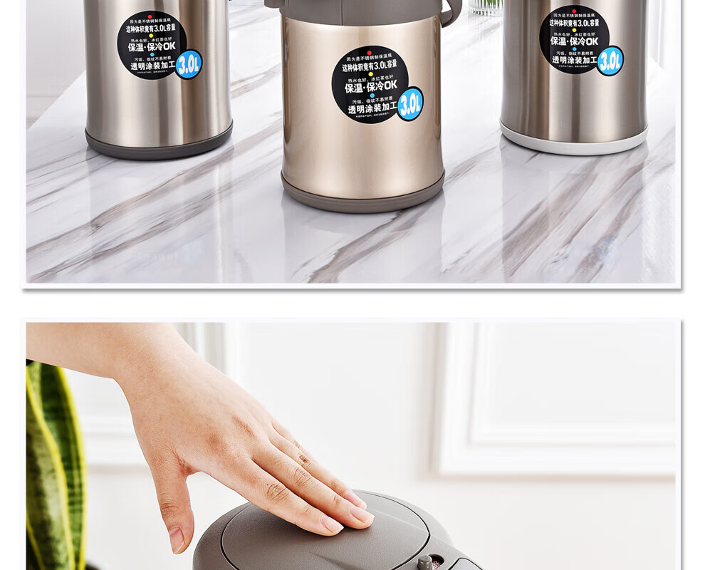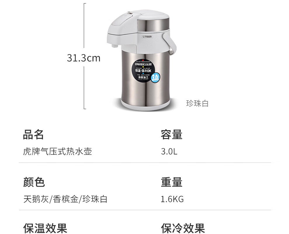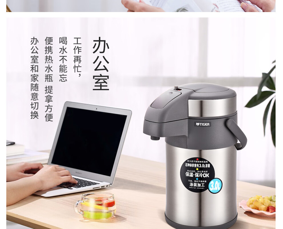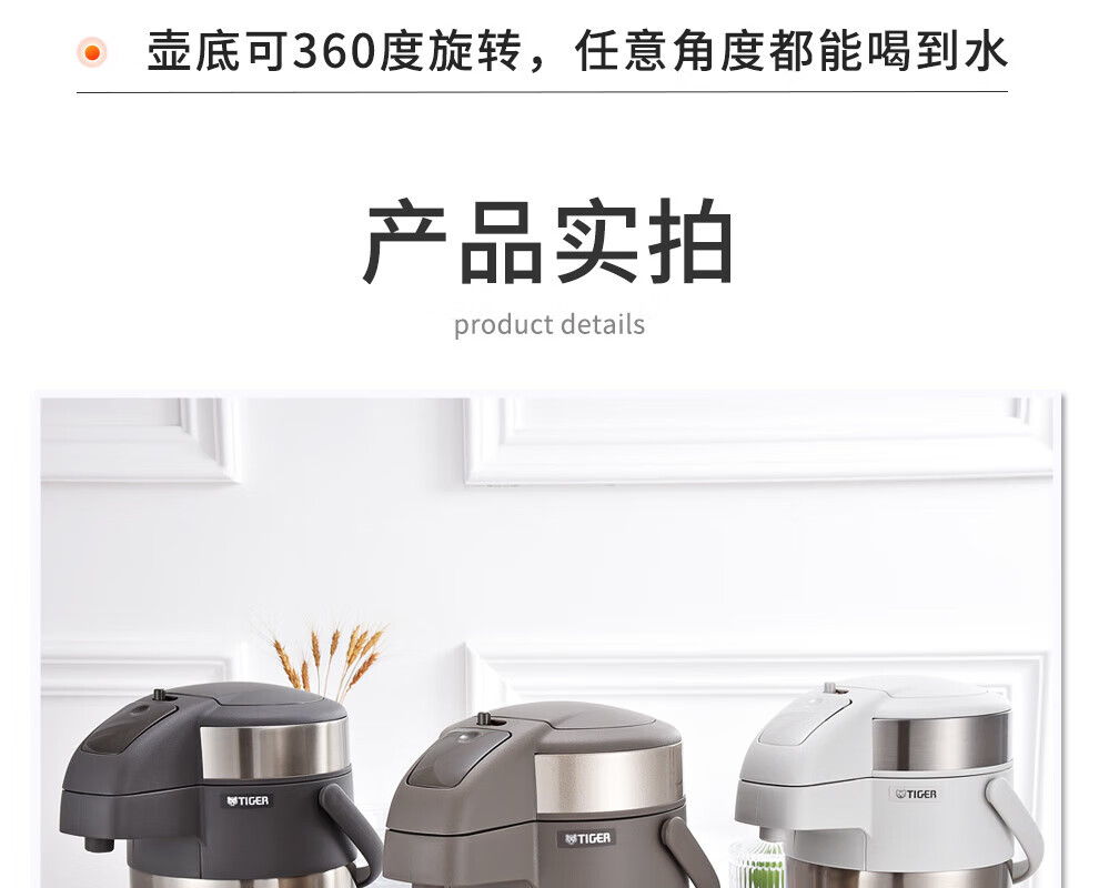 TIGER stainless steel thermos kettle air pressure thermos MAA-A30C-N champagne gold 3 liters