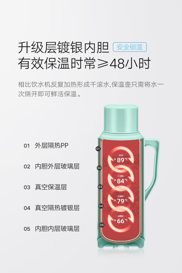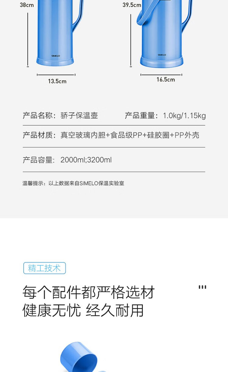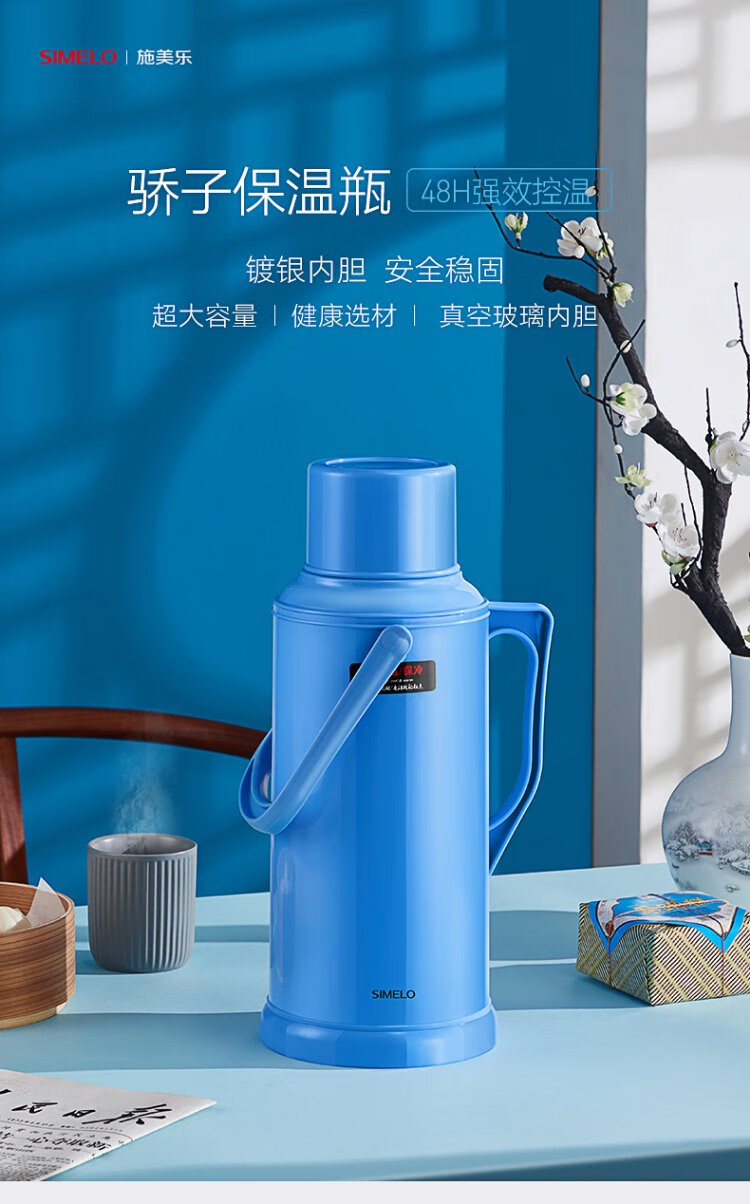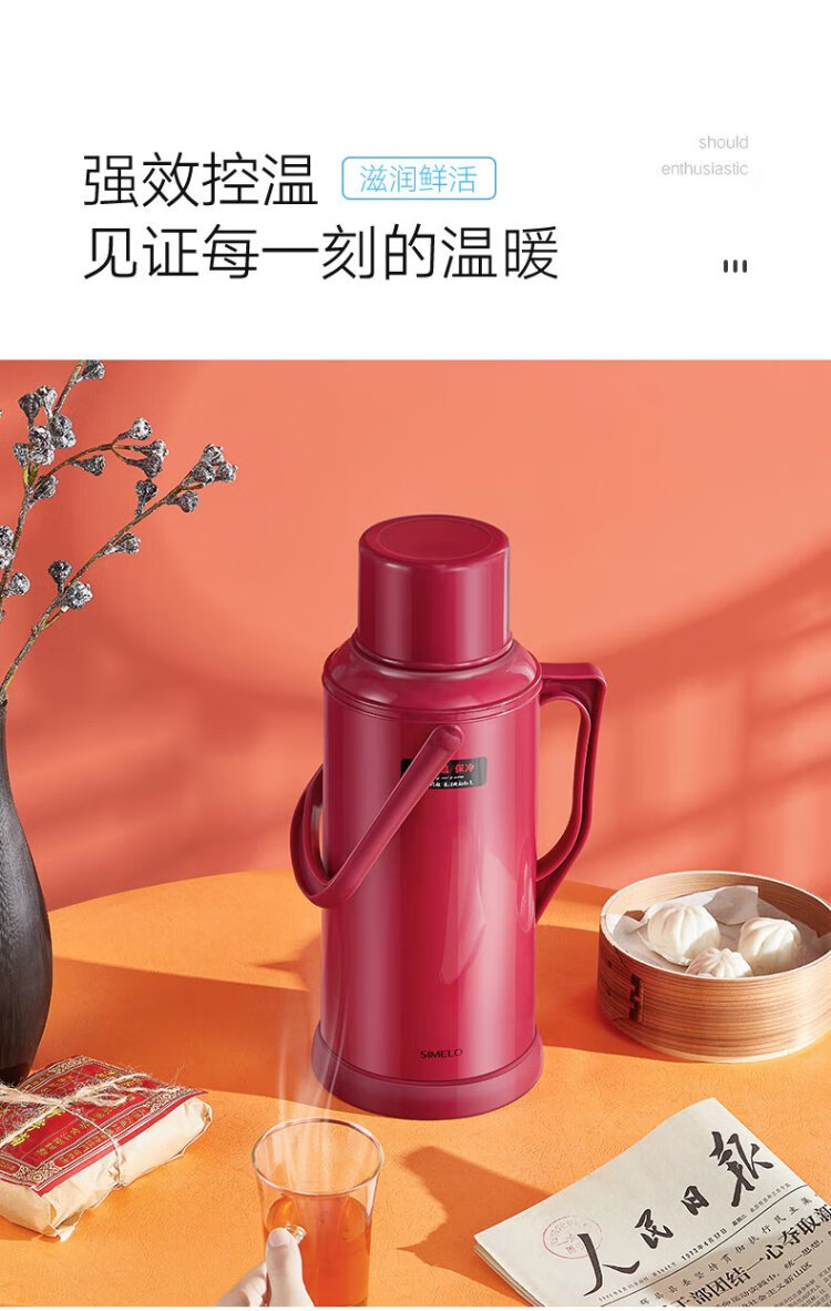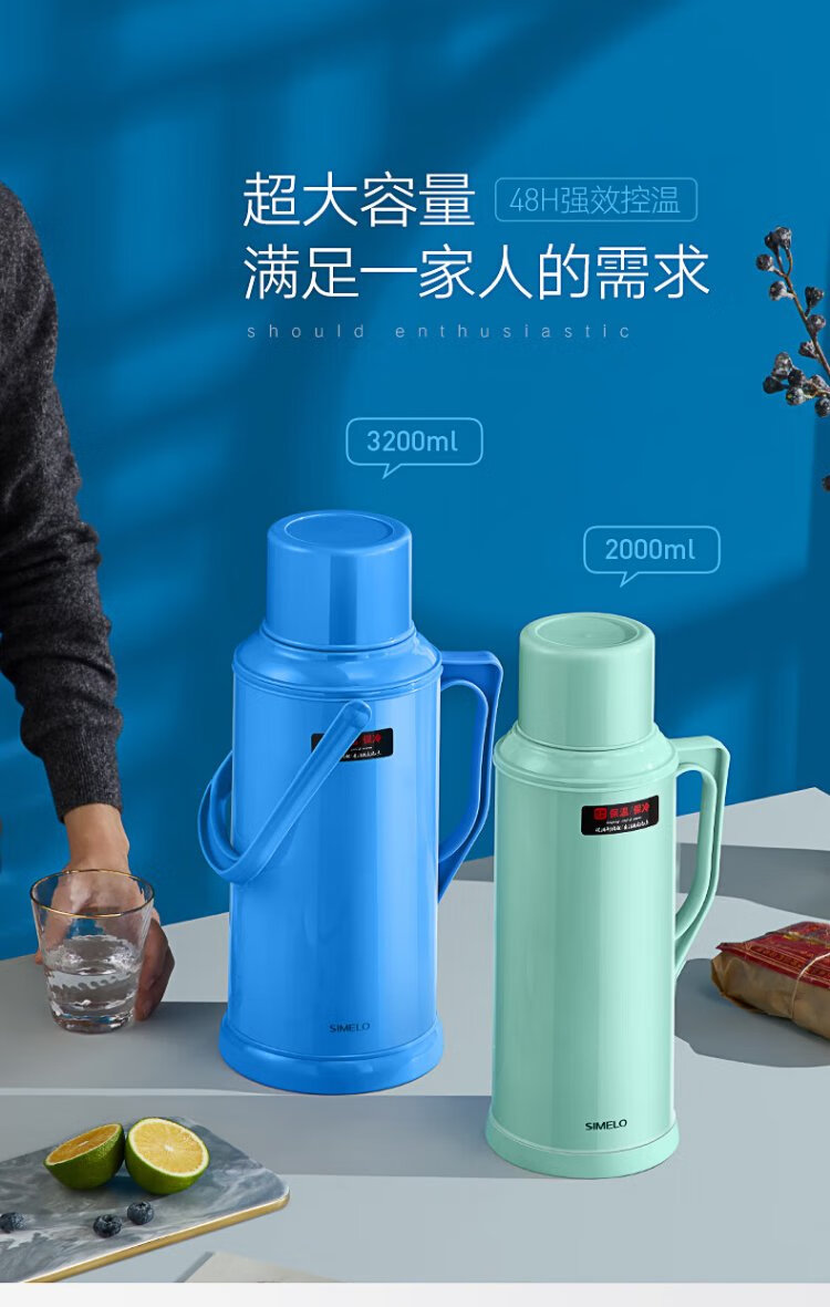SIMELO thermos kettle household large-capacity glass liner hot water kettle student dormitory heating kettle boiling water bottle thermos 3.2L