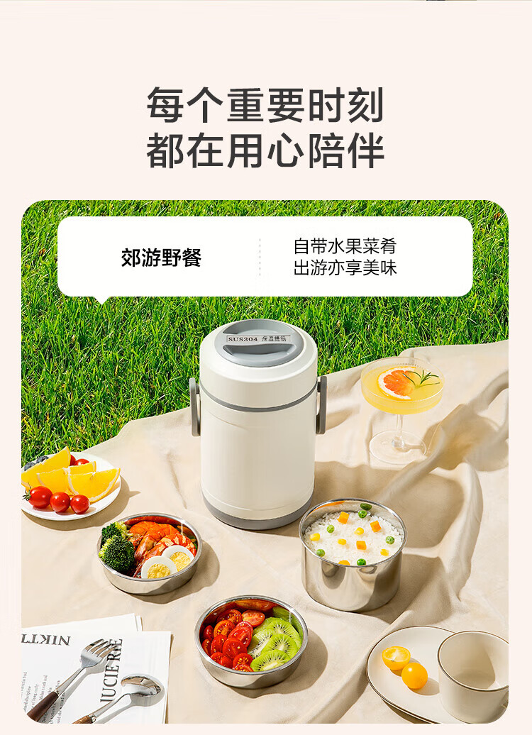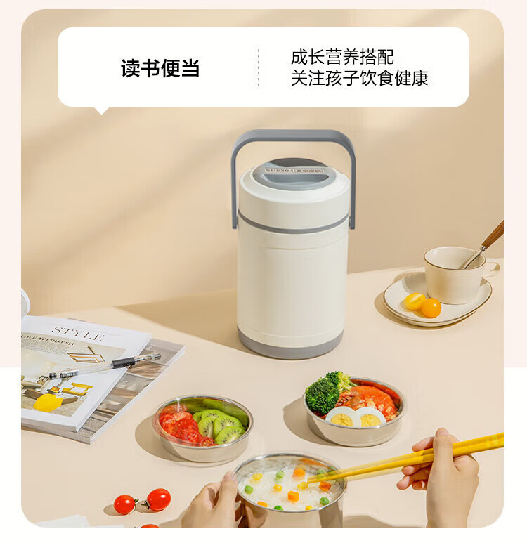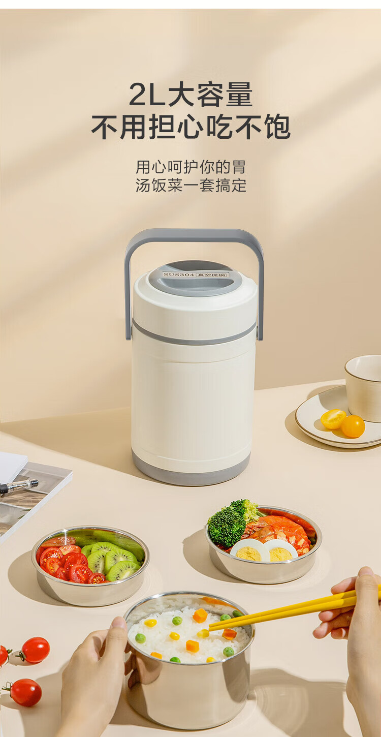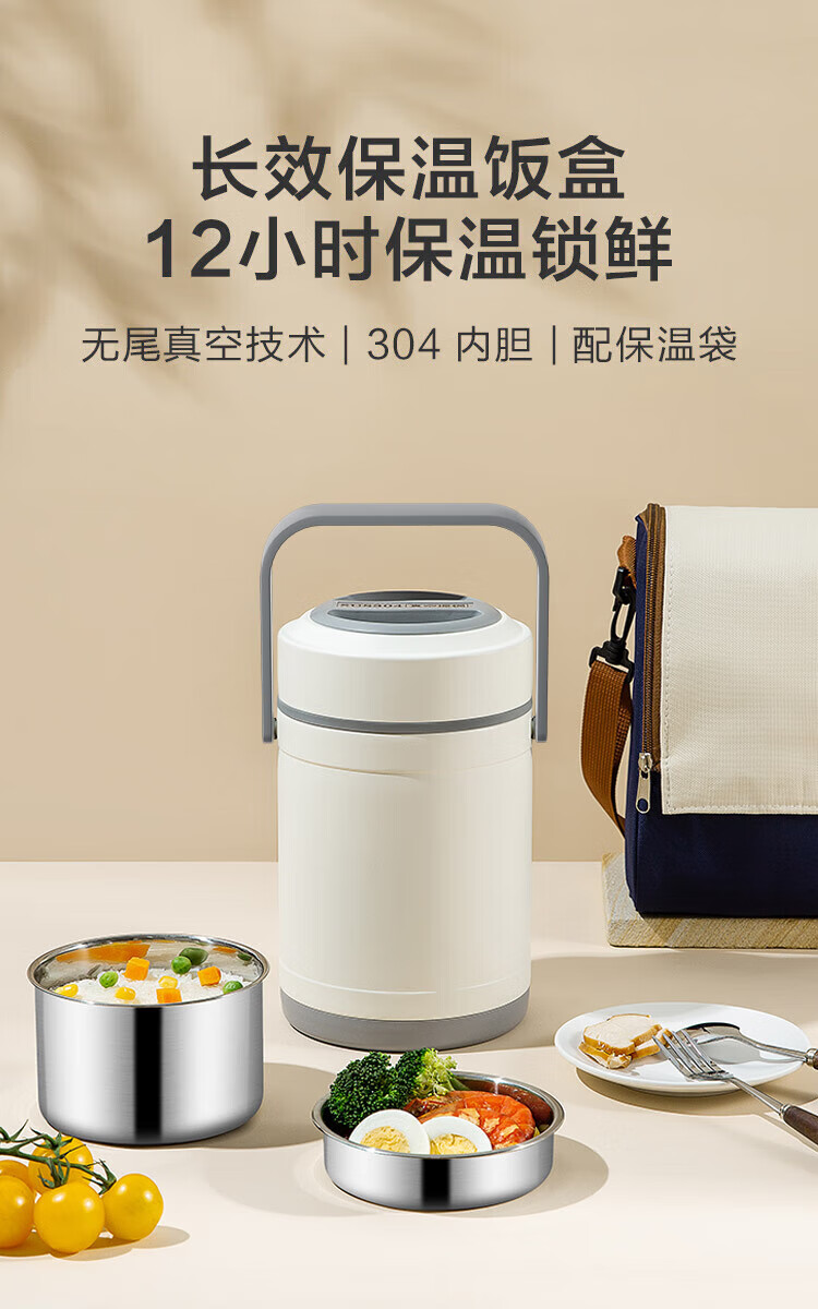Made in Tokyo, insulated lunch box, insulated bucket, office worker, 304 stainless steel, primary school student lunch box with lid, three layers, 2L, with insulated bag