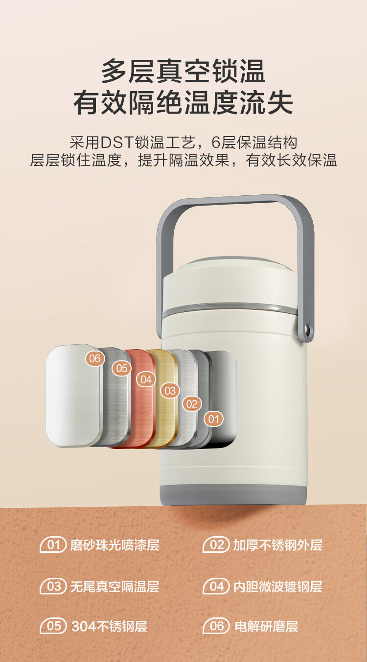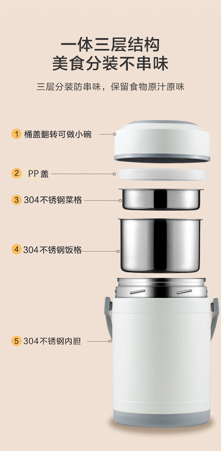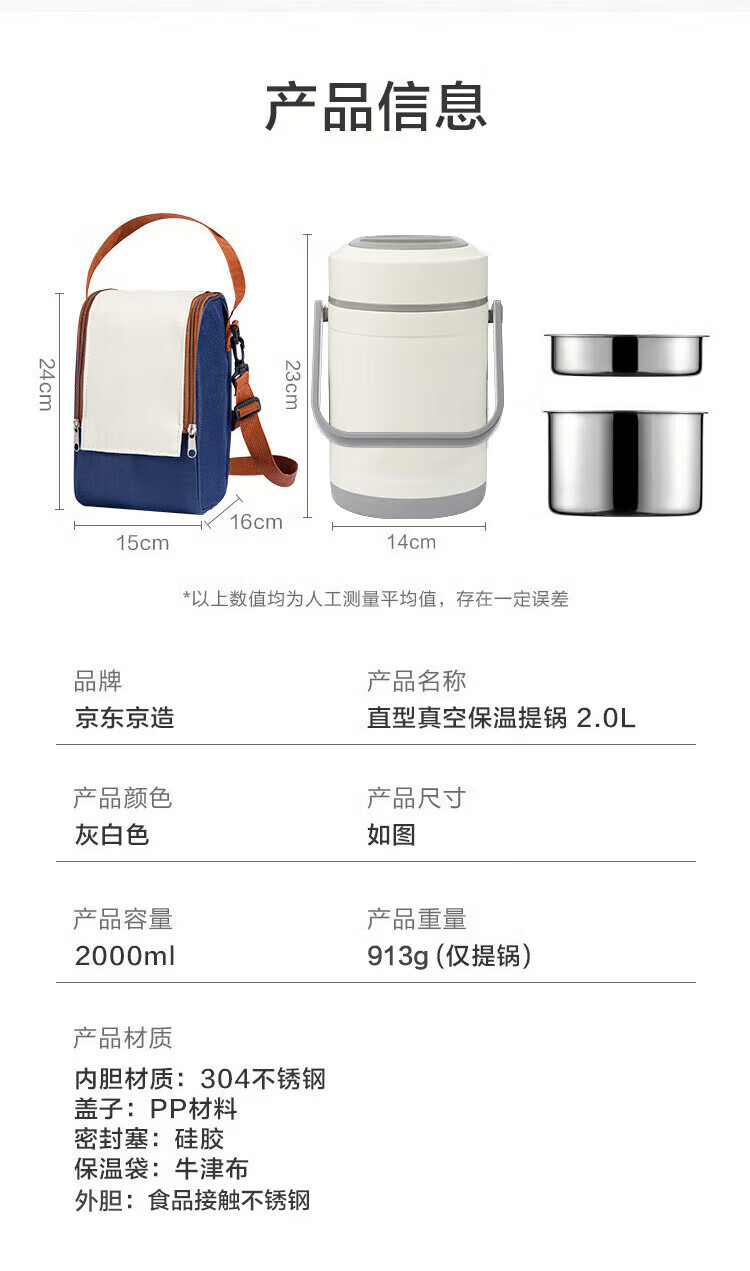 Made in Tokyo, insulated lunch box, insulated bucket, office worker, 304 stainless steel, primary school student lunch box with lid, three layers, 2L, with insulated bag