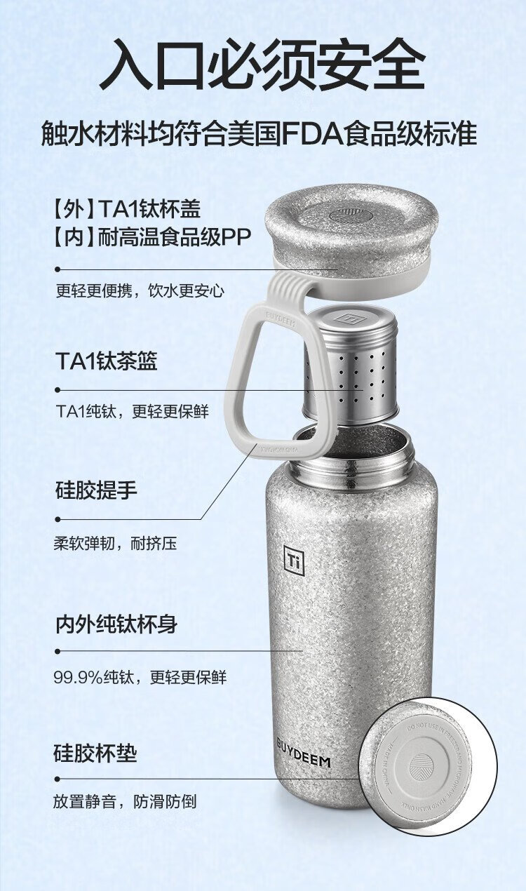 Buydeem Titanium Tea Thermos Cup Tea Water Separation High-value Antibacterial Preservation Lightweight Water Cup Business Office Portable Gift