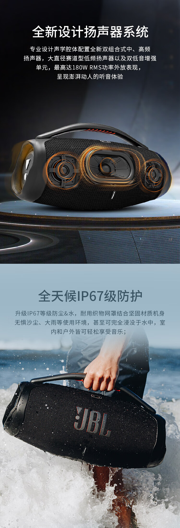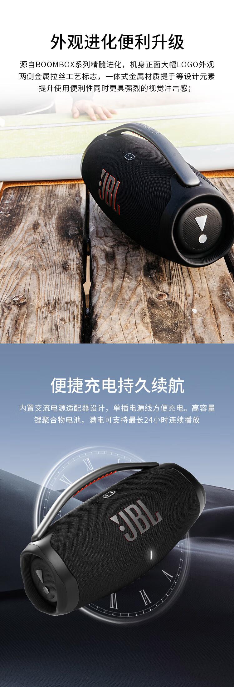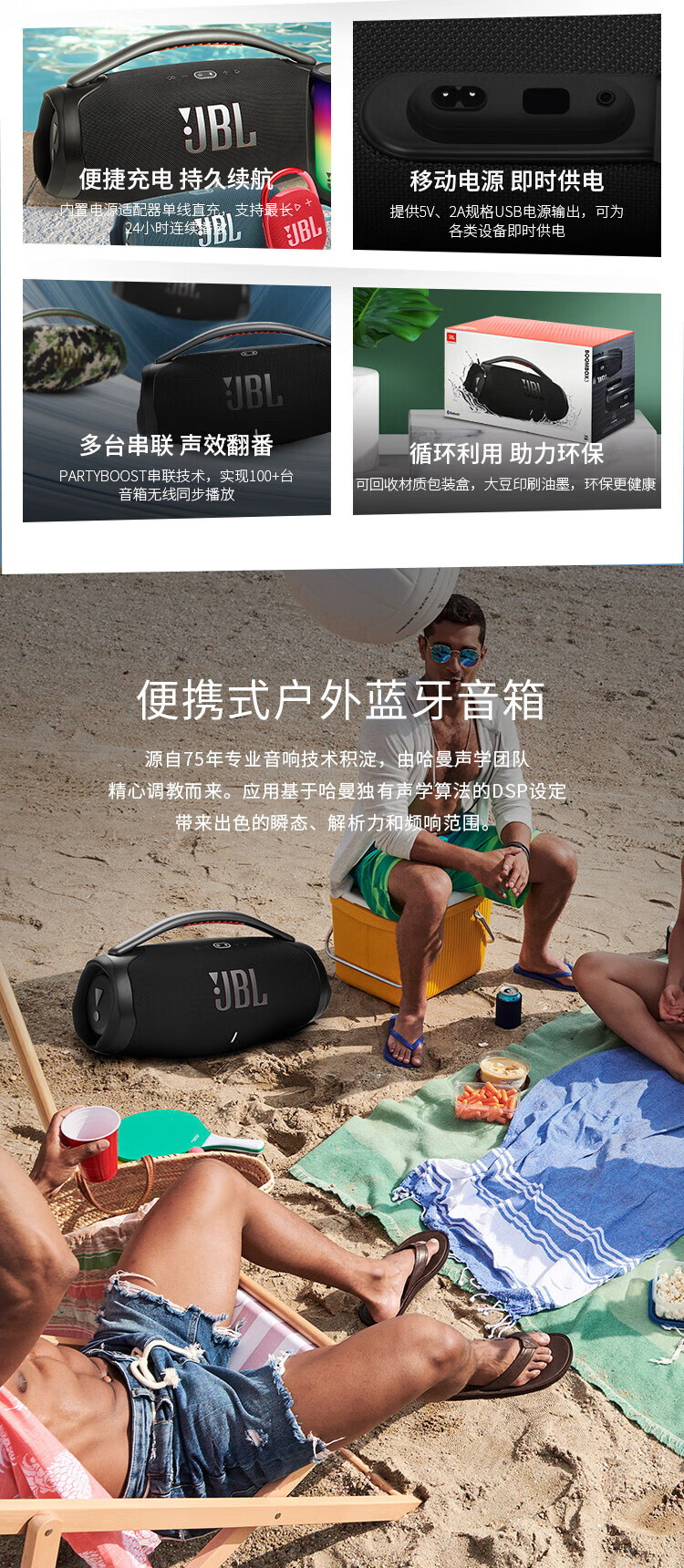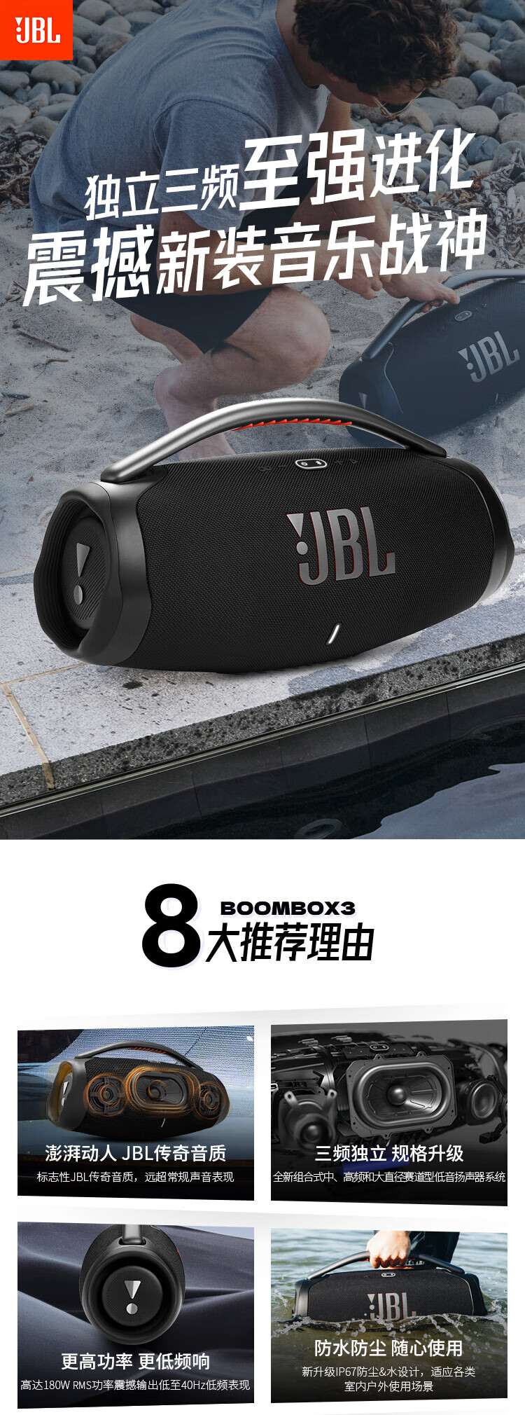 JBL BOOMBOX3 音乐战神三代便携蓝牙音箱 礼物 户外音箱 防尘防水 家庭影院音响 黑色