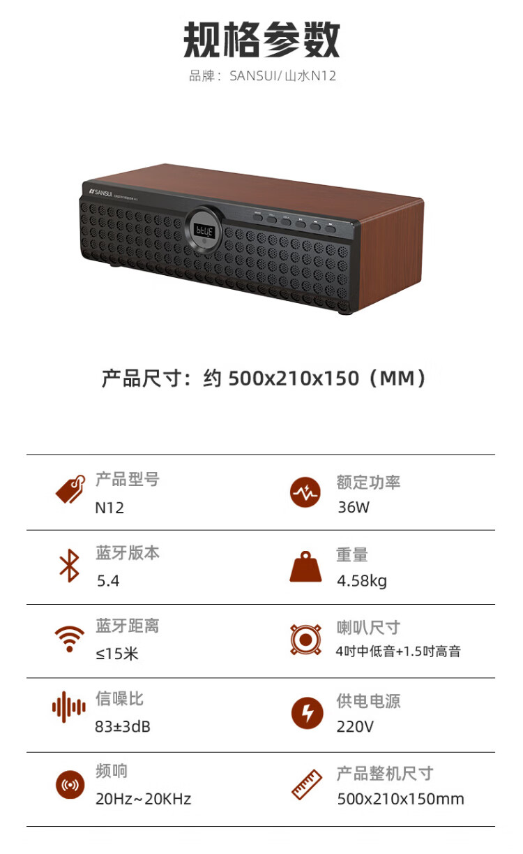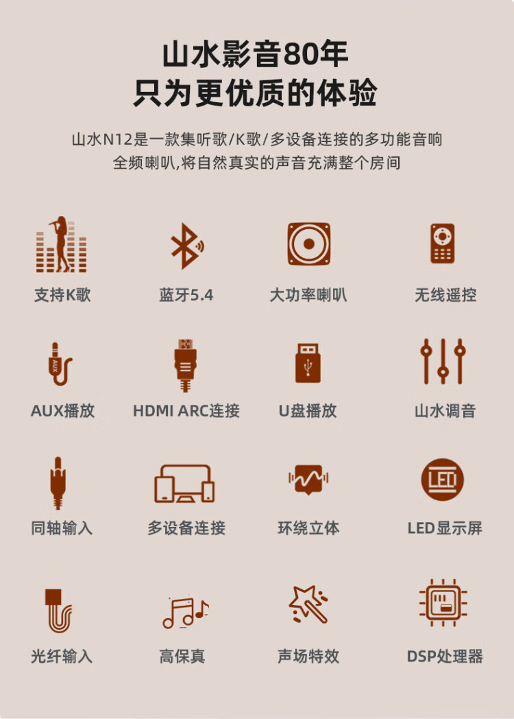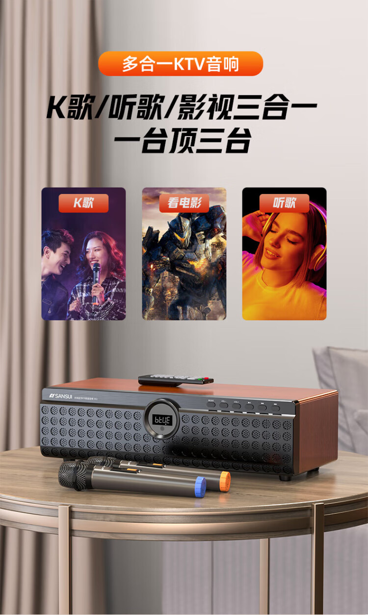 SANSUI N12 home KTV audio set home karaoke audio karaoke all-in-one machine high-power desktop TV HiFi Bluetooth speaker subwoofer living room music player