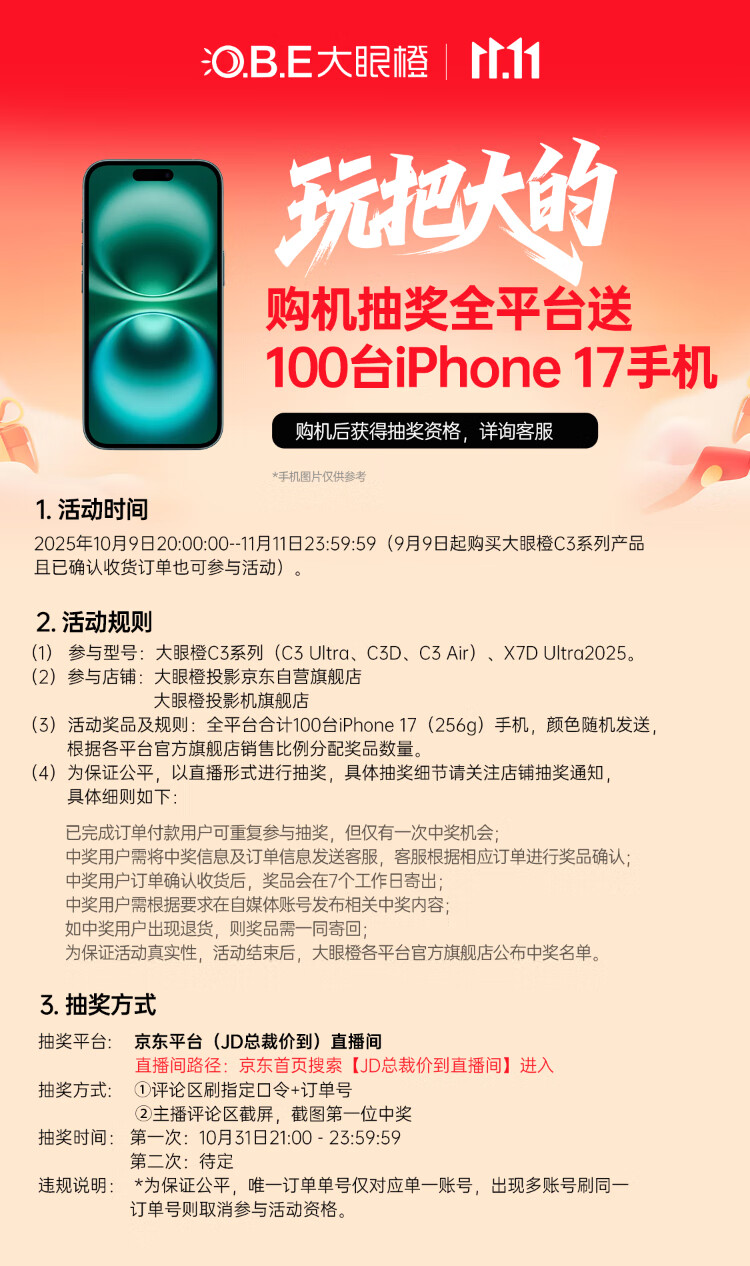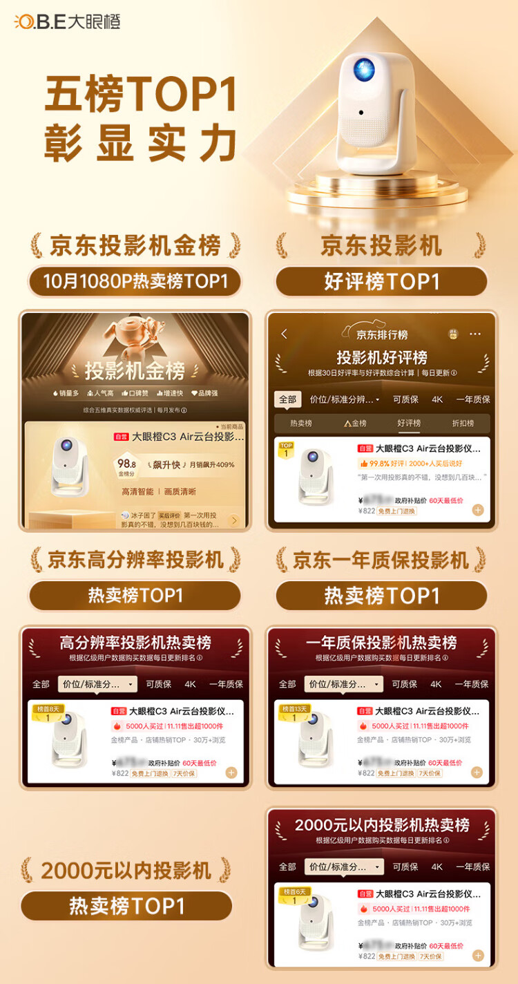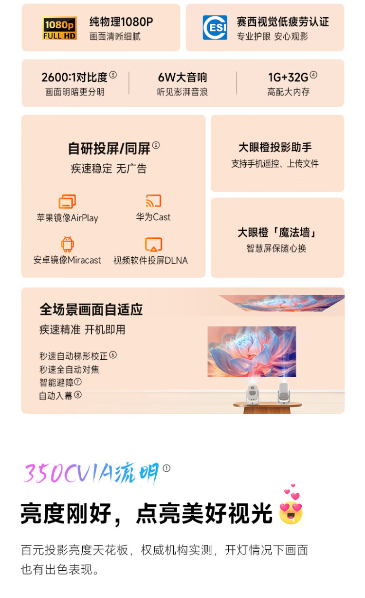 Big Eye Orange C3 Air PTZ Projector Home True 1080P Portable Projector HD Smart Home Bedroom Theater National Subsidy (350CVIA Integrated Night Light)