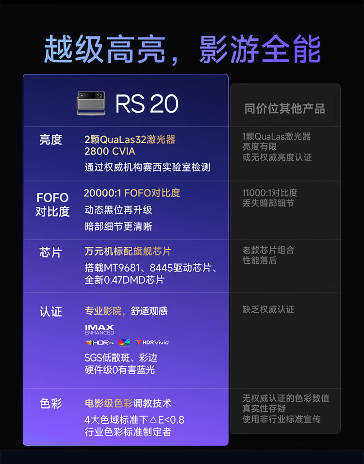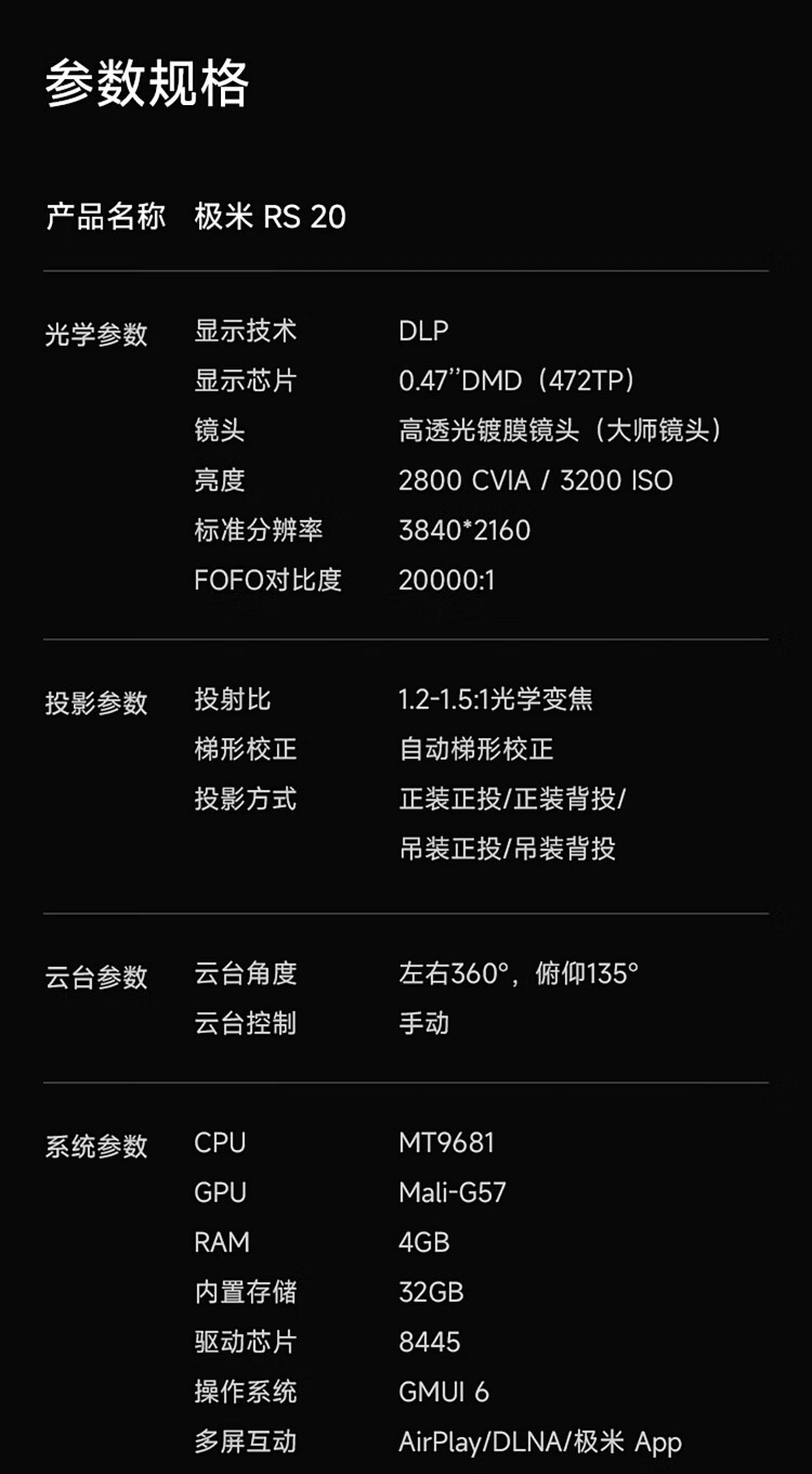 XGIMI RS 20 gaming set, versatile video game, ultra-bright three-color laser zoom projection, 2800 CVIA smart pan/tilt, 4K smart home theater, state subsidy