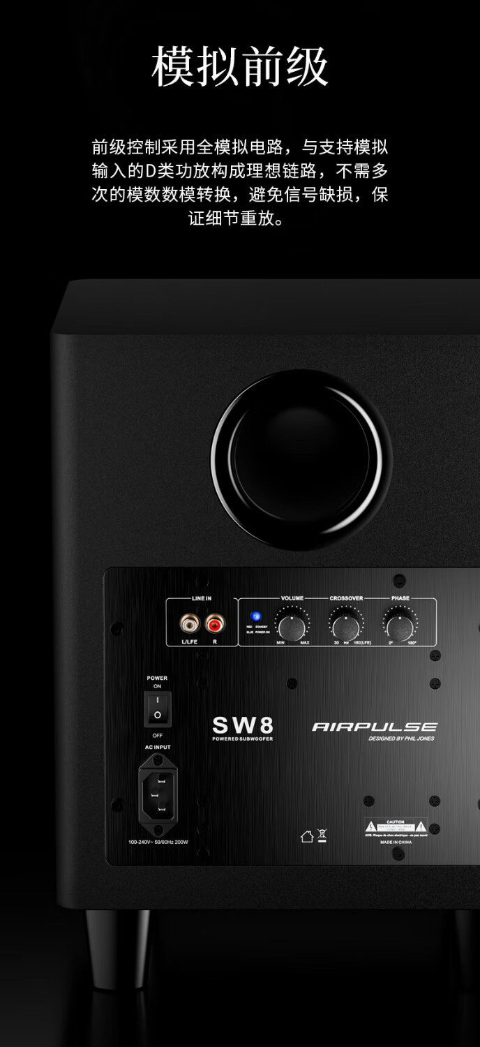Edifier SW8 Aktiv-Subwoofer, Hochleistungs-Lautsprecher-Subwoofer, professioneller Heim-KTV-Theater, High-Fidelity-Audio-Subwoofer, 8-Zoll-Subwoofer, Schwarz, offizieller Standard