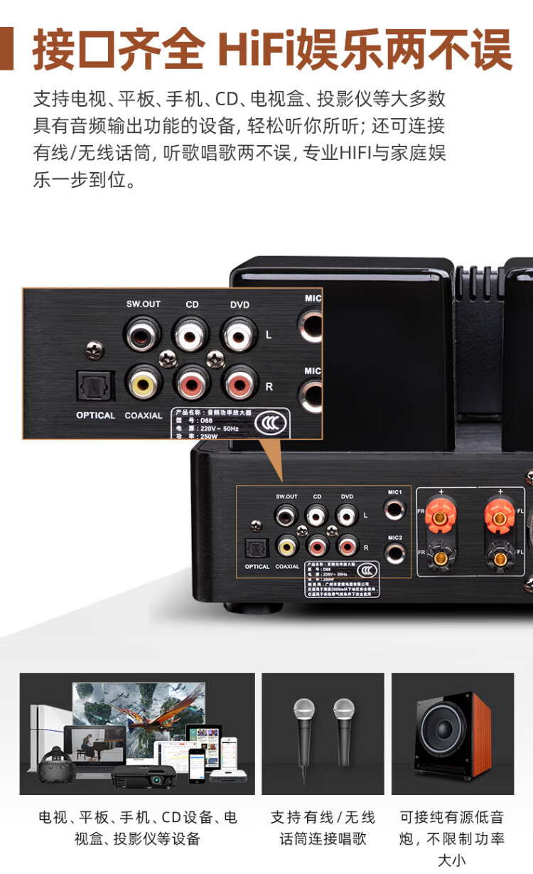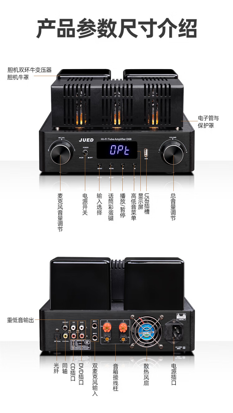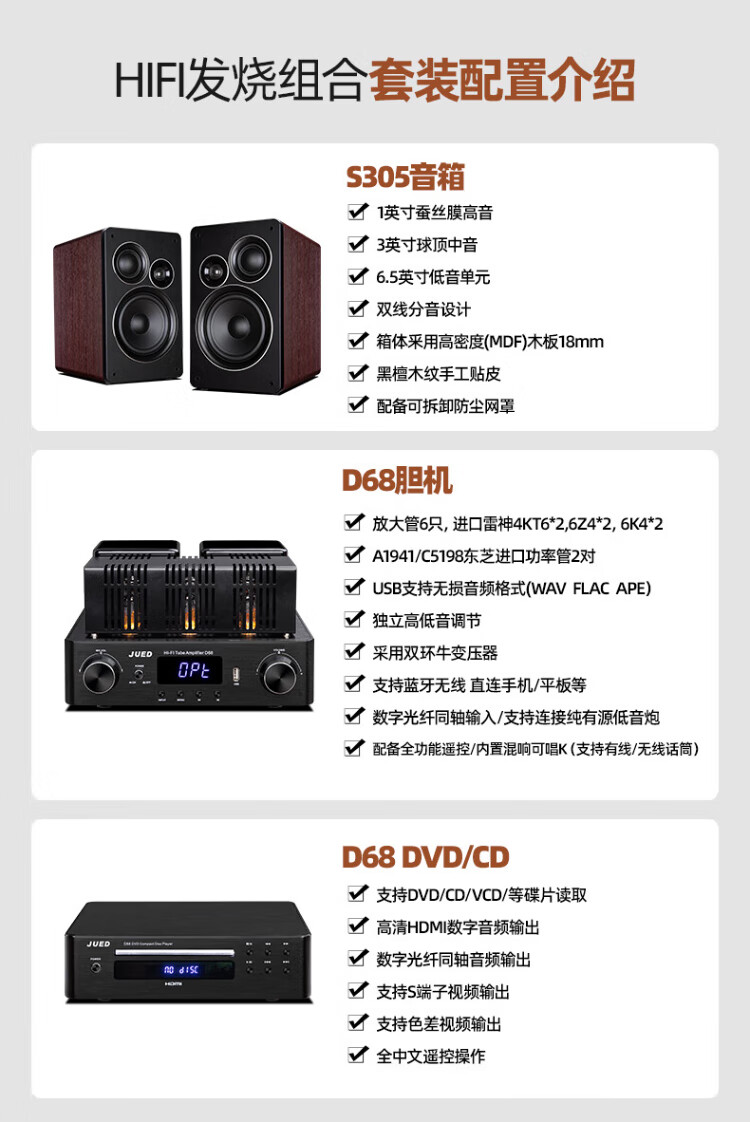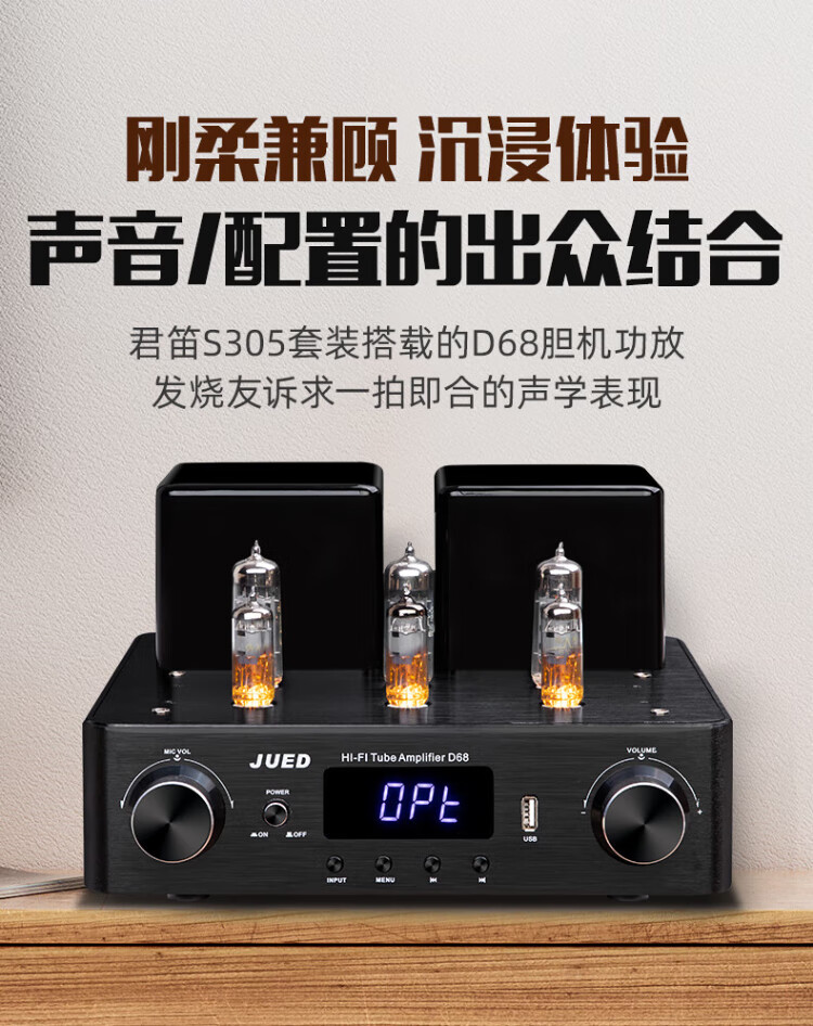 Jundi S305 fever amplifier audio set 6.5-inch hifi audio Bluetooth lossless bookshelf speaker amplifier home living room desktop desktop combination audio S305 speaker + amplifier + DVD player set