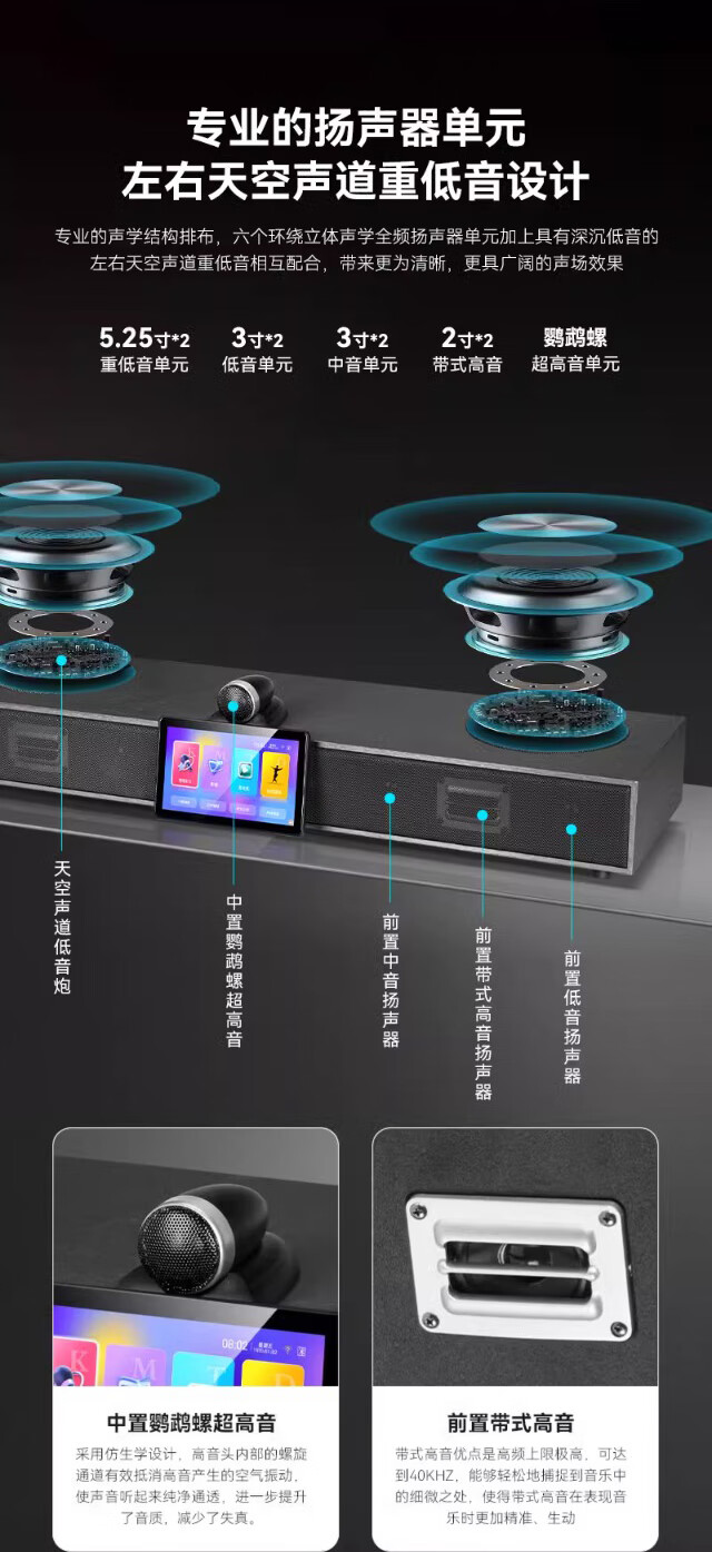HYUNDAIQ5Plus Heim-KTV-Audioset, Heim-Wohnzimmer-TV-Karaoke-Karaoke-Maschine, All-in-One-Massivholz-Bluetooth-Heimkino, Echo-Wand-Subwoofer-Lautsprecher, Voice-Karaoke, verbesserte Version – zwei 8-Zoll-Subwoofer + zwei kabellose Mikrofone