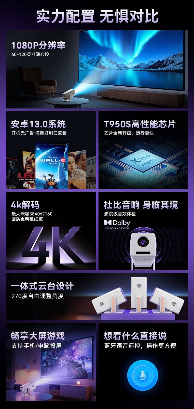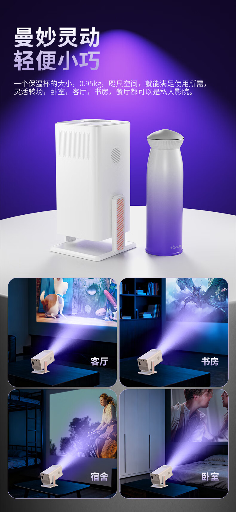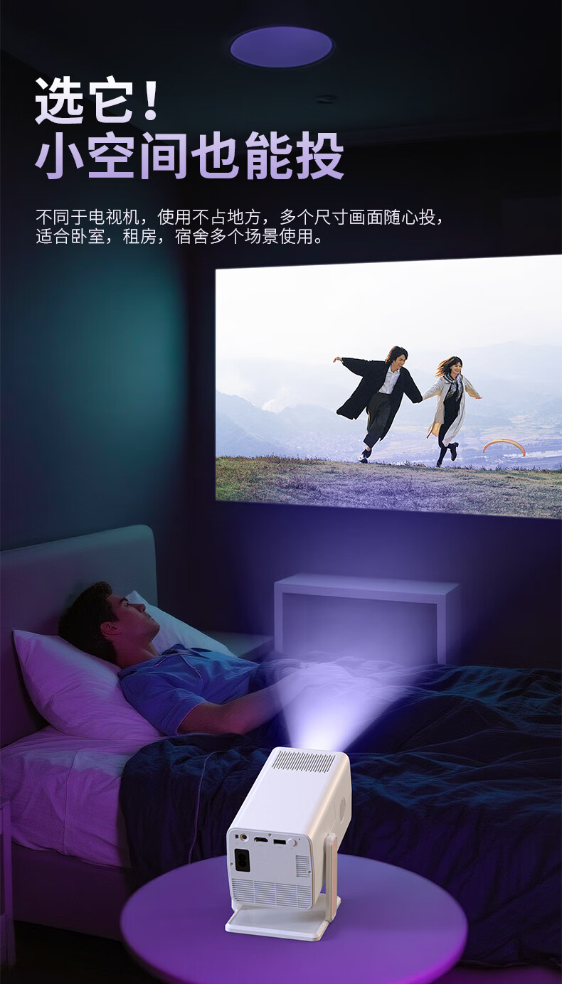 多博士投影仪家用高清白墙直投小型便携4K投影机手机投屏高清云台投影仪租屋客厅卧室家庭影院 黑色【手动调焦】4k解码/白墙直投/可投天花板
