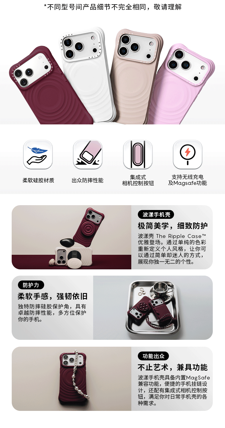 CASETIFY Solid Color Wave Phone Case MagSafe Compatible Silicone Phone Case Suitable for Apple iPhone17/16/15 Air/Plus/Pro/Max Phone Protective Case White Magsafe iPhone 17 Pro