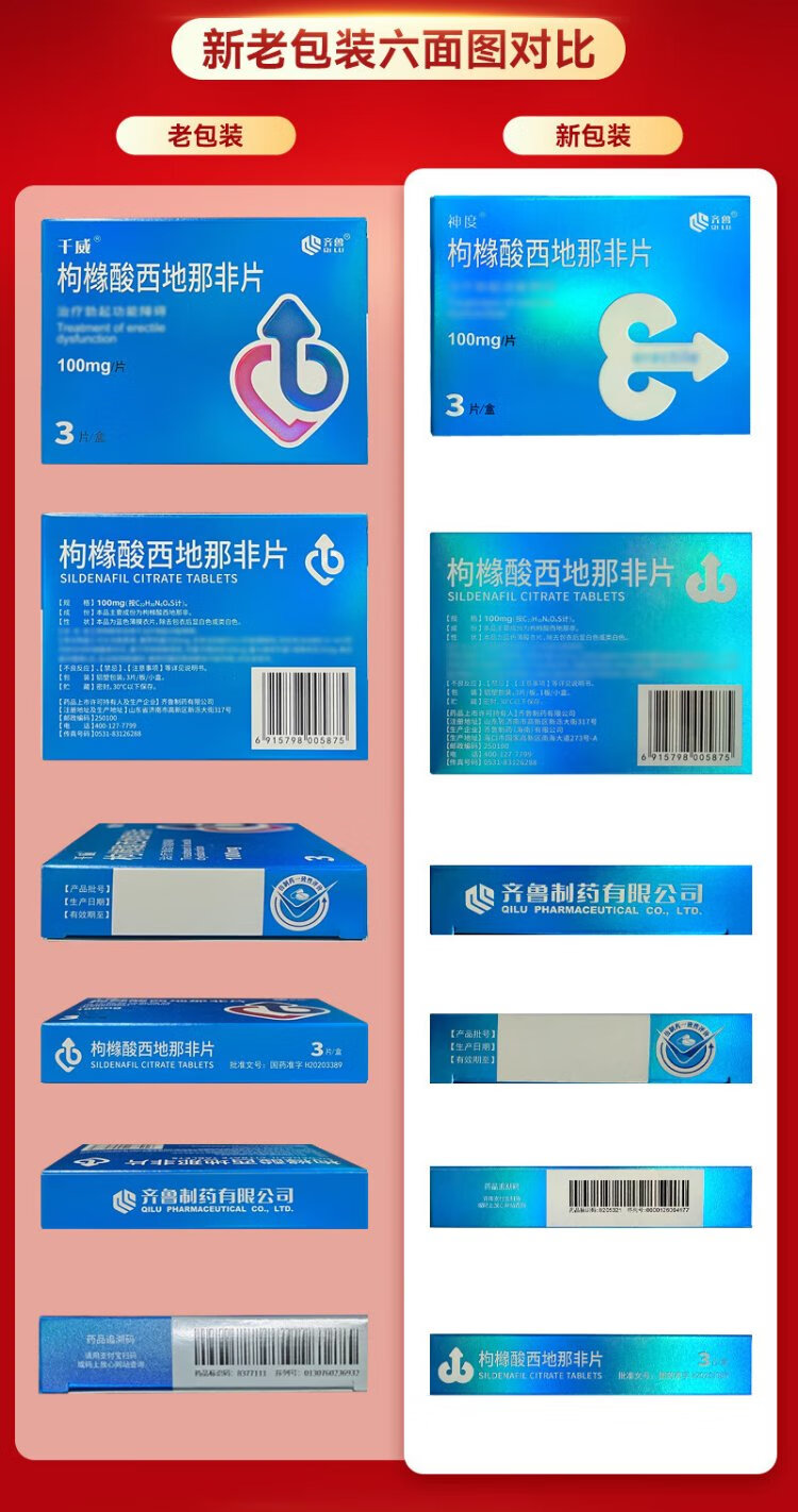 Shendu Sildenafil Citrate Tablets 100mg*3 tablets Qilu andrology medicine small blue tablets