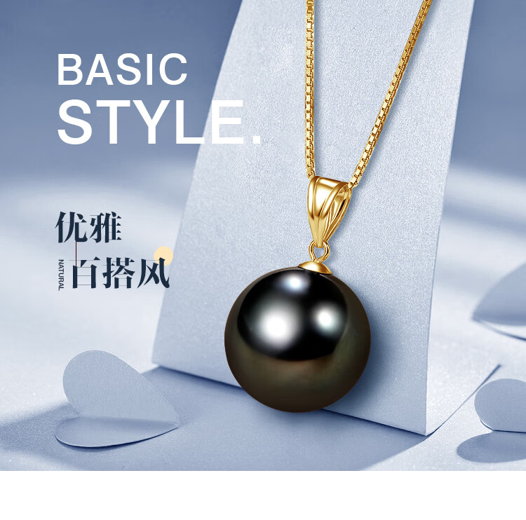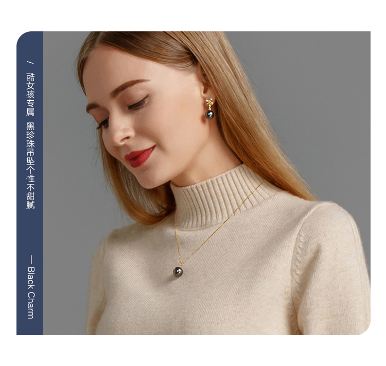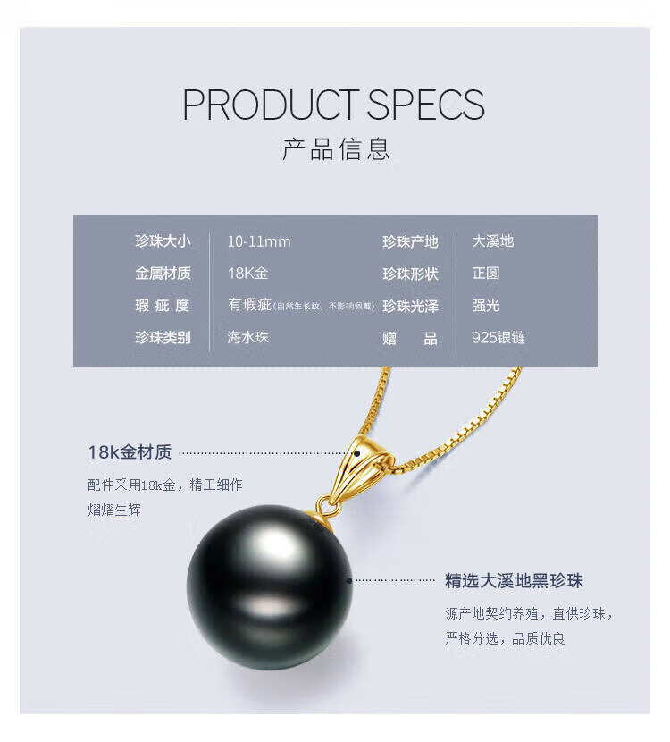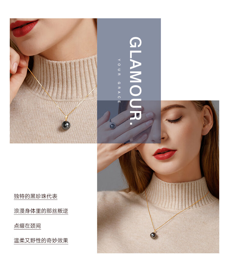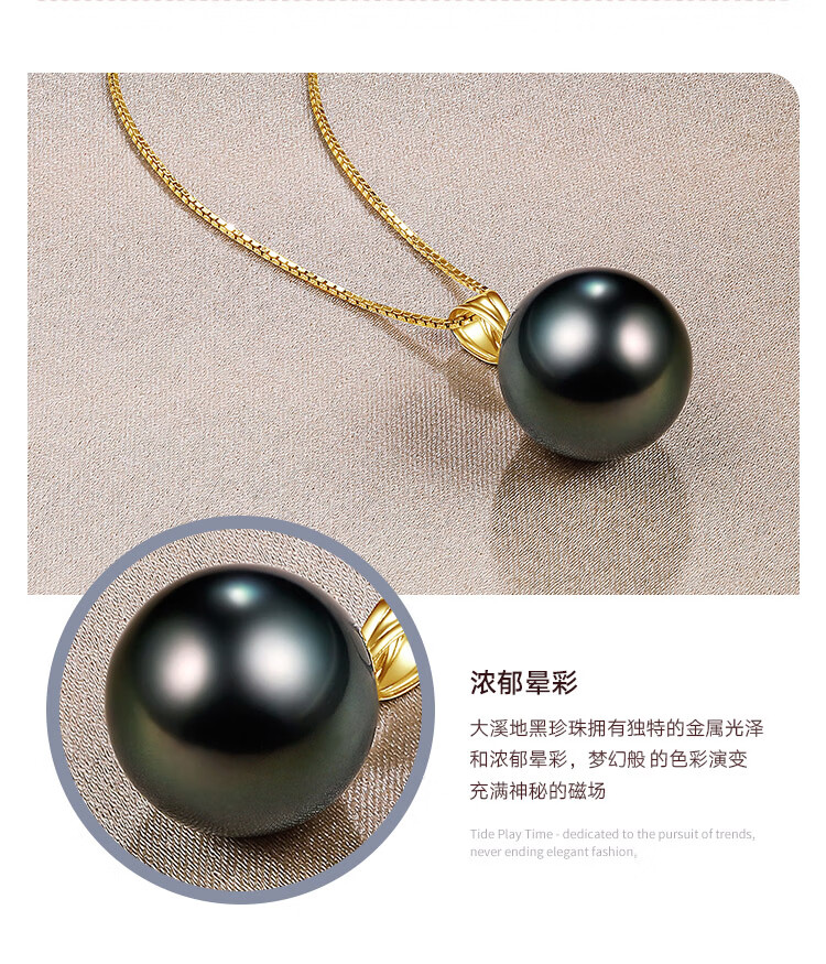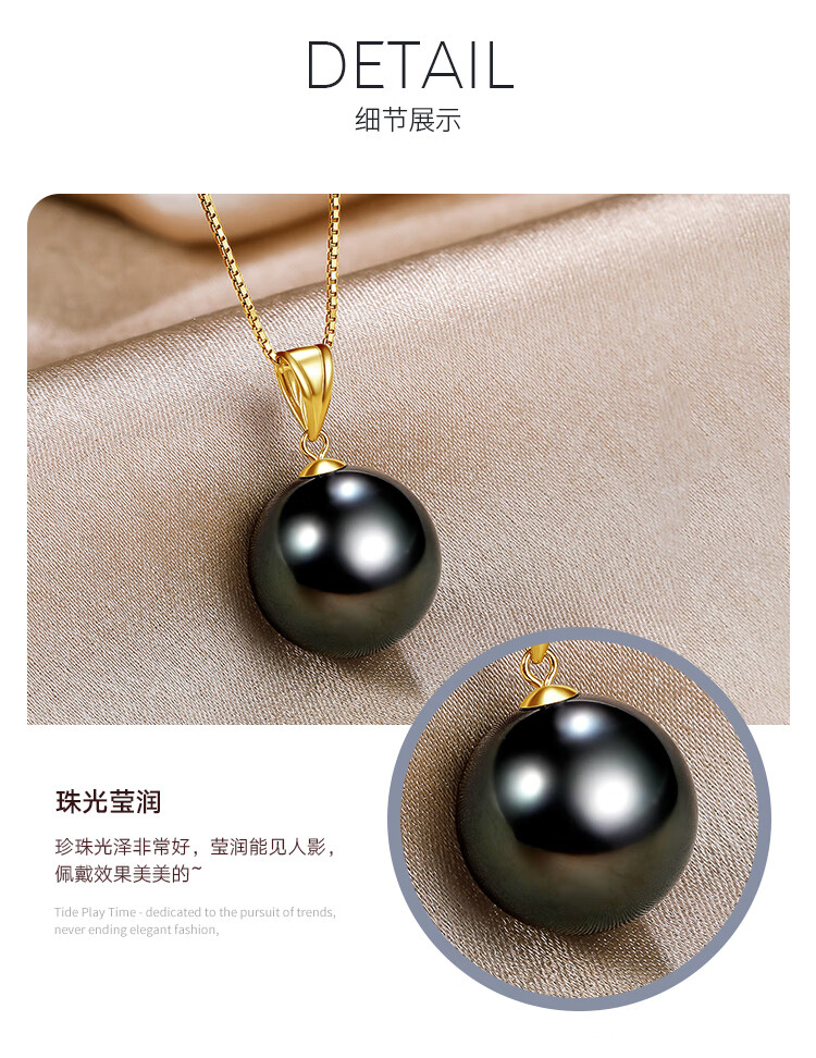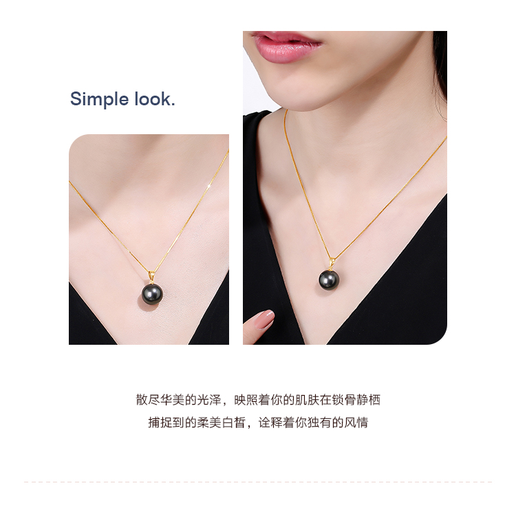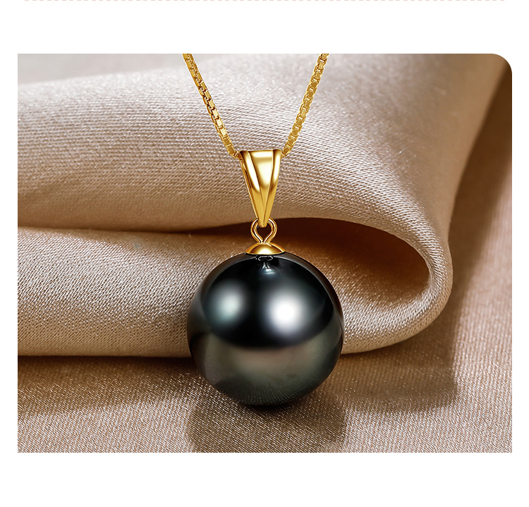 Queen of Pearls 18K Gold Tahitian Black Pearl Pendant Round Seawater Pearl Necklace Elegant Birthday Gift for Women
