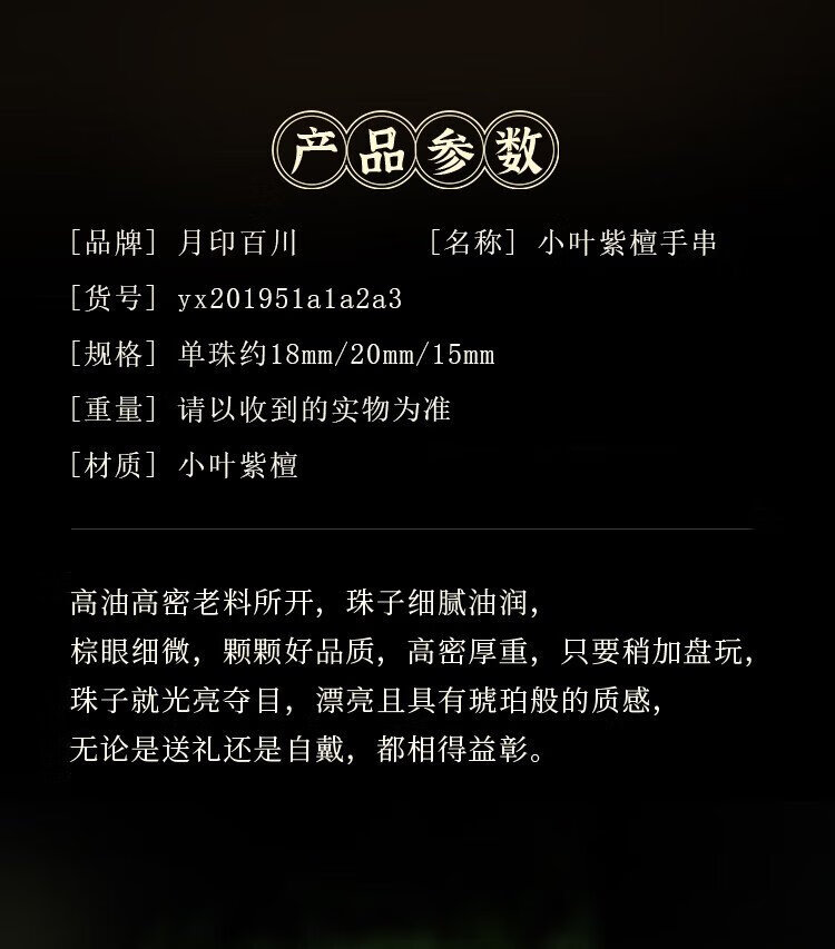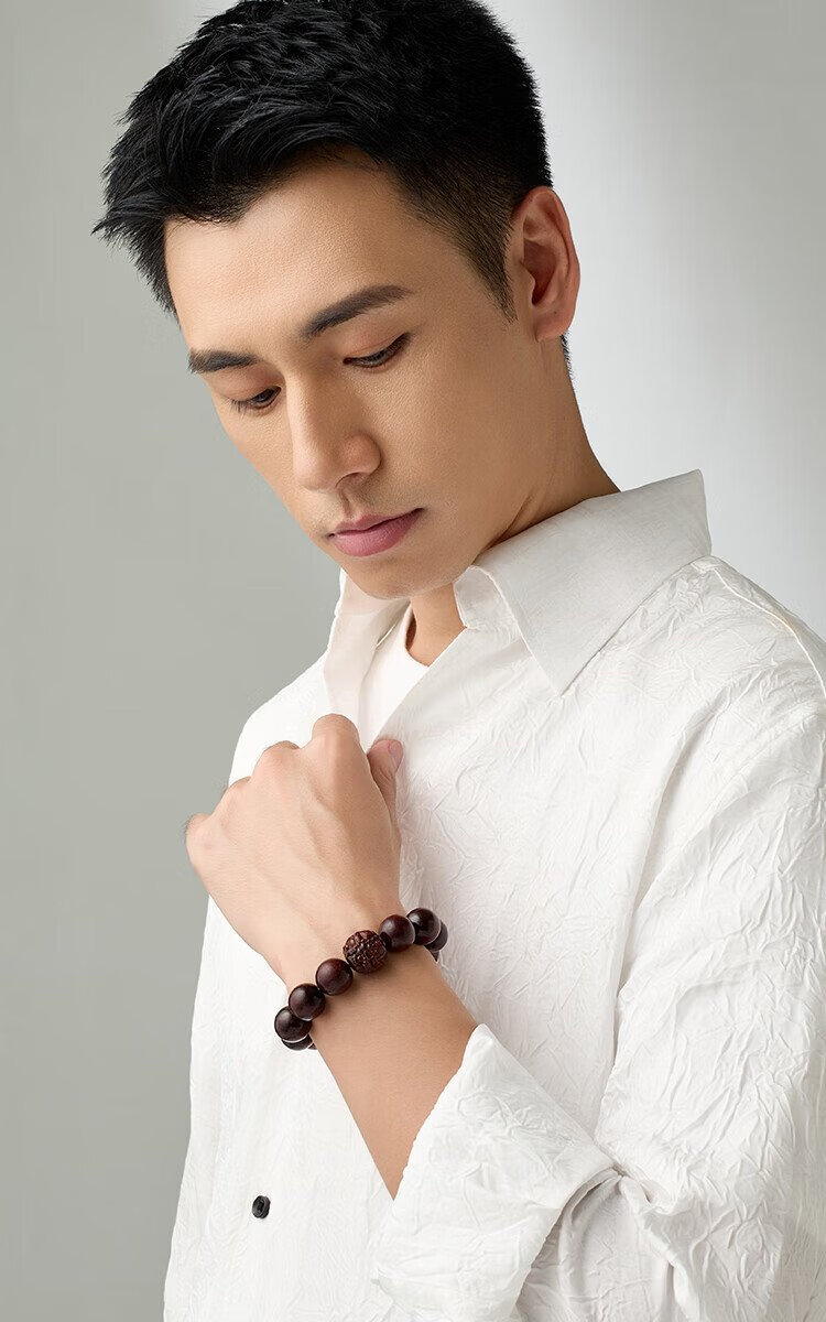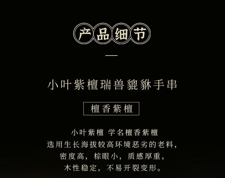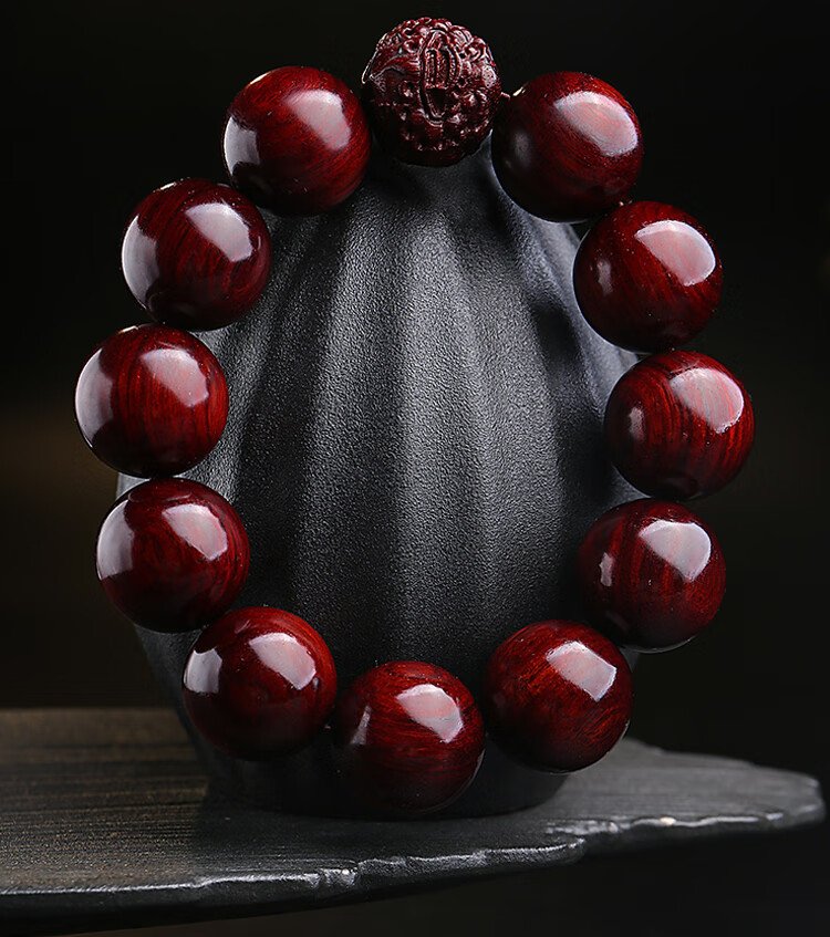 Yueyin Baichuan High Density Small Leaf Rosewood Pixiu Bracelet Men's and Women's Wood Decorated Buddha Bead Bracelet About 15mm