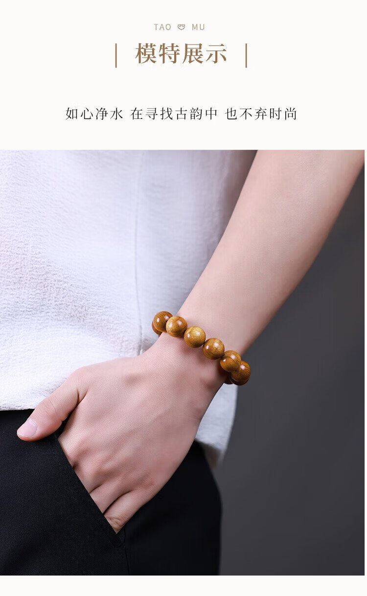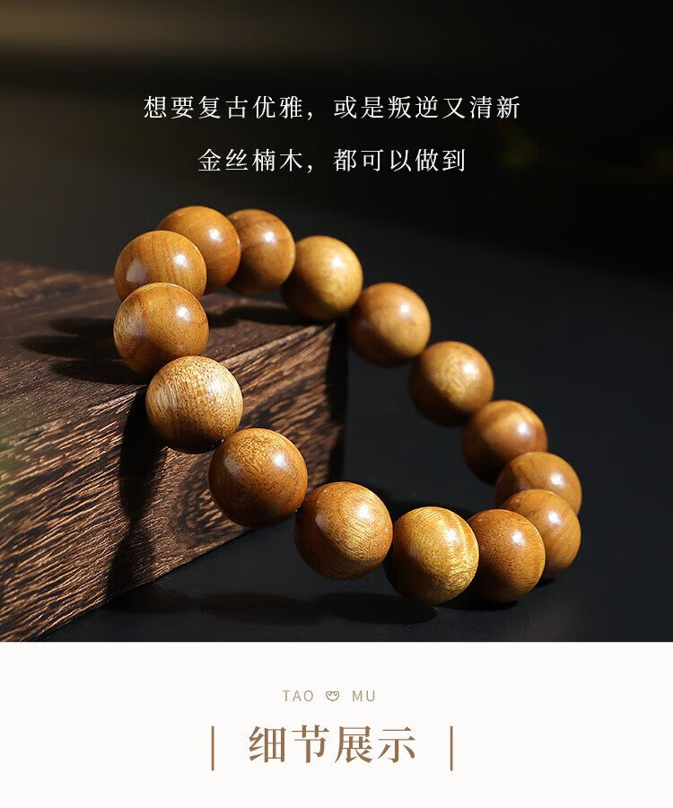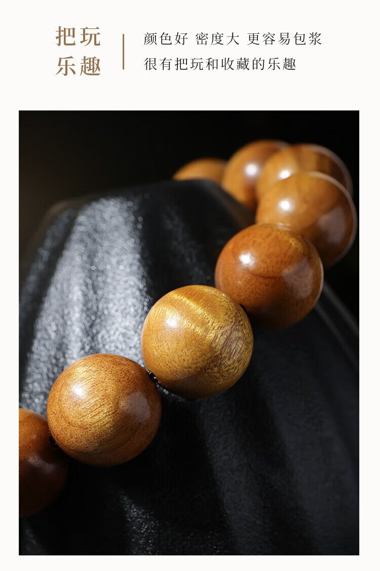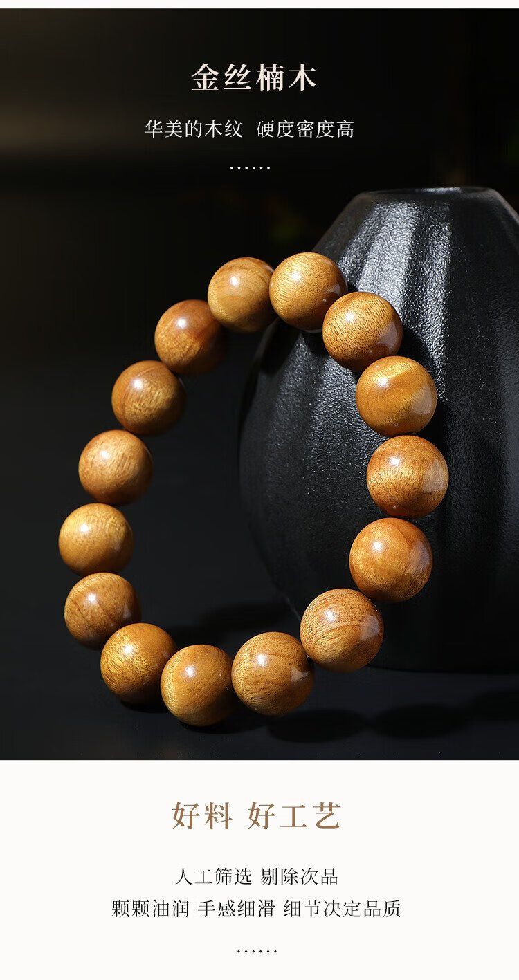 Yueyin Baichuan Golden Phoebe Bracelet for Men and Women High Density Buddha Beads Rosary Beads and Play Bracelet About 15mm