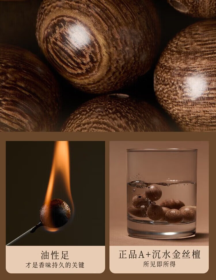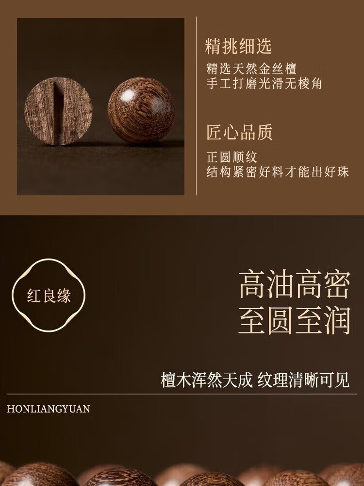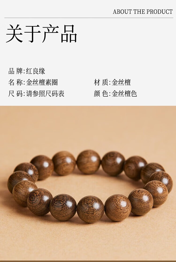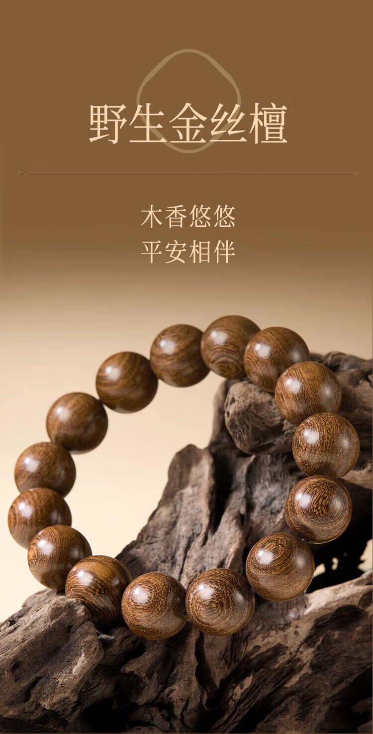 Hongliangyuan Golden Silk Sandalwood Bracelet Wenwan Sandalwood High Density Collection Grade Buddha Bead Bracelet Submersible Grade Plate Play for Men and Women 15mm