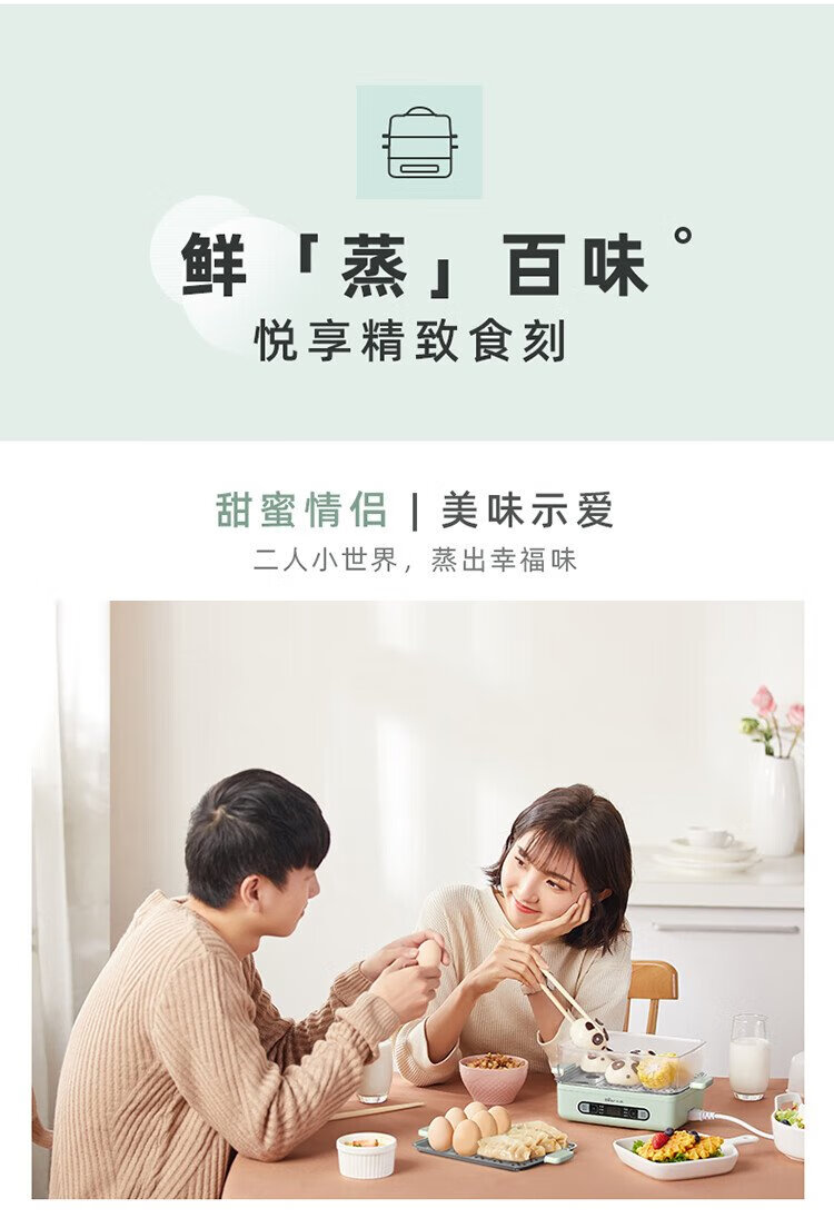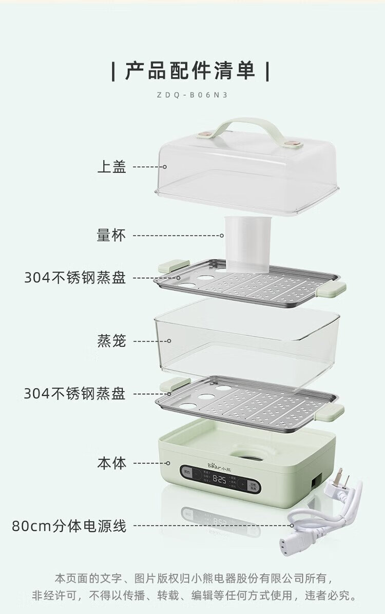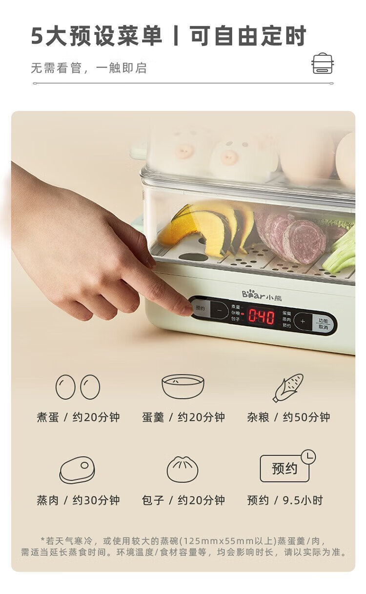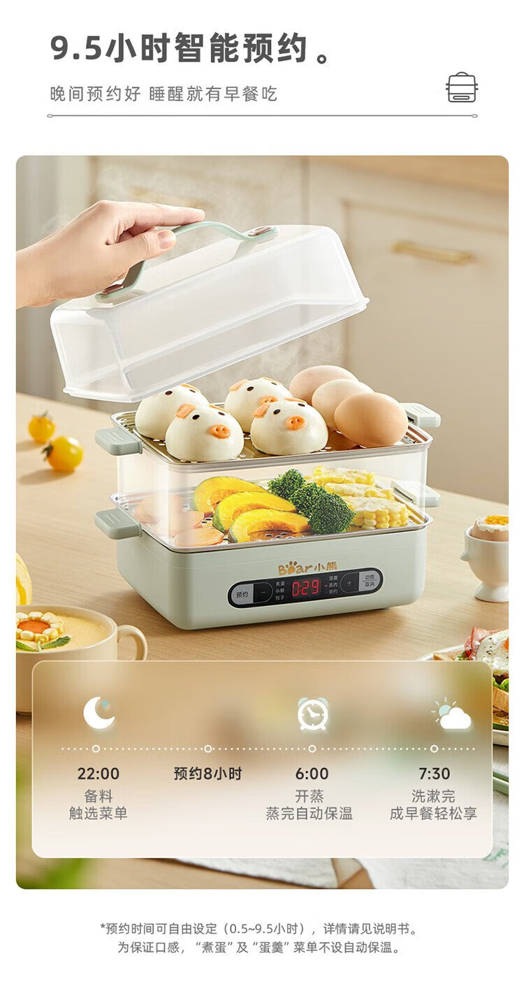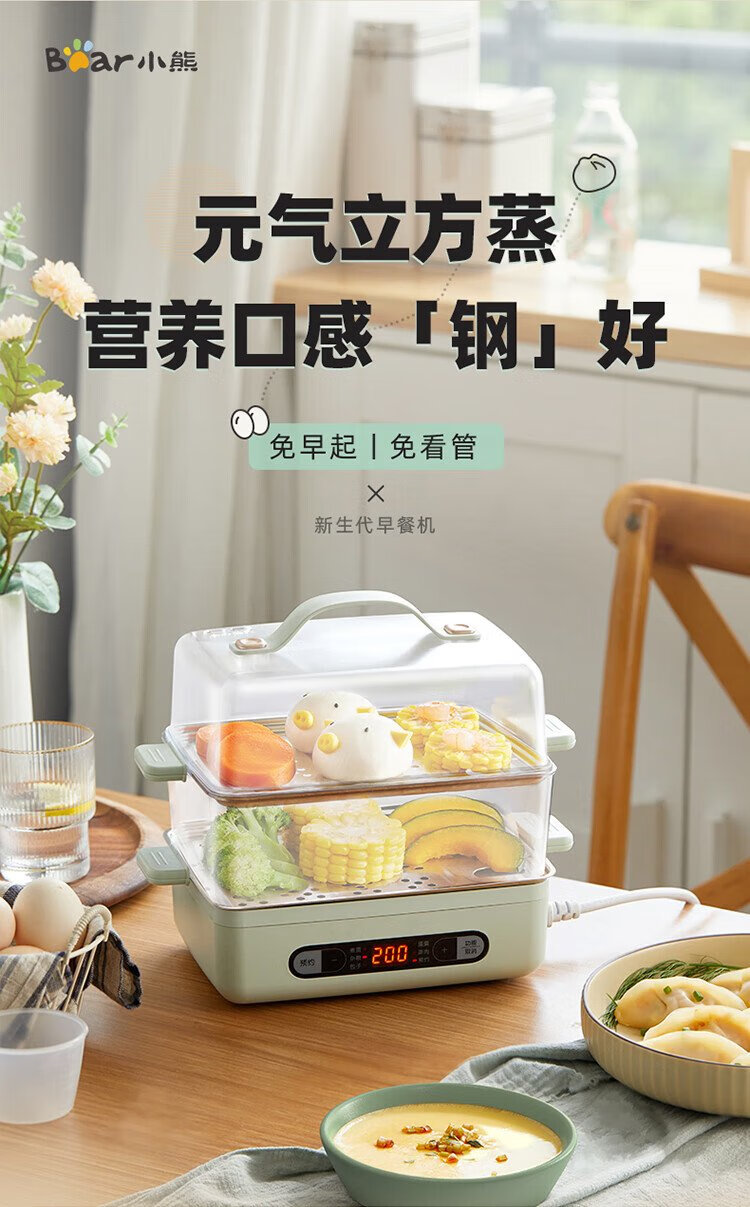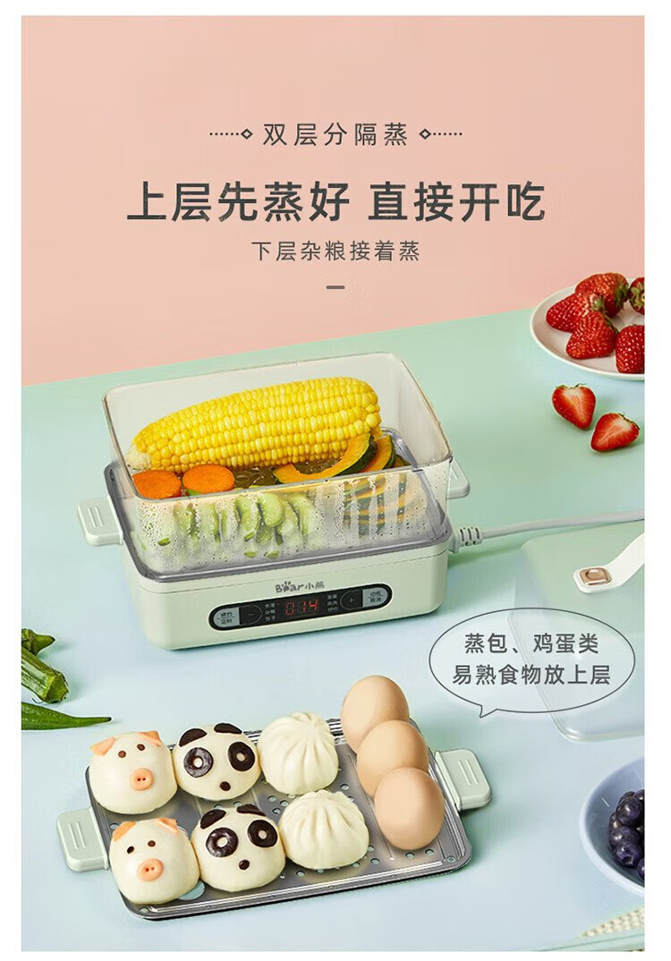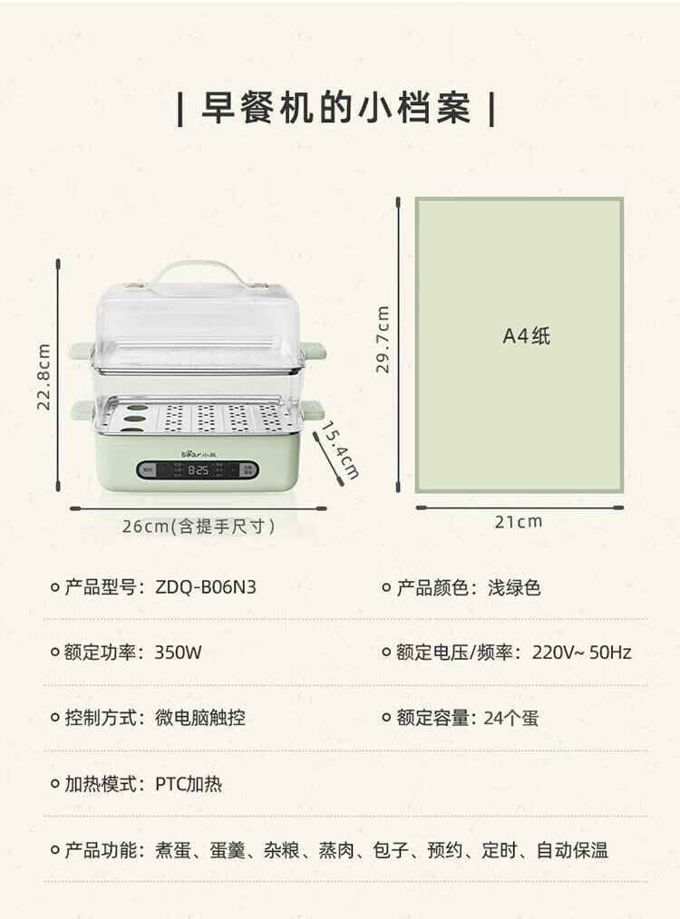 小熊(Bear)煮蛋器 蒸蛋器 智能电蒸锅小型2-3人用自动断电 家用多功能早餐机煮鸡蛋神器ZDQ-B06N3