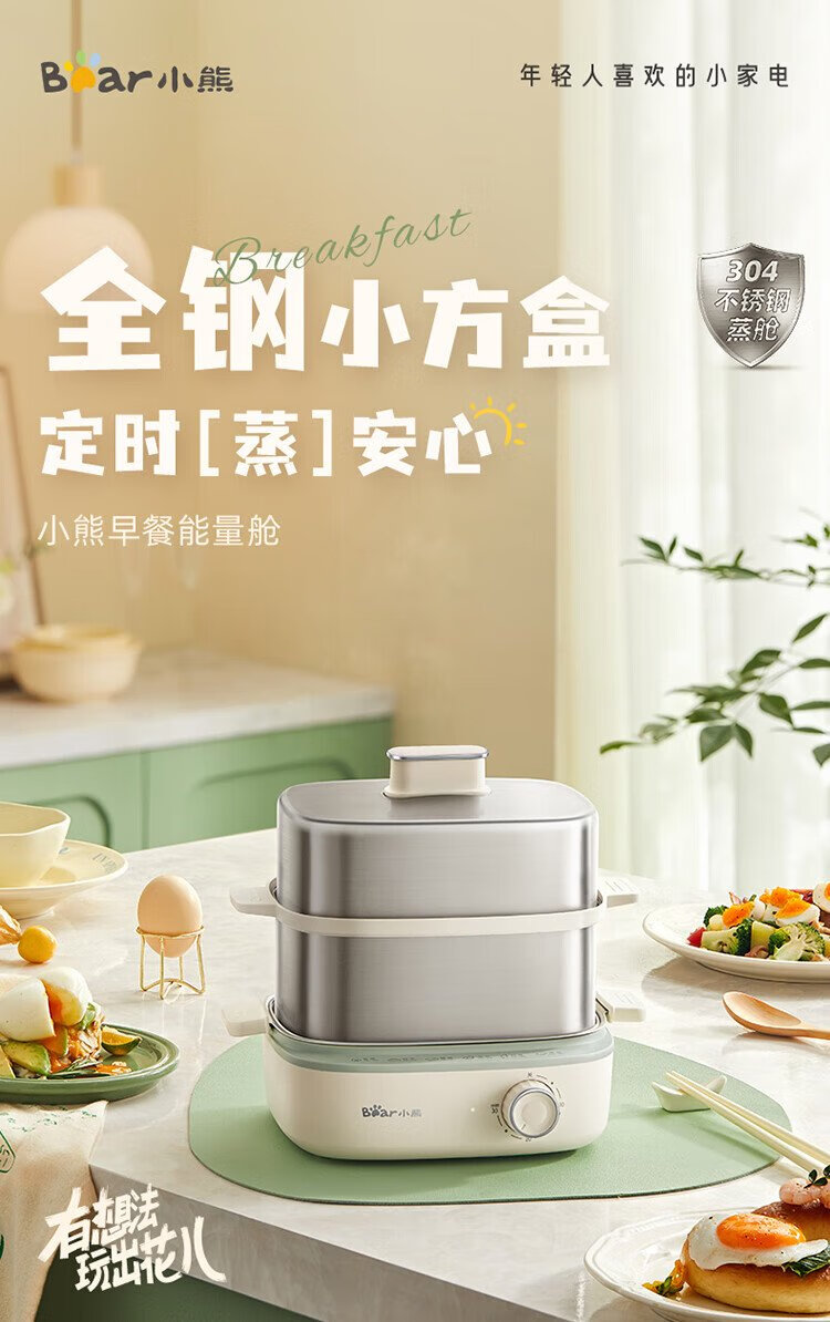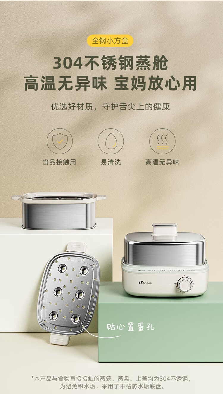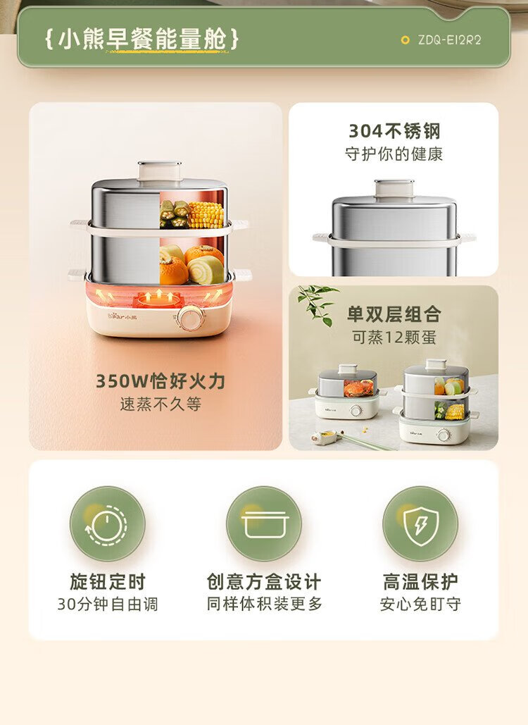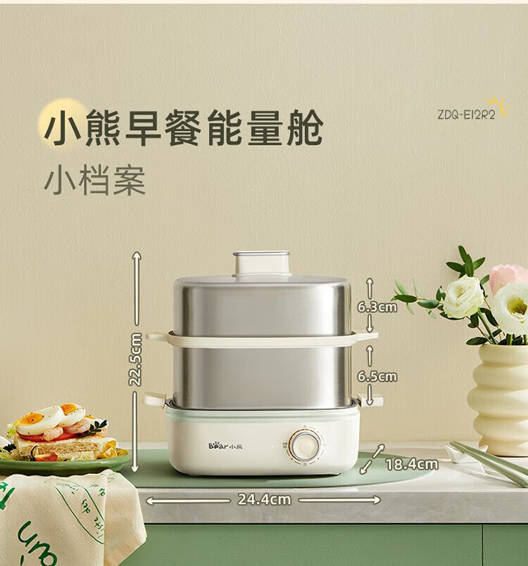 Bear egg cooker, egg steamer, automatic power-off multi-function all-in-one breakfast machine, stainless steel boiled egg and steamed egg artifact ZDQ-E12R2