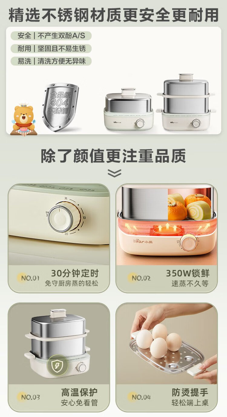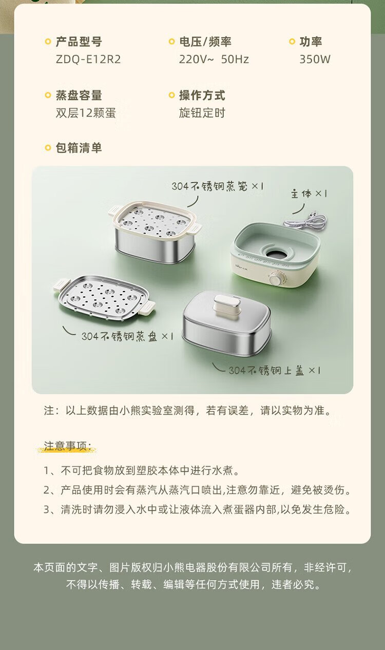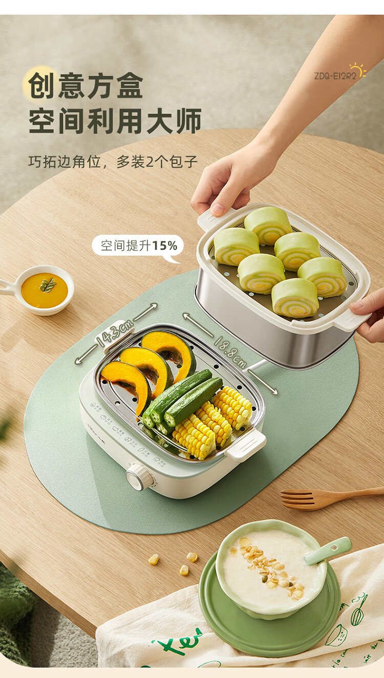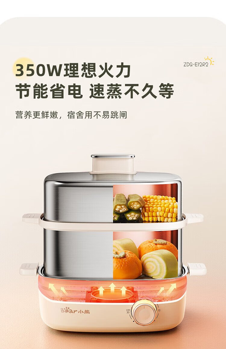 Bear egg cooker, egg steamer, automatic power-off multi-function all-in-one breakfast machine, stainless steel boiled egg and steamed egg artifact ZDQ-E12R2