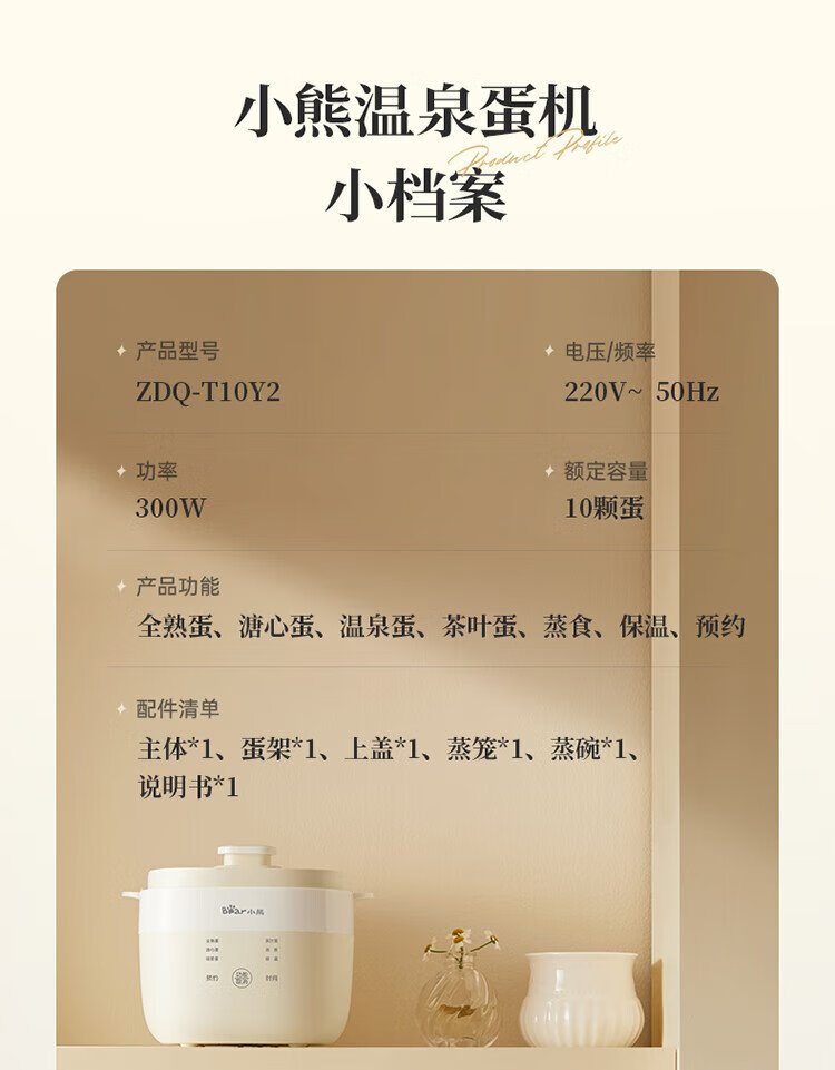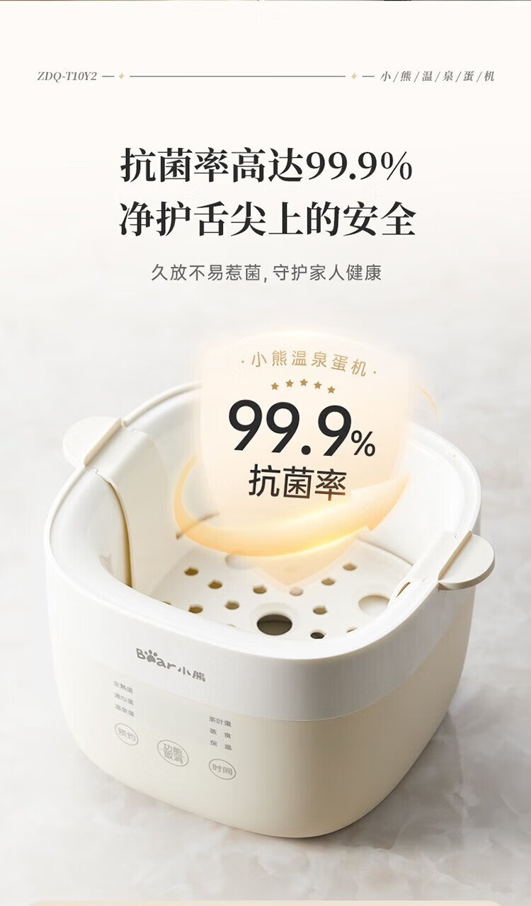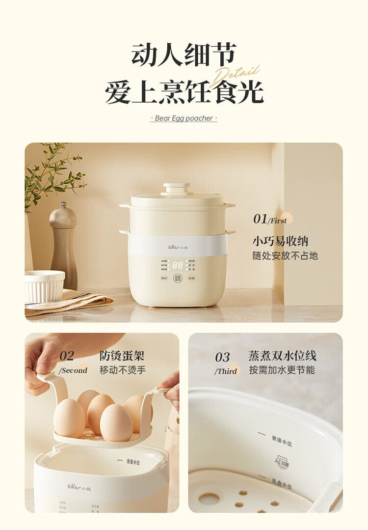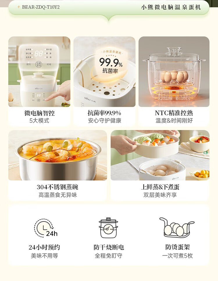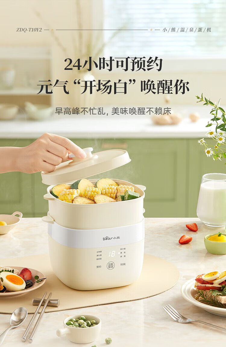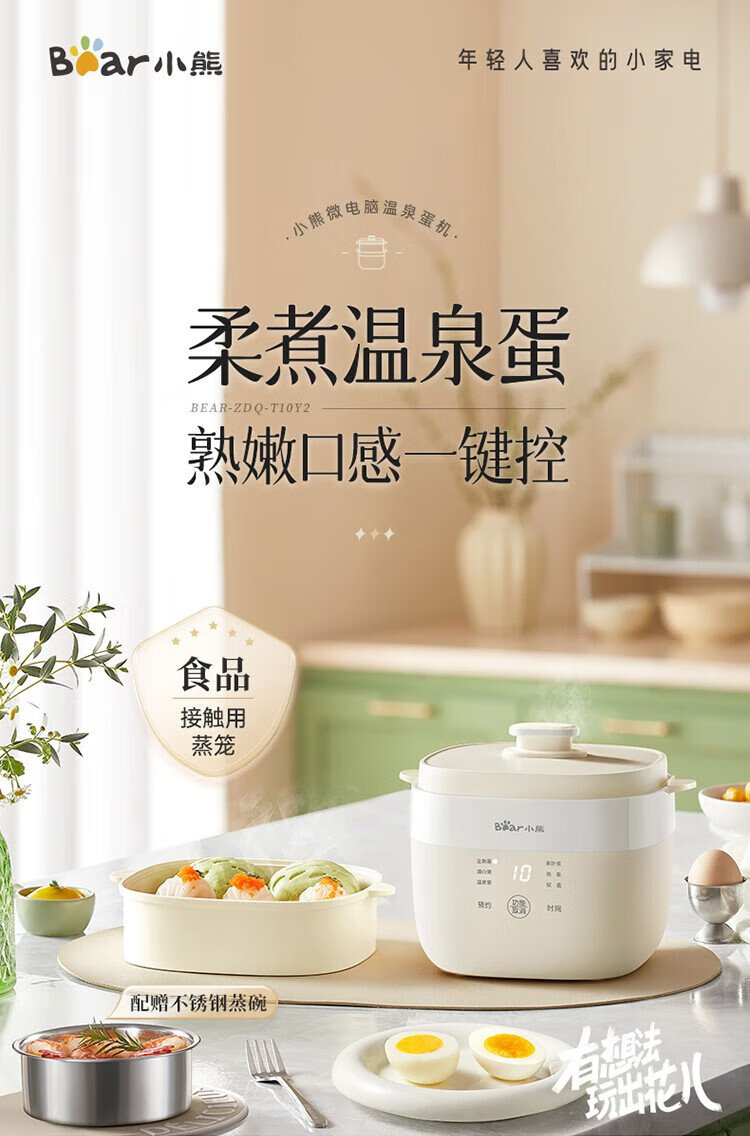小熊(Bear)煮蛋器 蒸蛋器 温泉蛋机 智能定时自动断电 煮鸡蛋神器溏心蛋茶叶蛋 小型蒸锅早餐一体机ZDQ-T10Y2