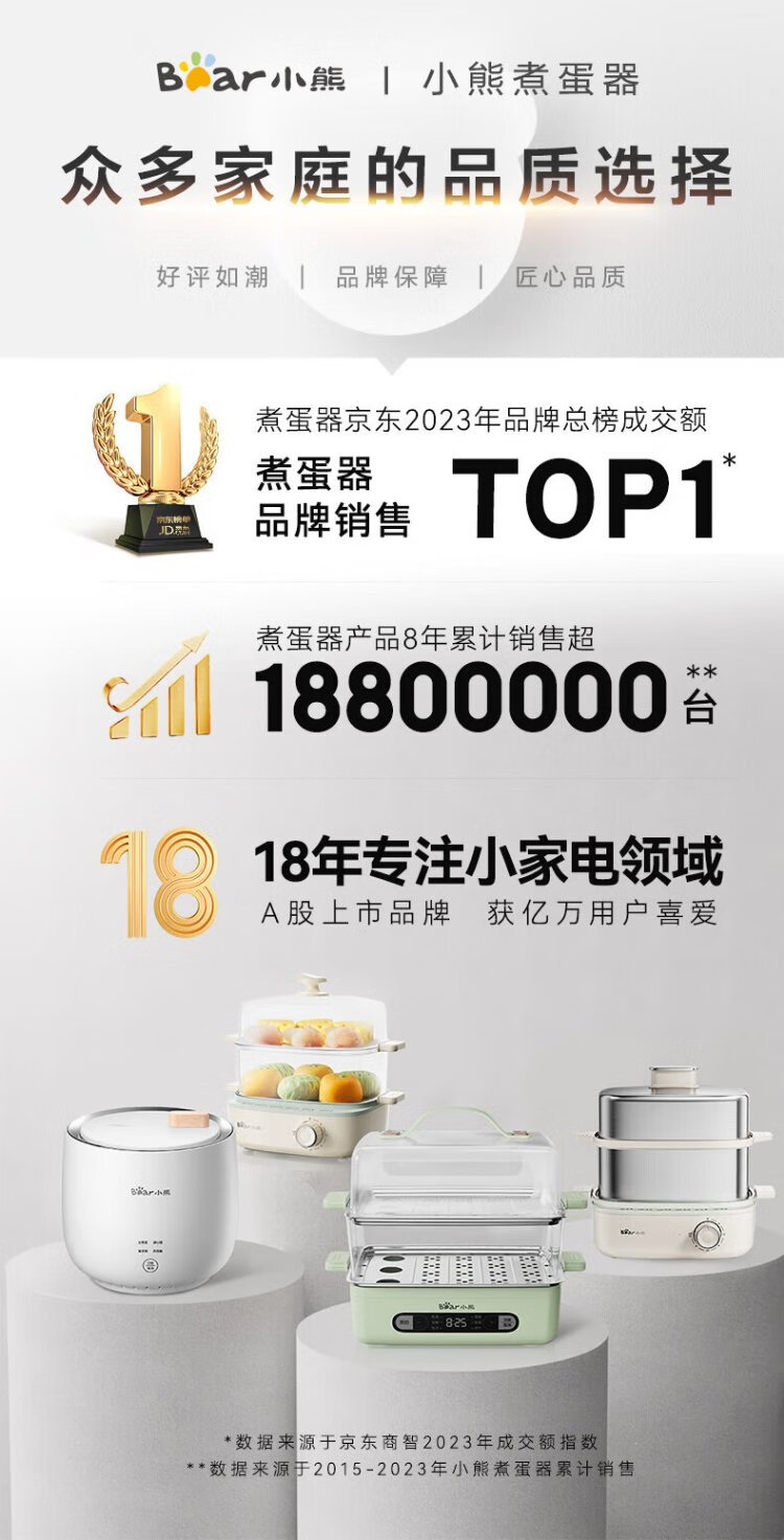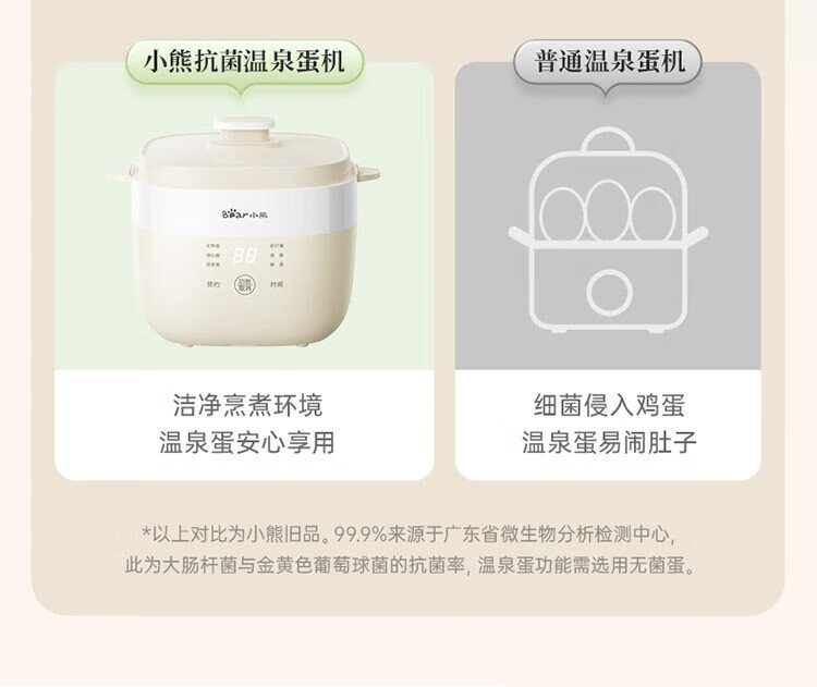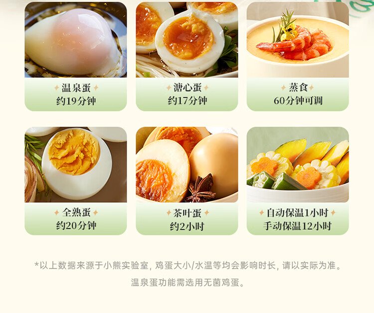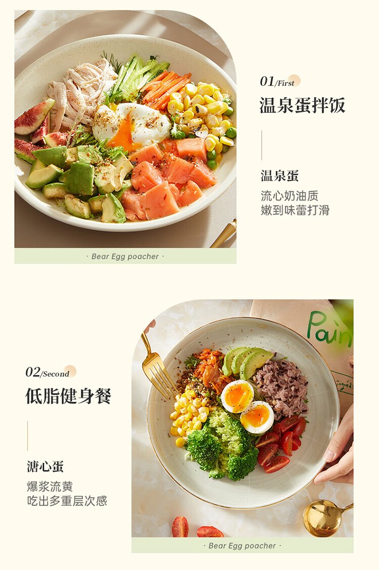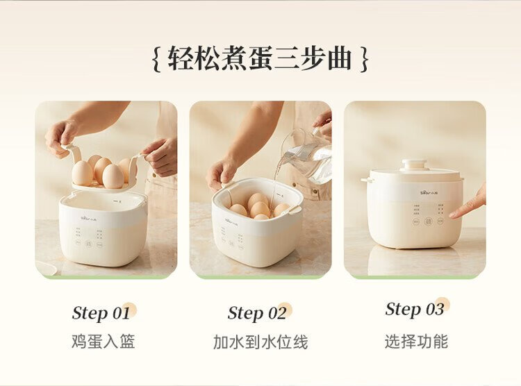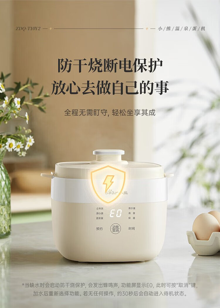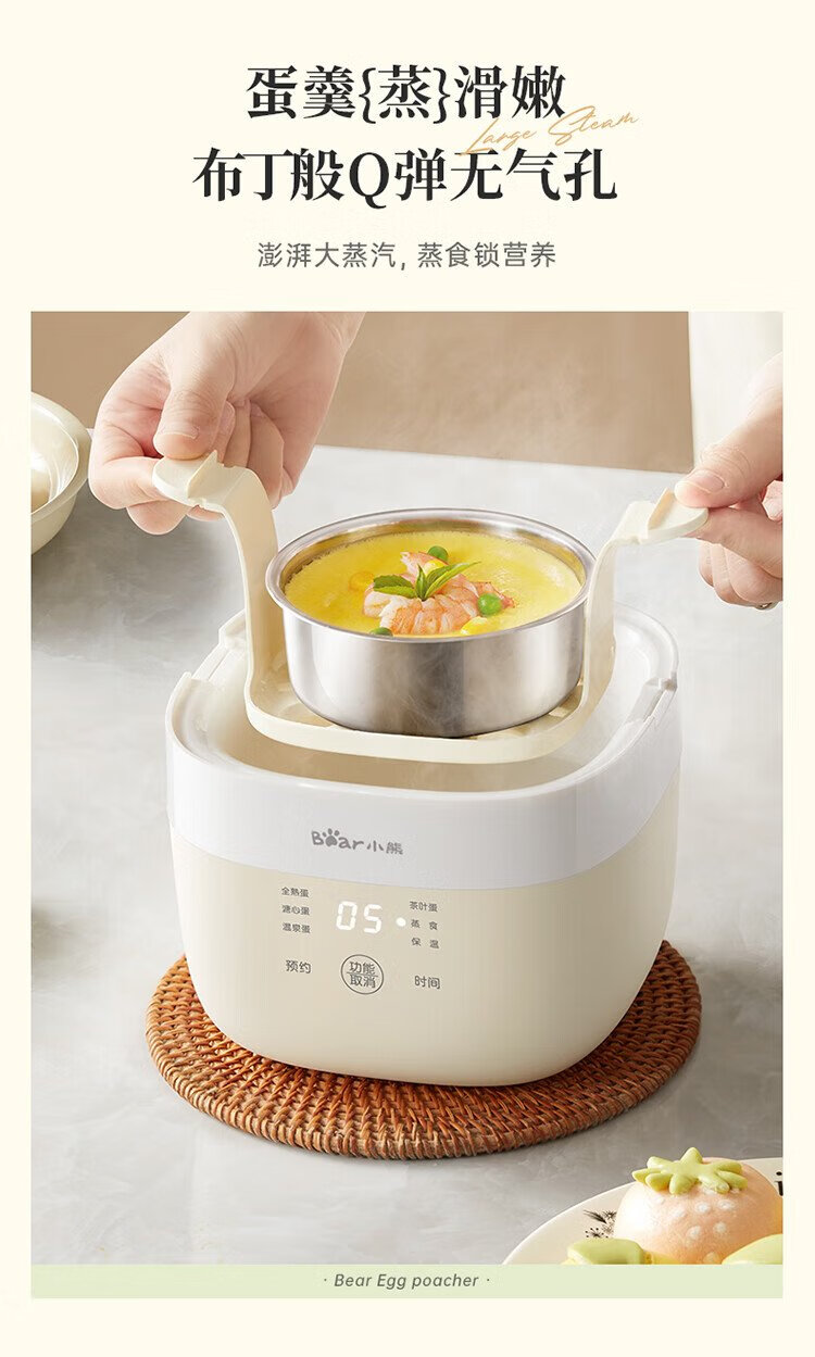 小熊(Bear)煮蛋器 蒸蛋器 温泉蛋机 智能定时自动断电 煮鸡蛋神器溏心蛋茶叶蛋 小型蒸锅早餐一体机ZDQ-T10Y2